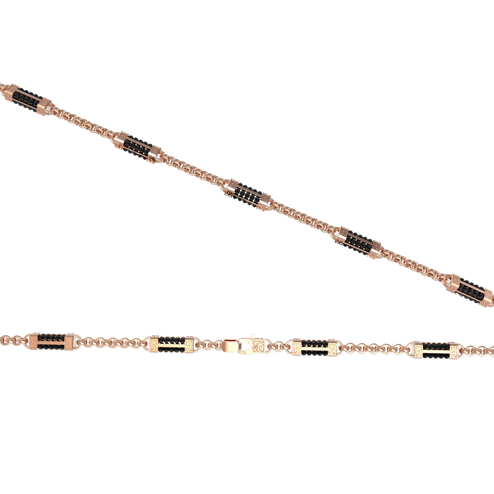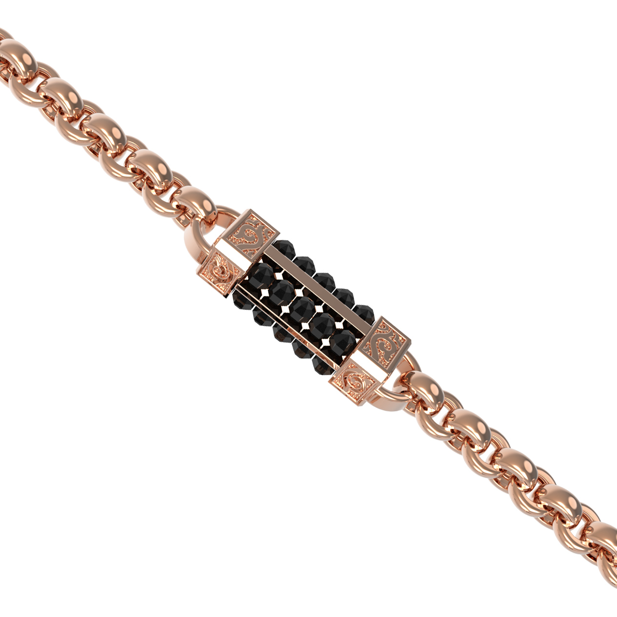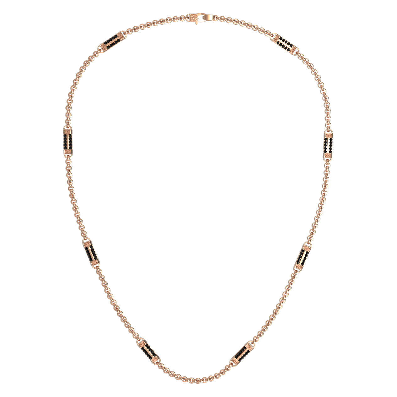 Всего в цепи использовано 720 вставок, которые создают глубокий и насыщенный темный оттенок на фоне теплого сияния красного золота. Такое сочетание материалов выглядит сдержанно, дорого и уверенно. Цепь идеально дополнит повседневный гардероб или подчеркнет торжественность делового костюма, акцентируя внимание на индивидуальности владельца. Изделие прекрасно сочетается с другими украшениями, позволяя создавать полноценные комплекты.