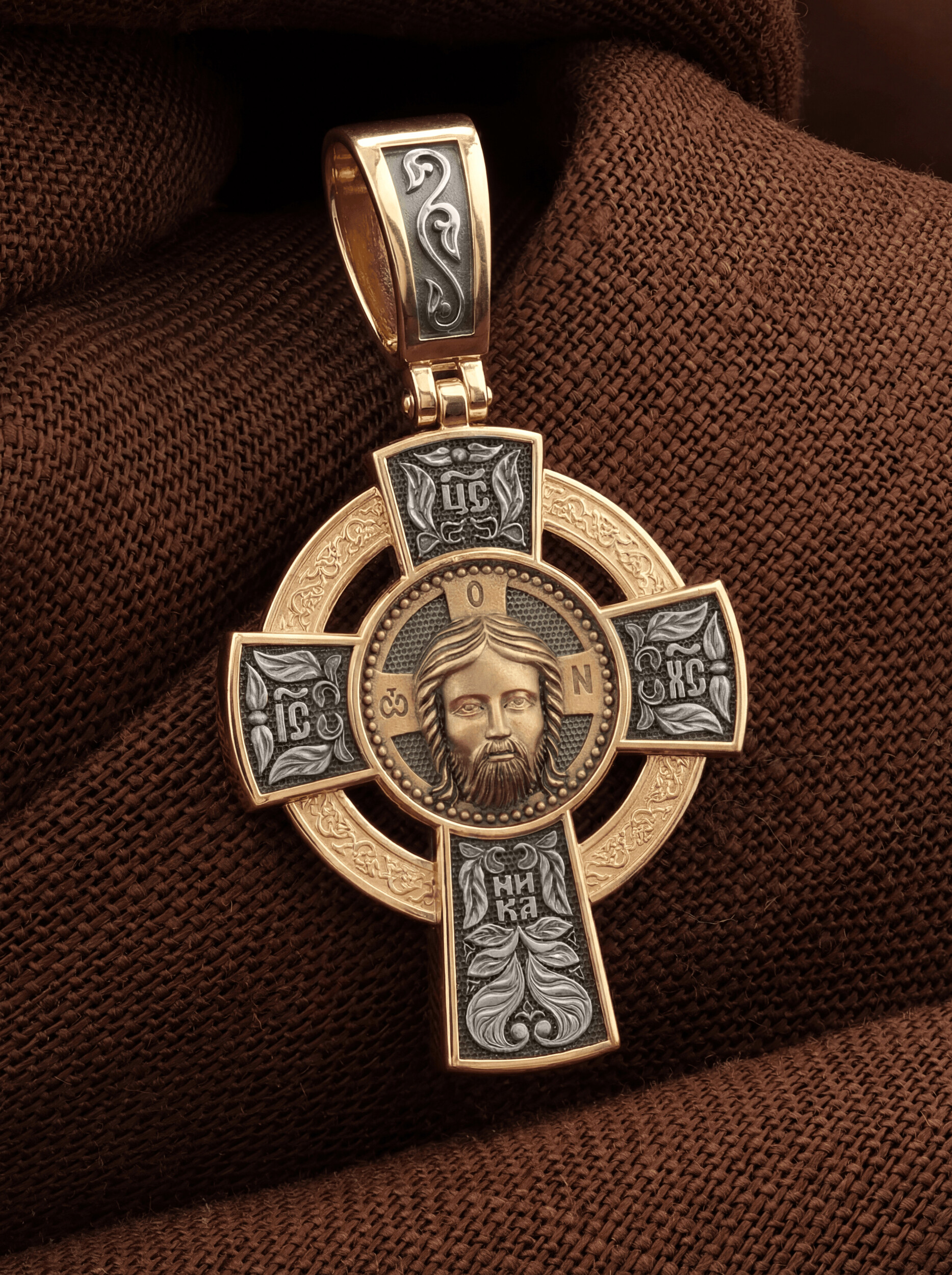 Нательный крест с кругом повторяет форму древних крестов, распространенных в России с конца XIII века. Простая лаконичная форма соединяет в себе два символа Бога: крест и круг. Крест знаменует Иисуса Христа, Бога, воплотившегося и распятого за грехи людей, круг — Бога сущего на Небесах, безначального и бесконечного. Часто такие кресты называют «кельтскими» или «новгородскими», так как кресты подобной формы были принесены на Русь кельтами, задолго до русских принявших христианство. Древнейший русский крест такой формы был найден в новгородской земле, в селе Боровичи.
