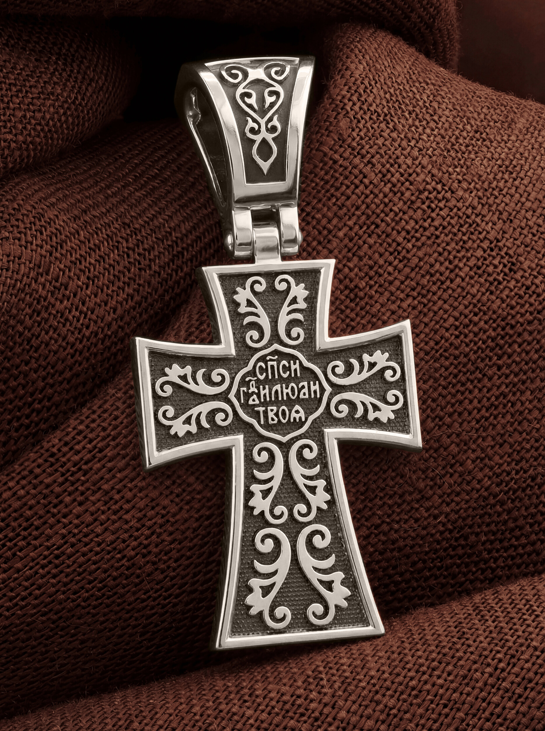 На оборотной стороне в цветочном орнаменте написана молитва Животворящему Кресту: «Спаси, Господи, люди Твоя».