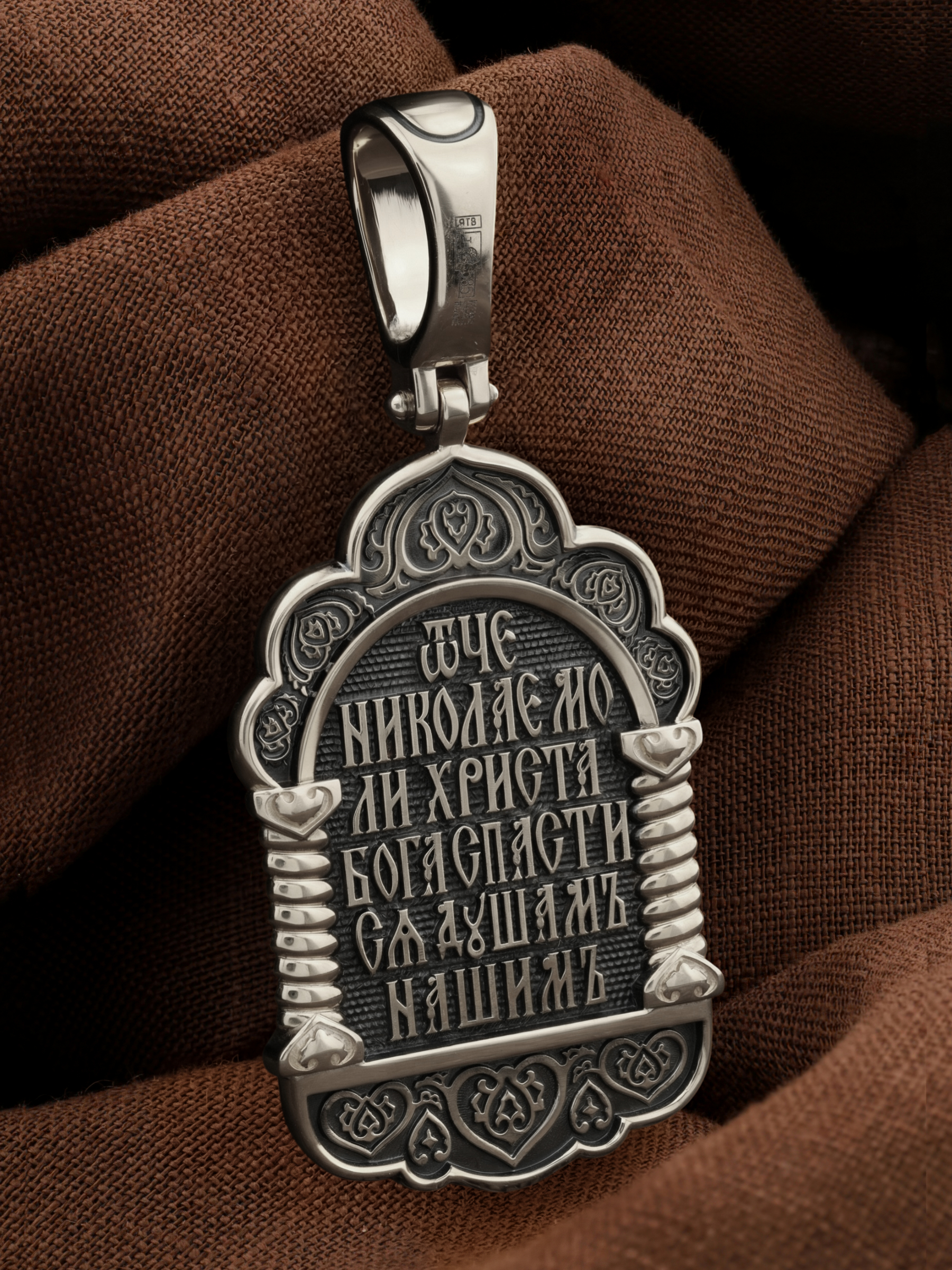 На оборотной стороне образка написаны слова молитвы: «Отче Николае, моли Христа Бога спастися душам нашим».
