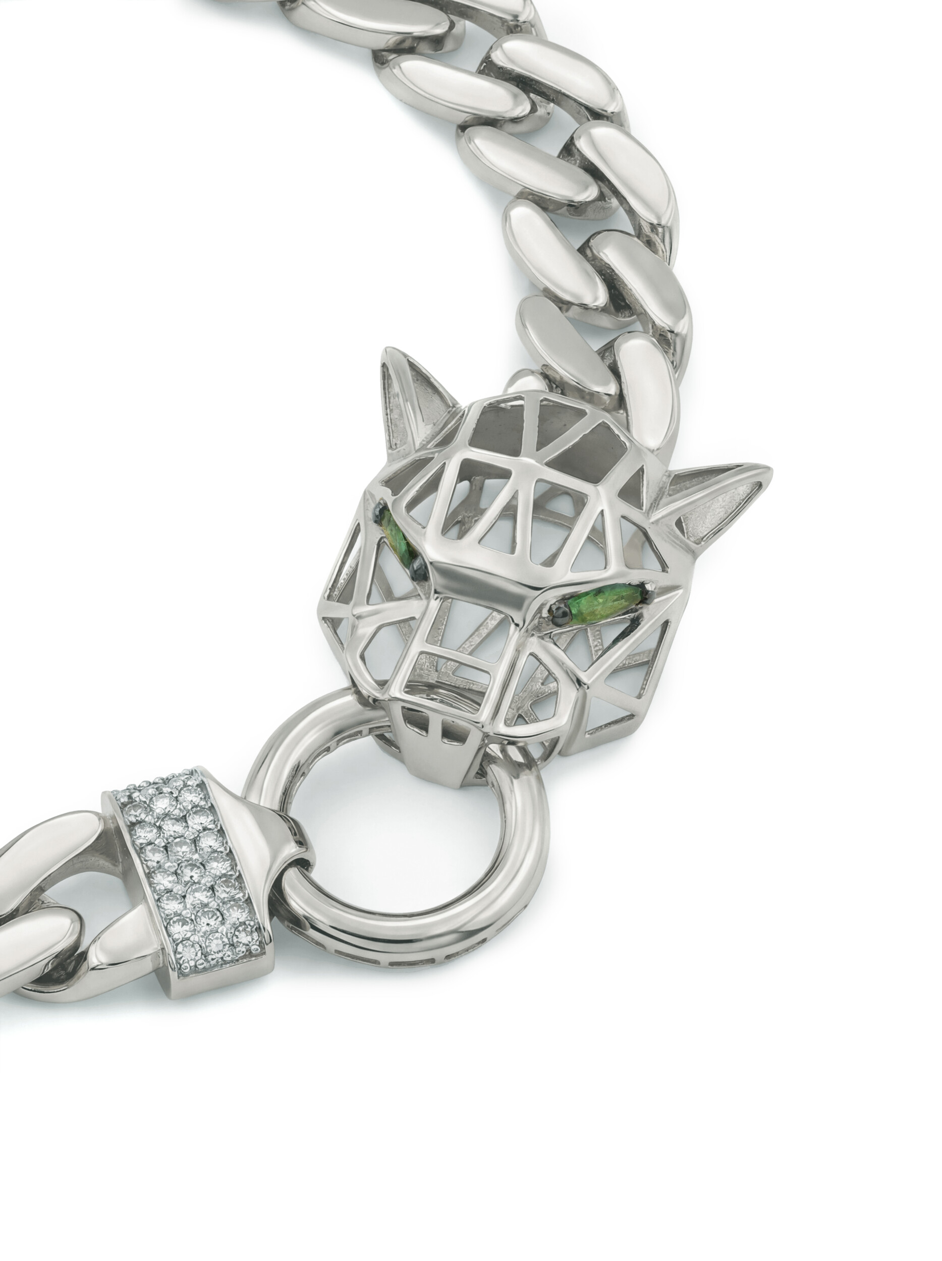Роскошный браслет из белого золота 585 пробы из коллекции Vioretty — Puma transforme станет выразительным акцентом вашего образа. Дизайн украшения, вдохновленный грацией пантеры, притягивает взгляды и подчеркивает статус обладателя. Массивное плетение и необычная центральная часть в виде стилизованной головы хищника гармонично сочетаются в одном изделии.