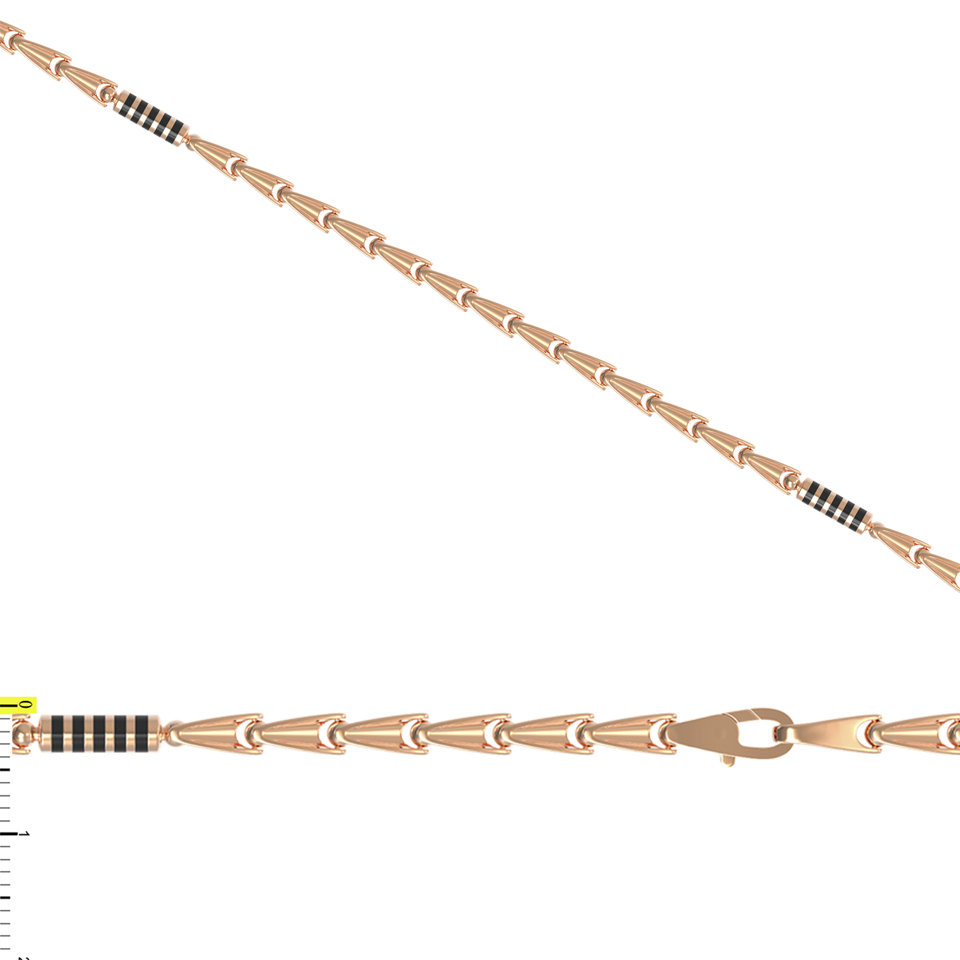 Такая цепь идеально дополнит повседневный гардероб или станет завершающим штрихом делового образа. Лаконичное сочетание красного золота и черной эмали делает украшение универсальным аксессуаром для мужчин, предпочитающих подчеркнуть свою индивидуальность без лишнего декора. Ювелирное изделие надежно фиксируется на шее благодаря прочному и удобному замку, обеспечивающему комфорт при ежедневной носке.