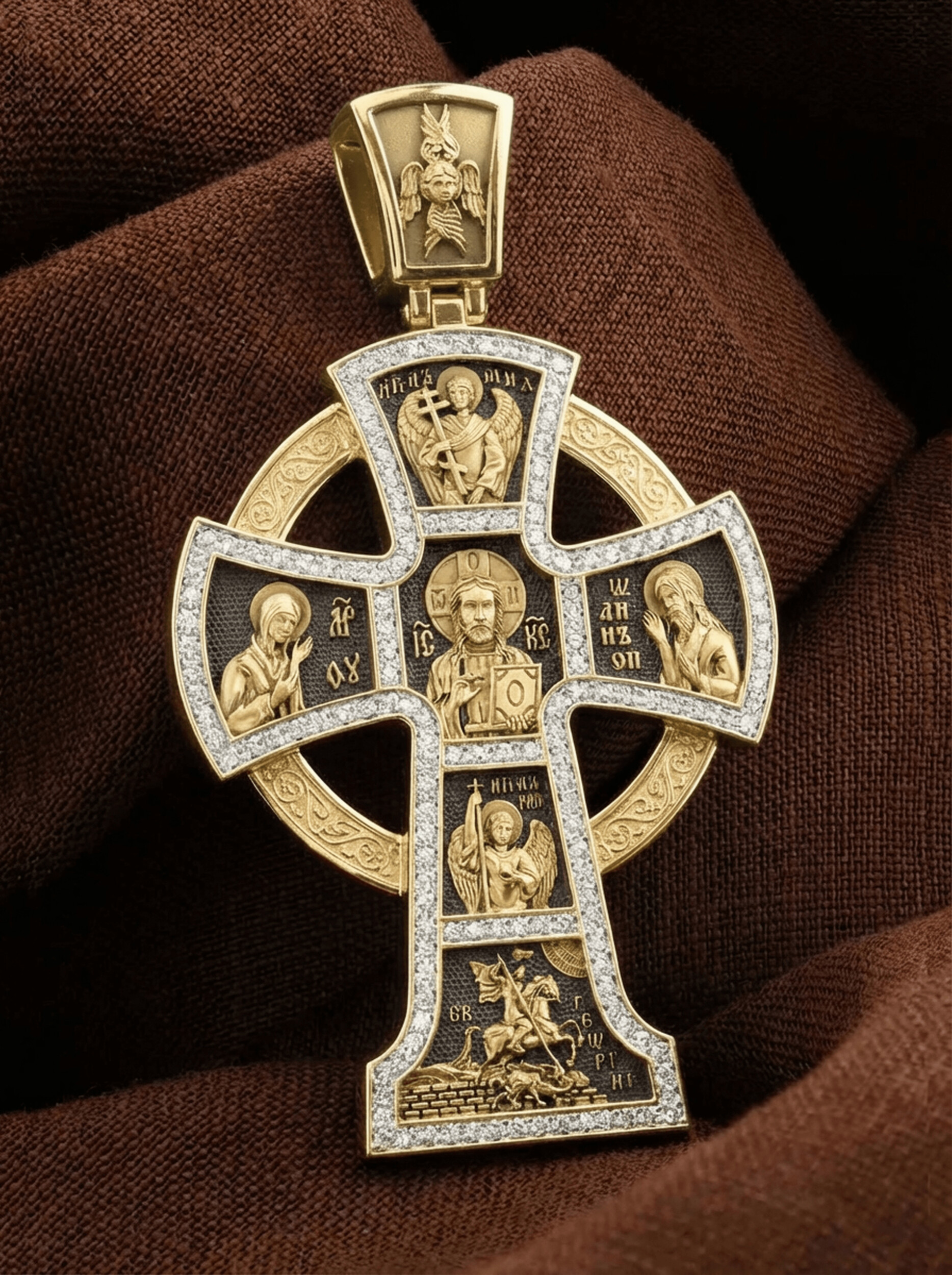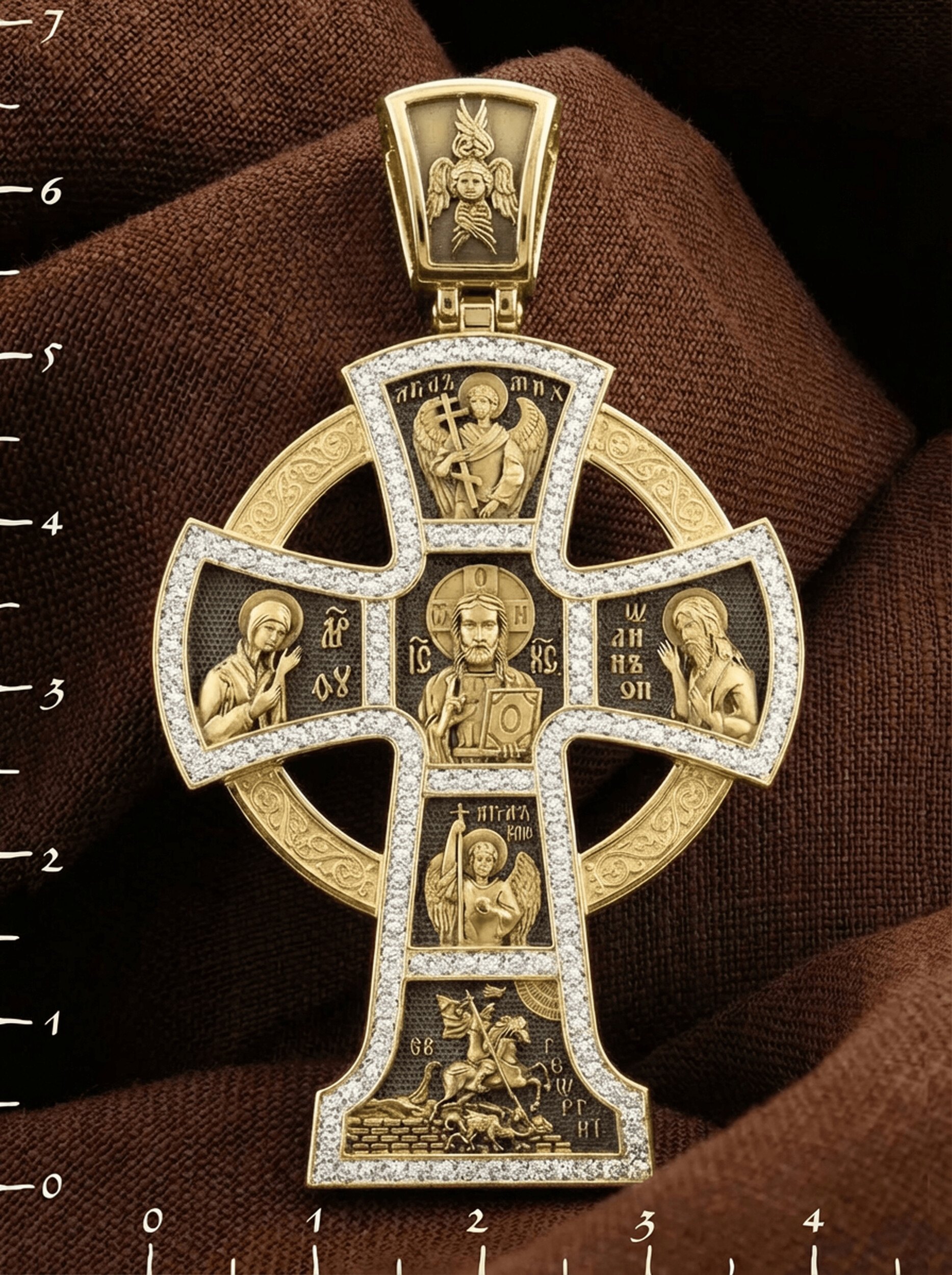 Крест из лимонного золота c эмалью и бриллиантами