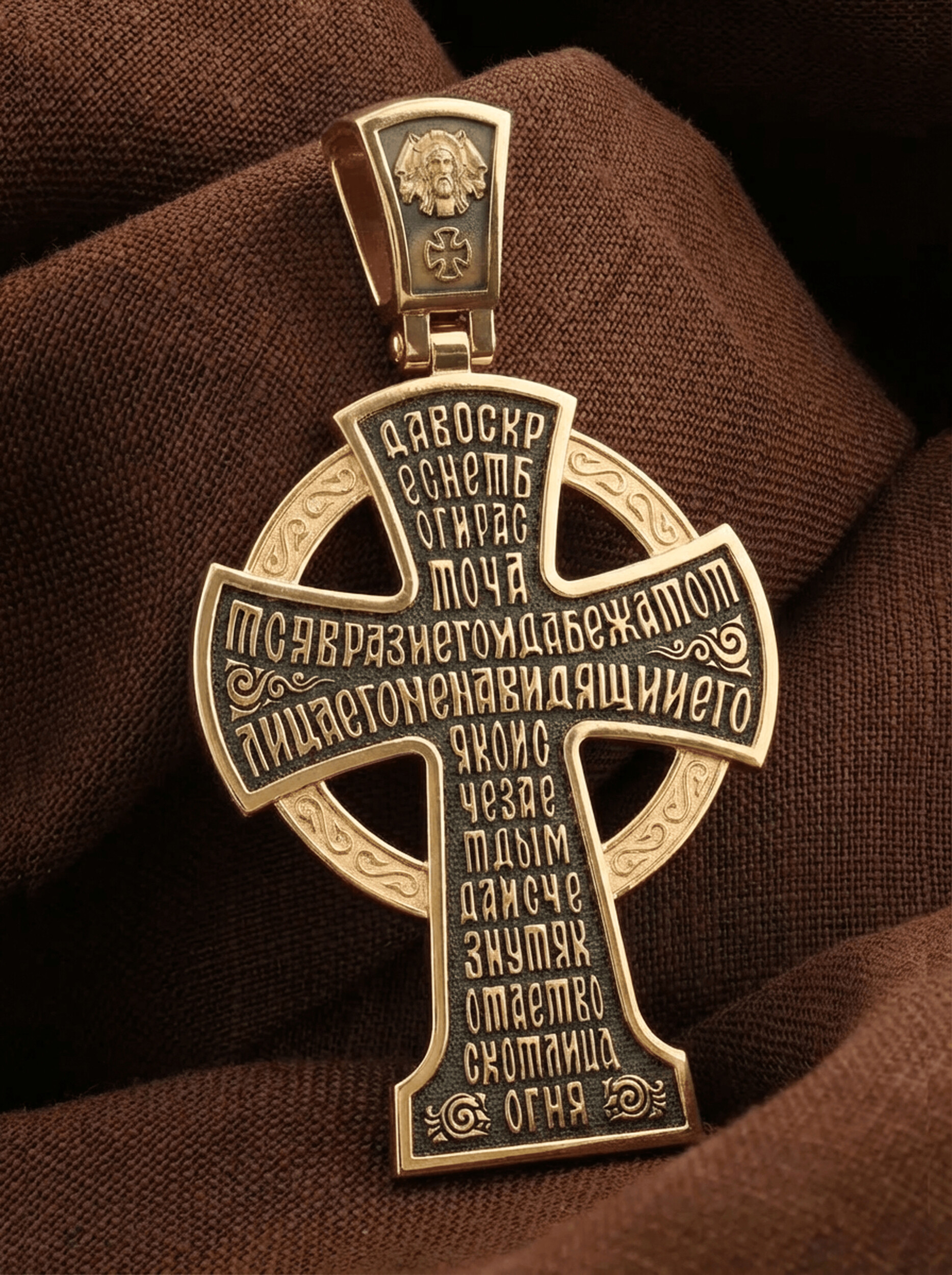 На обороте написан начальный стих оградительной молитвы Честному Кресту Господню: «Да воскреснет Бог, и расточатся врази Его, и да бежат от лица Его ненавидящии Его. Яко исчезает дым, да исчезнут; яко тает воск от лица огня, тако да погибнут беси от лица любящих Бога и знаменующихся крестным знамением, и в веселии глаголющих: радуйся, Пречестный и Животворящий Кресте Господень, прогоняй бесы силою на тебе пропятаго Господа нашего Иисуса Христа, во ад сшедшаго и поправшаго силу диаволю, и даровавшаго нам тебе Крест Свой Честный на прогнание всякаго супостата. О, Пречестный и Животворящий Кресте Господень! Помогай ми со Святою Госпожею Девою Богородицею и со всеми святыми во веки. Аминь».