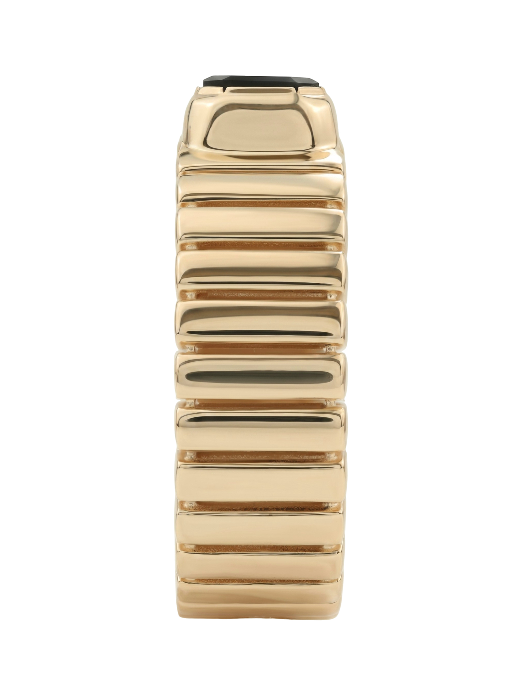 Центральным элементом композиции является одна вставка из натурального оникса глубокого черного цвета. Форма вставки — октагон — выбрана не случайно: ее сдержанная геометрия подчеркивает благородный блеск красного золота и придает кольцу особый шарм. Лаконичность линий делает это украшение универсальным аксессуаром, который легко вписывается как в деловой дресс-код, так и в вечерний стиль.