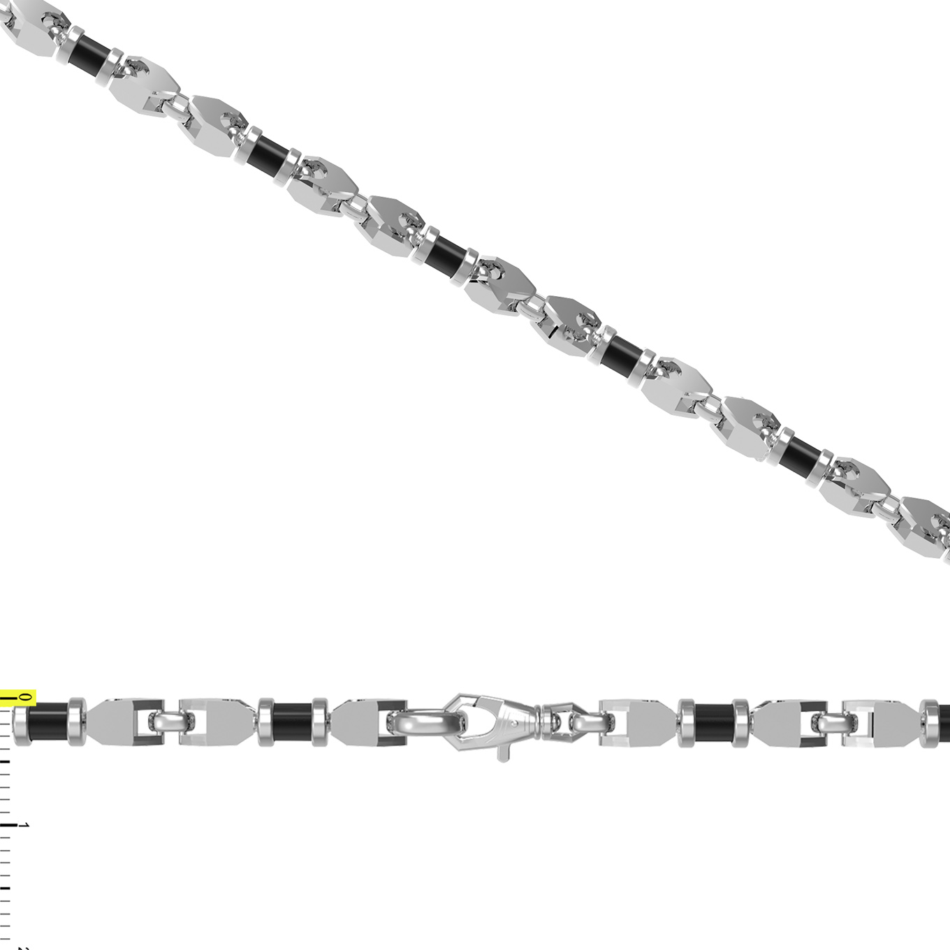 Мужская цепь из белого золота 585 пробы из коллекции De Luxe — Цепи De Luxe — это воплощение сдержанного стиля и высокого ювелирного искусства. Изделие, выполненное в благородном белом цвете, подчеркивает статус своего владельца и идеально подходит для создания солидного образа. Глубокий черный цвет вставок оникса создает изысканный контраст с холодным блеском драгоценного металла, придавая украшению особую выразительность и строгость.