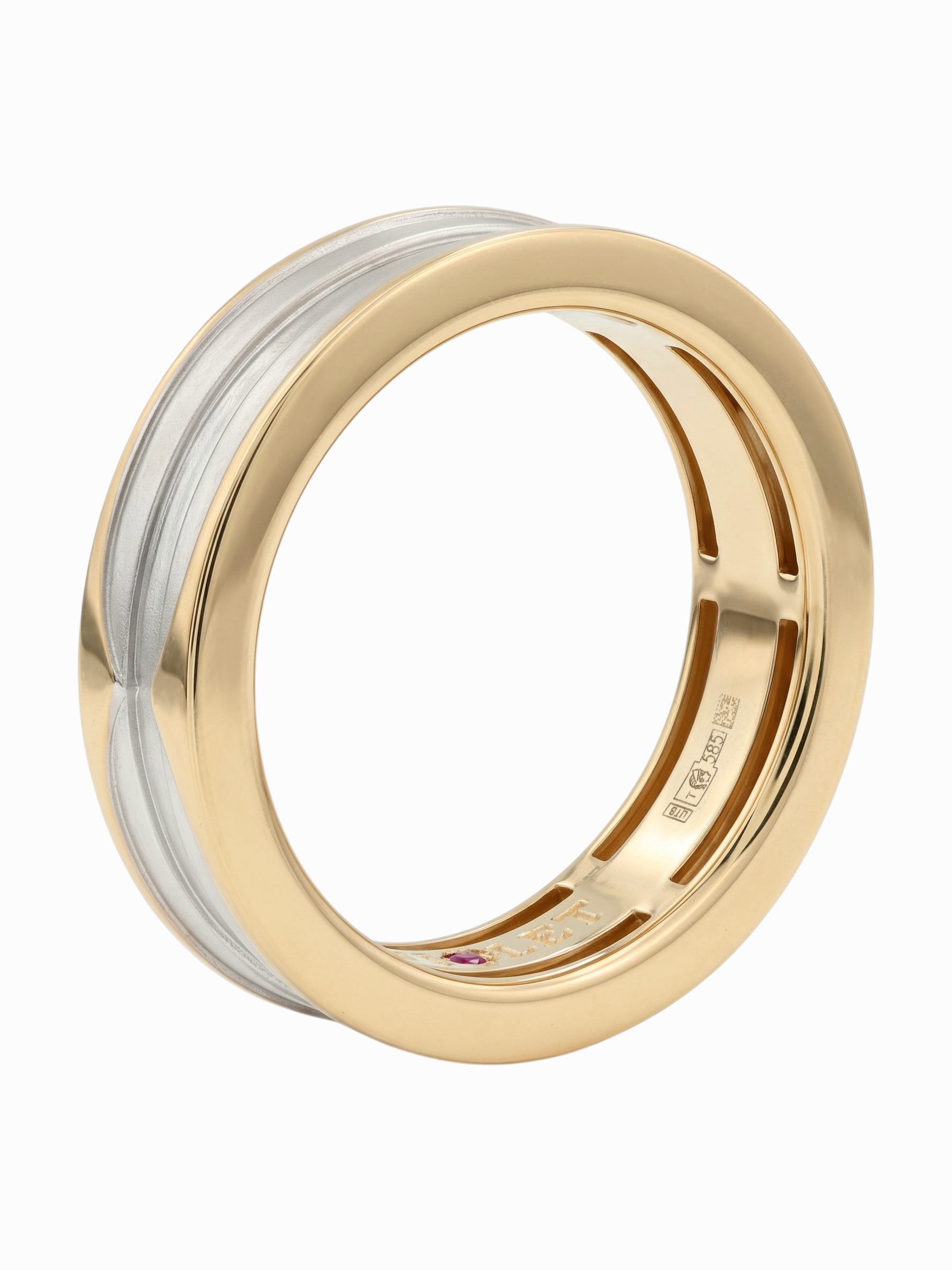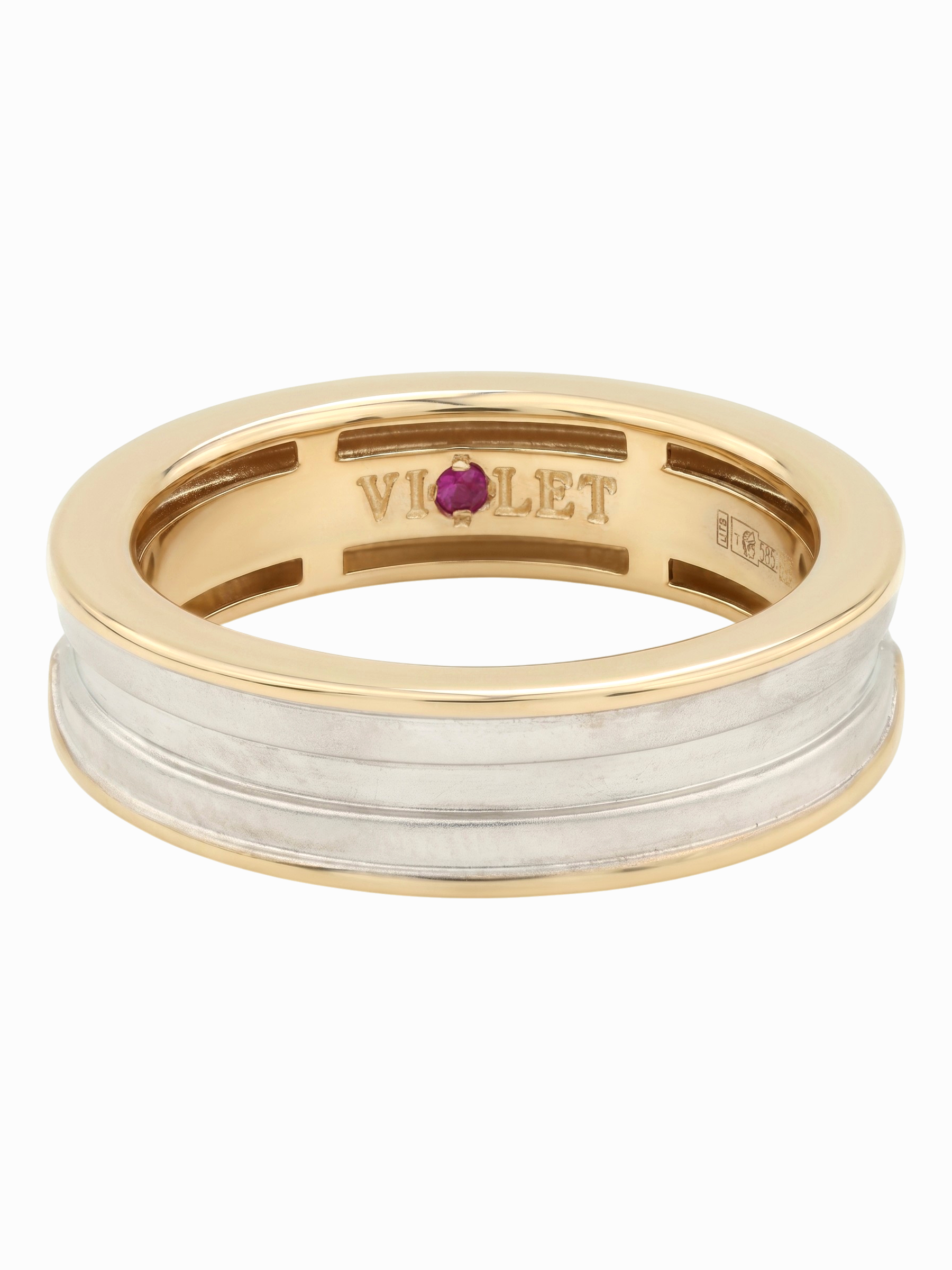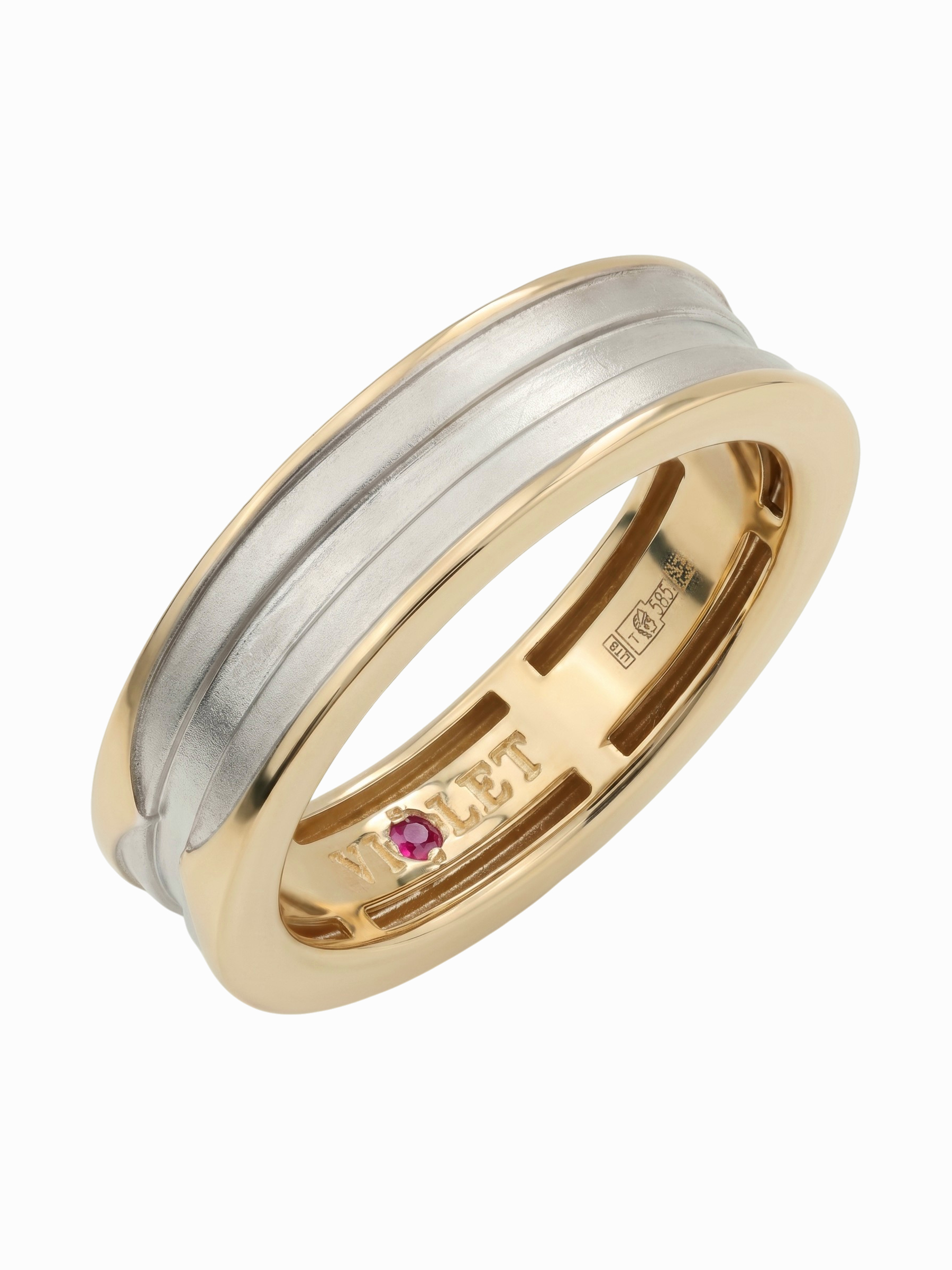 Кольцо из красного золота 585 пробы из коллекции Vioretty — DEMETRA воплощает в себе современную эстетику и безупречный стиль. Это украшение станет знаковым аксессуаром для ценителей лаконичного дизайна и высокого ювелирного искусства. Особенностью модели является интригующее сочетание фактур и скрытая деталь — вставка из красного рубина круглой формы, расположенная на внутренней стороне изделия, что добавляет украшению глубины и индивидуальности.