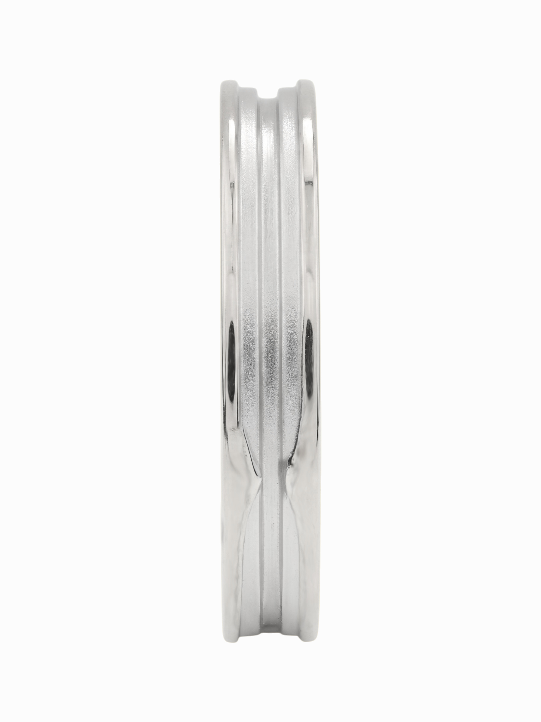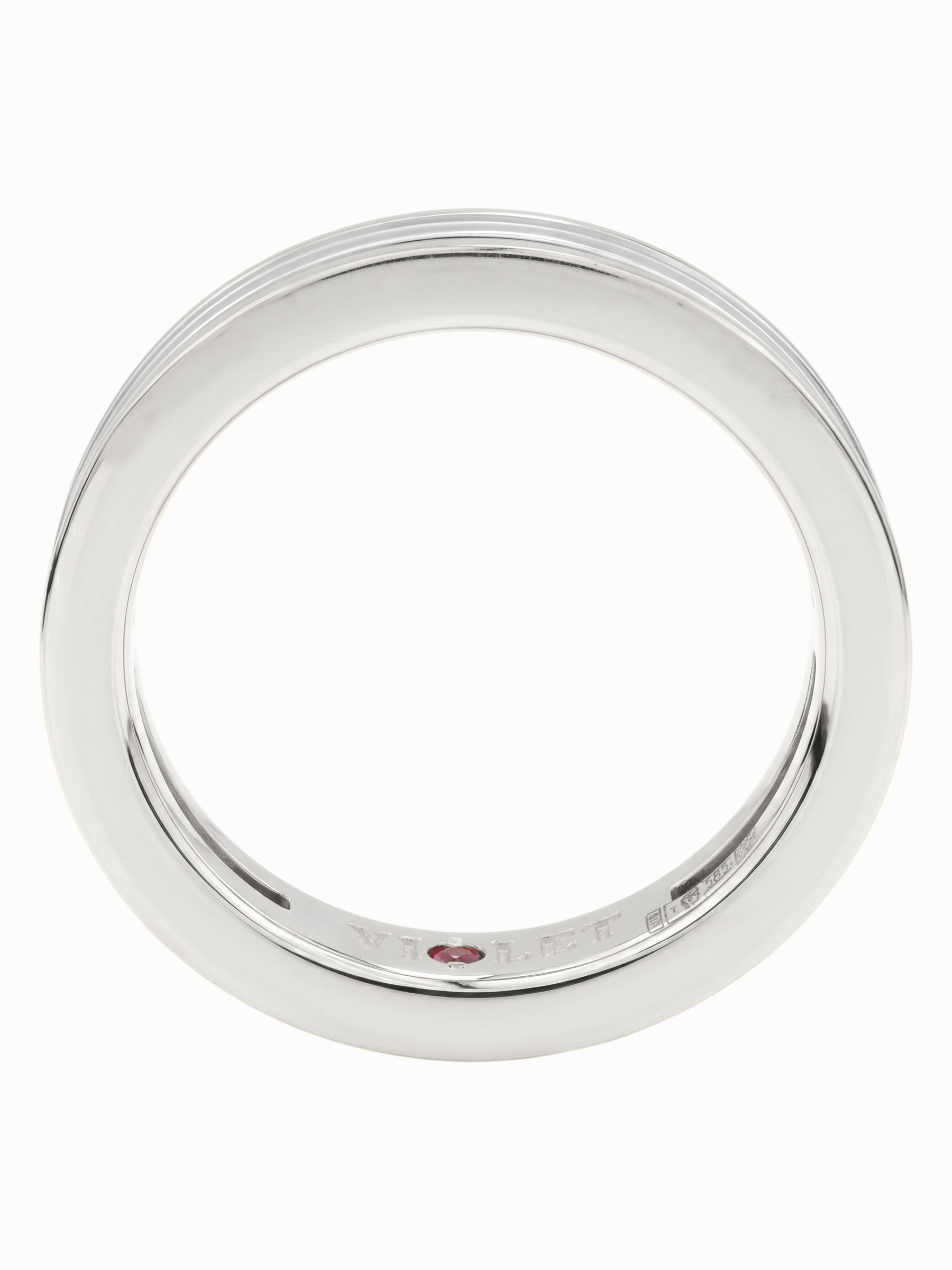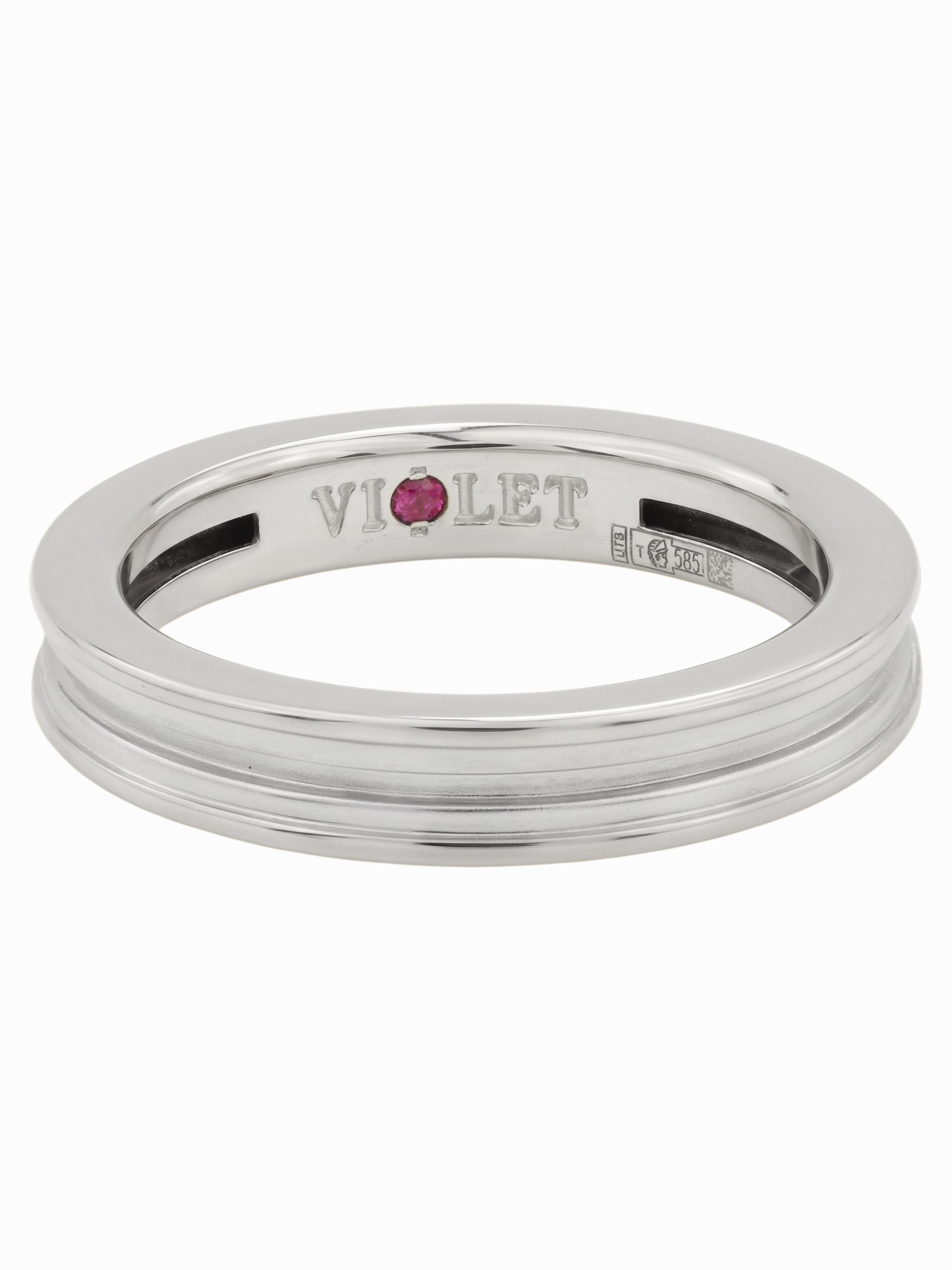 Особенностью модели является скрытая деталь — вставка из ярко-красного рубина круглой формы, расположенная во внутренней части шинки. Такое дизайнерское решение превращает классическое кольцо в личный амулет, секрет которого известен только владельцу. Глубокий оттенок красного камня гармонично контрастирует с холодным цветом материала. Это украшение станет прекрасным дополнением к повседневному образу или завершающим акцентом делового костюма.