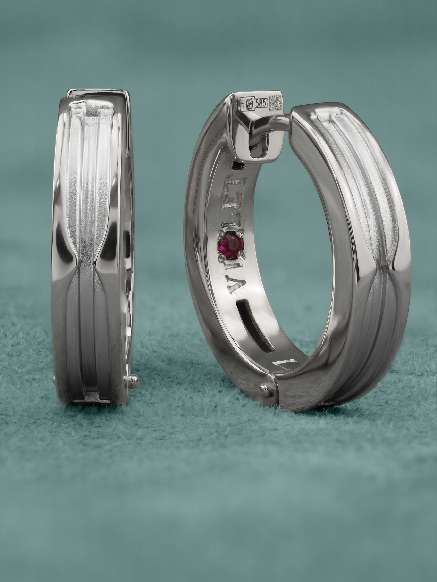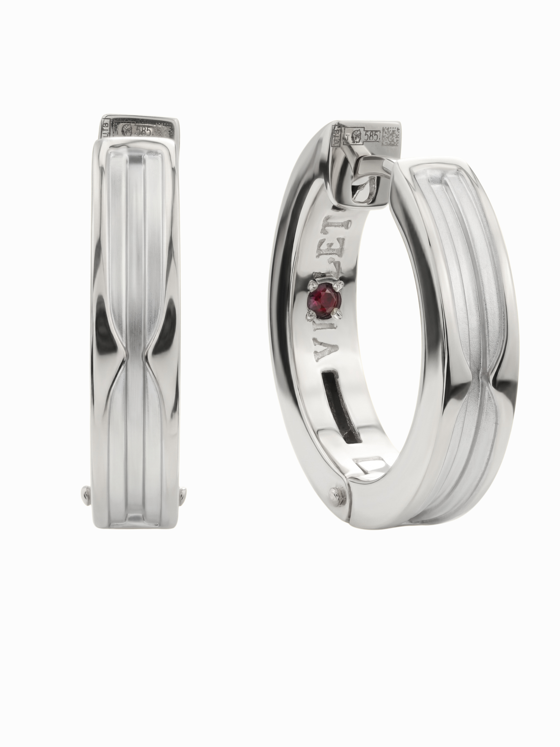 Особенностью модели является интригующая деталь: две вставки из красного рубина круглой формы расположены так, что они создают уникальный визуальный эффект, заметный при близком рассмотрении. Это универсальный аксессуар, который гармонично дополнит как строгий деловой костюм, так и вечерний образ. Серьги из белого золота с рубином подходят как для женщин, так и для мужчин, ценящих минимализм с характером.