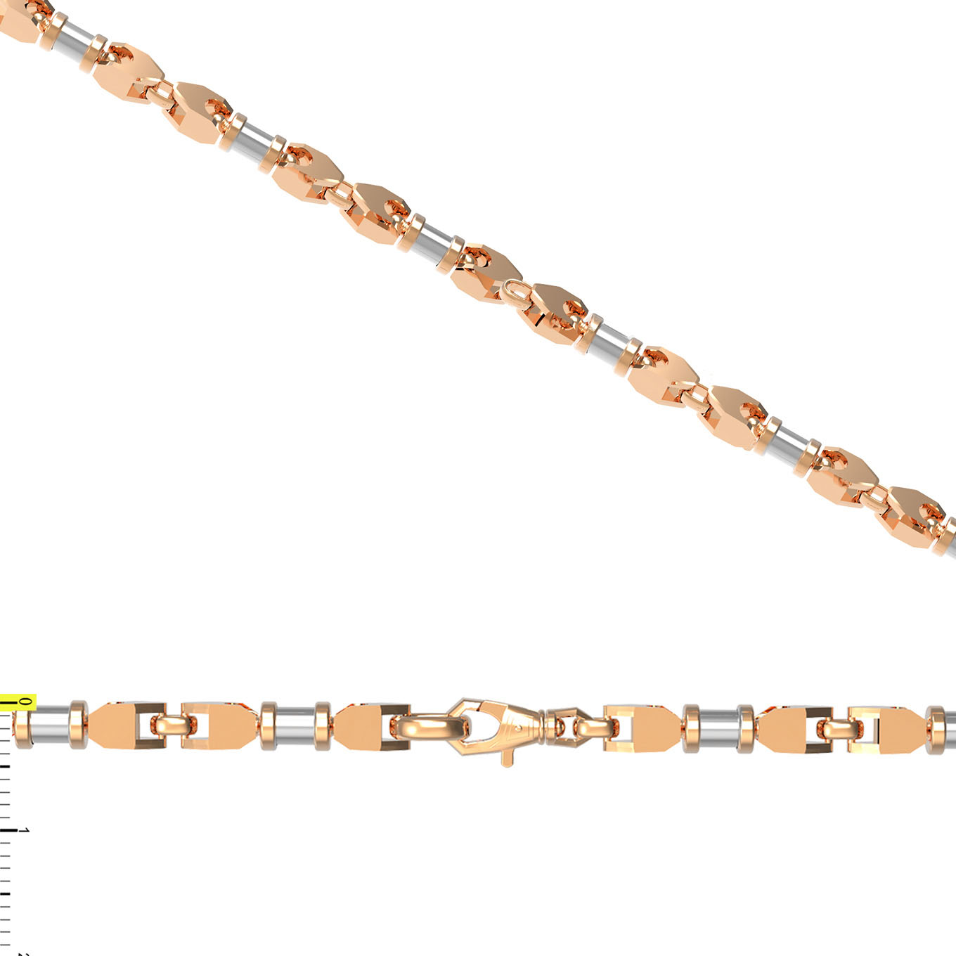 Мужская цепь из красного золота 585 пробы станет безупречным дополнением вашего имиджа, подчеркивая статус и безупречный вкус владельца. Ювелирное изделие из серии De Luxe — Цепи De Luxe выполнено с особым вниманием к деталям: чередование звеньев классического красного золота с вставками контрастного оттенка создает выразительный геометрический ритм. Такой дизайн выглядит сдержанно, но при этом современно, позволяя носить аксессуар как с деловым костюмом, так и с одеждой в стиле casual.