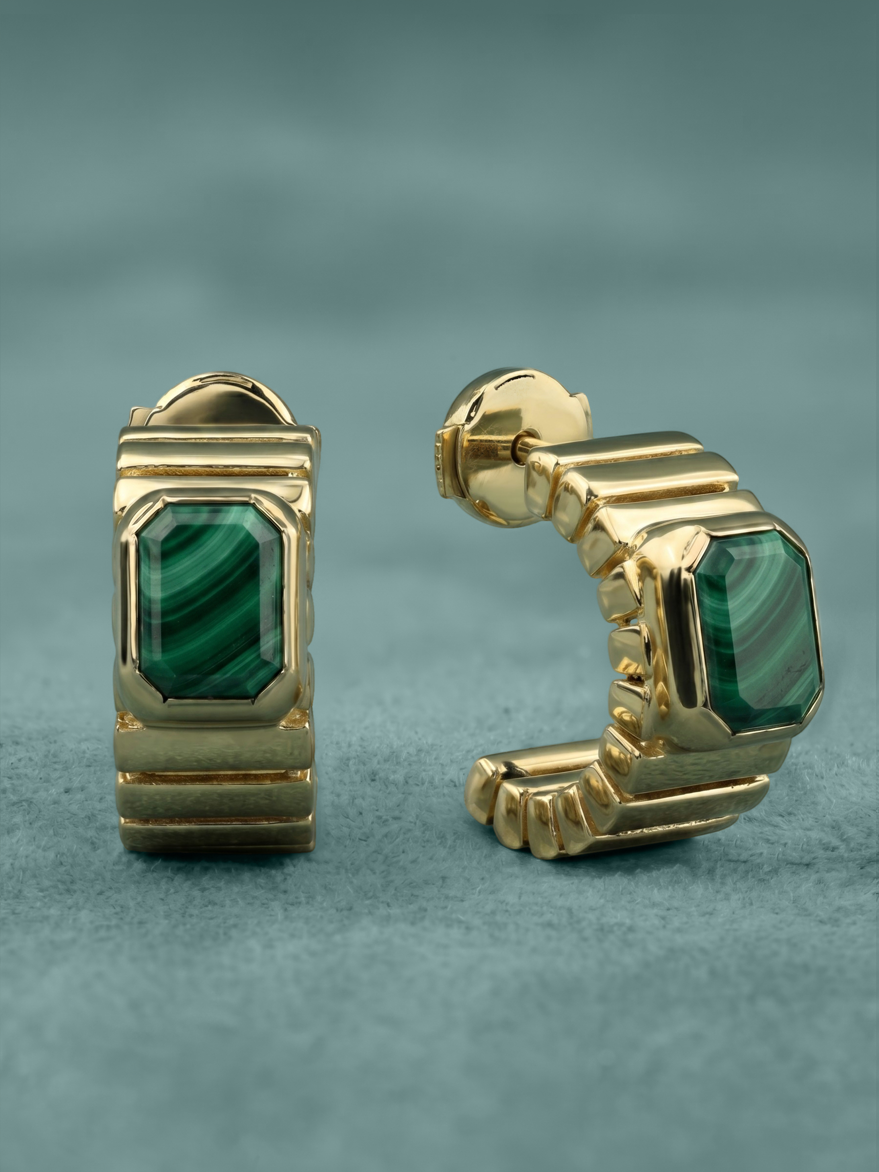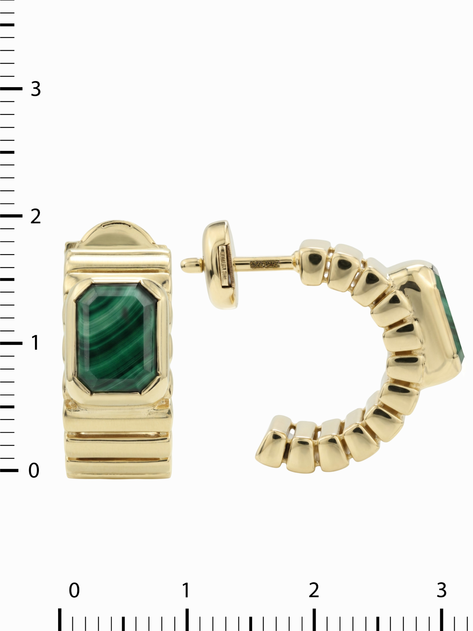 Лимонный оттенок золота создает благородный контраст с насыщенным зеленым малахитом, делая аксессуар выразительным и статусным. Это универсальный выбор для тех, кто ценит лаконичность и архитектурную точность в украшениях. Благодаря продуманному дизайну эти серьги одинаково гармонично дополнят образы как женщин, так и мужчин, подчеркивая индивидуальность владельца. Изделие станет ярким акцентом в повседневном или вечернем гардеробе, а также может быть дополнено другими украшениями из этой же серии для создания завершенного комплекта.