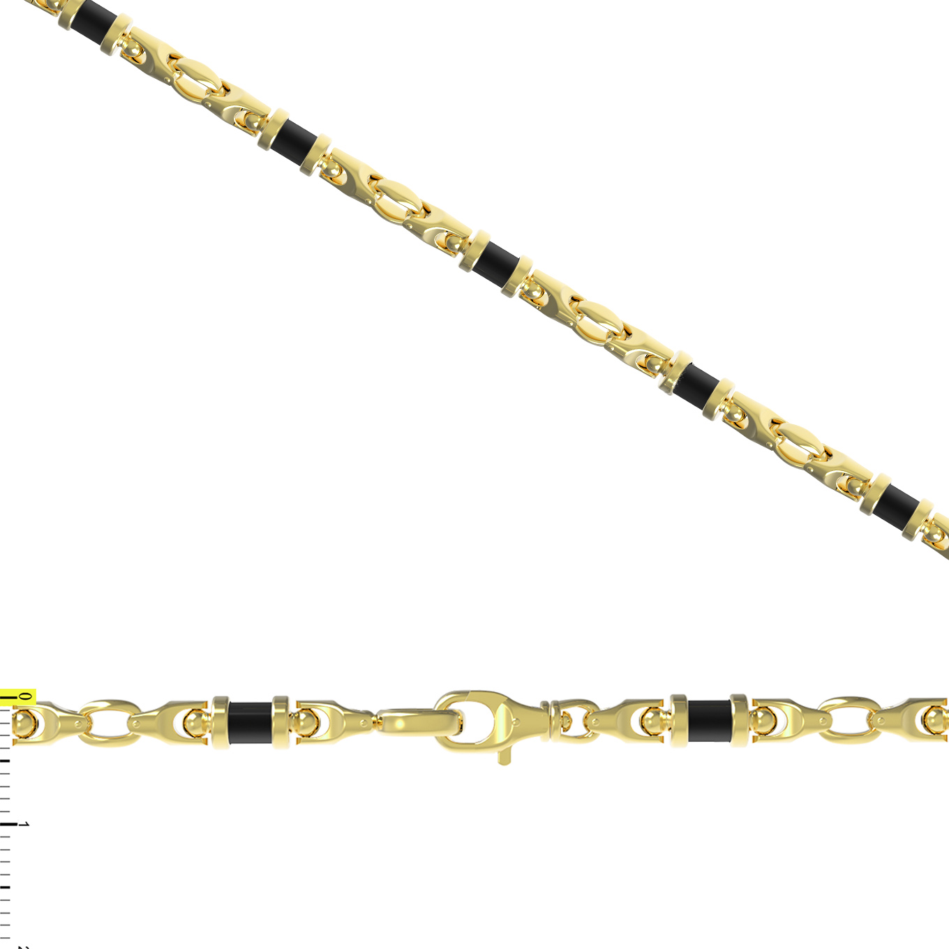 Мужская цепь из лимонного золота 585 пробы — это сочетание безупречного стиля, благородства материалов и выверенной геометрии. Изделие входит в коллекцию De Luxe — Цепи De Luxe, которая создана для ценителей статусных украшений. Основу дизайна составляет эффектный контраст теплого оттенка золота и глубокого черного цвета вставок. Каждое звено гармонично дополнено ониксом, что придает украшению солидный и мужественный вид.