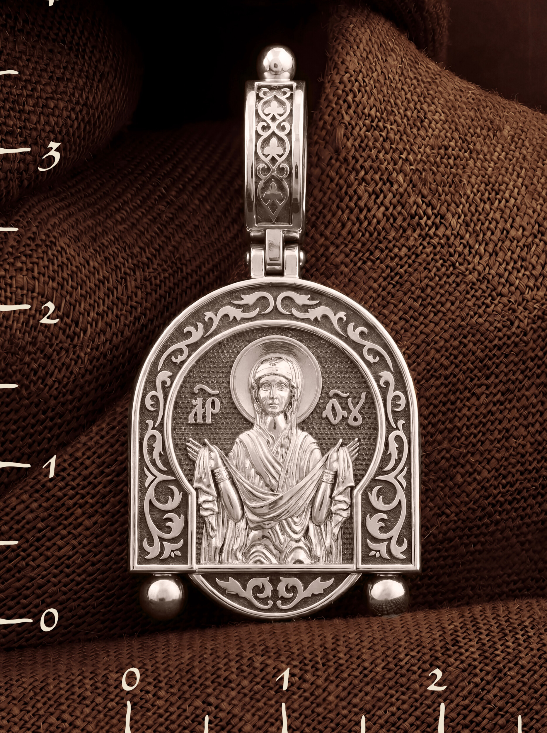 На обороте образка написано: «Владычице, покрый нас Честным Твоим покровом и избави нас от всякия зла».