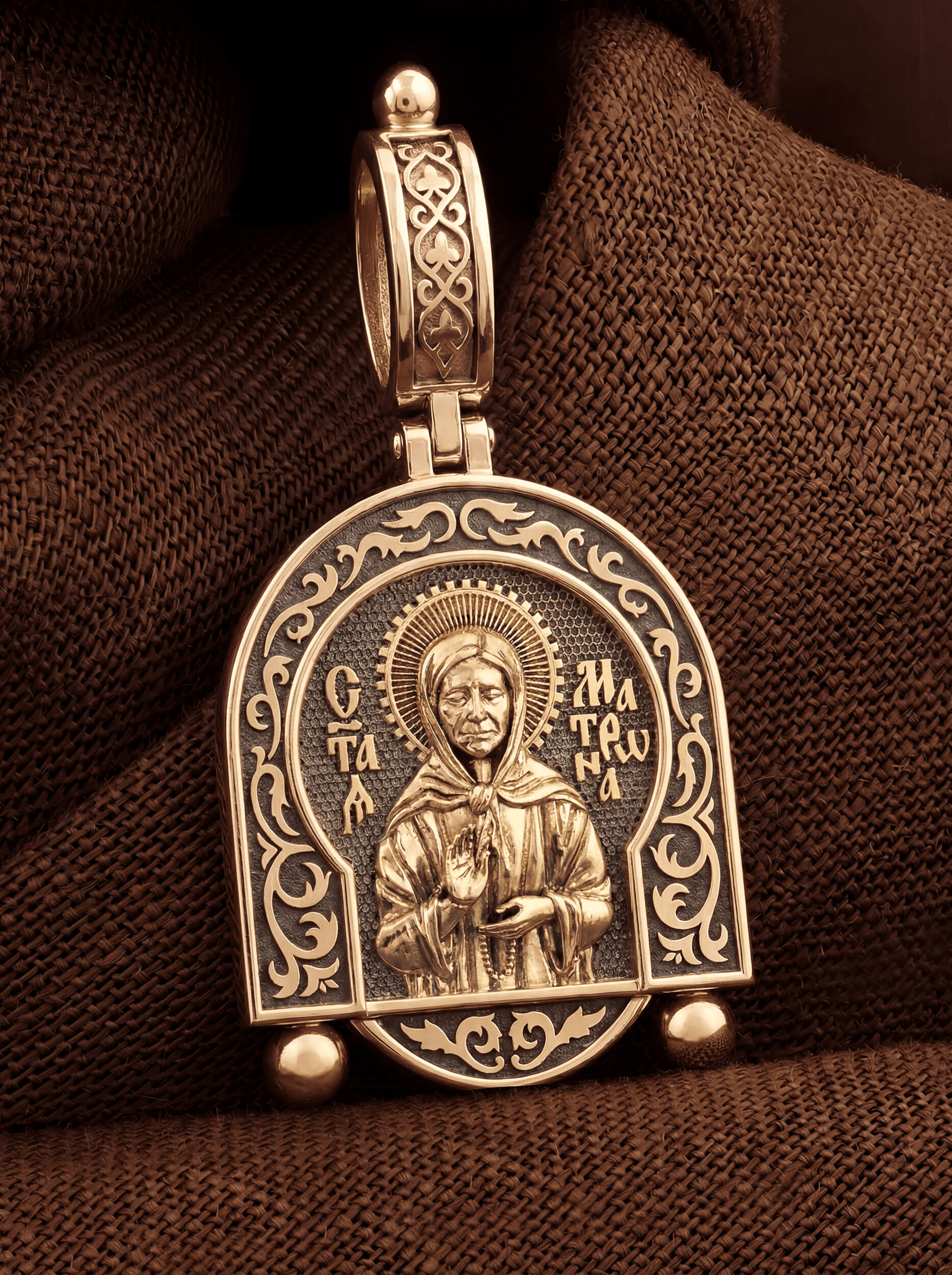 На лицевой стороне образка изображена Святая Матрона Московская.