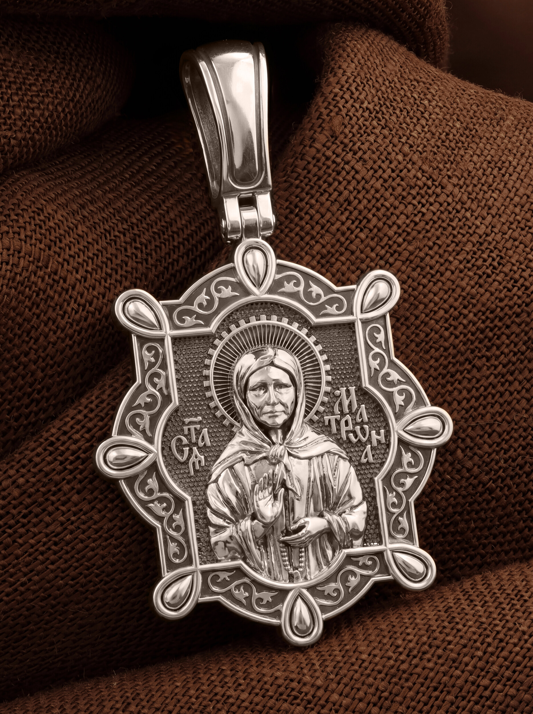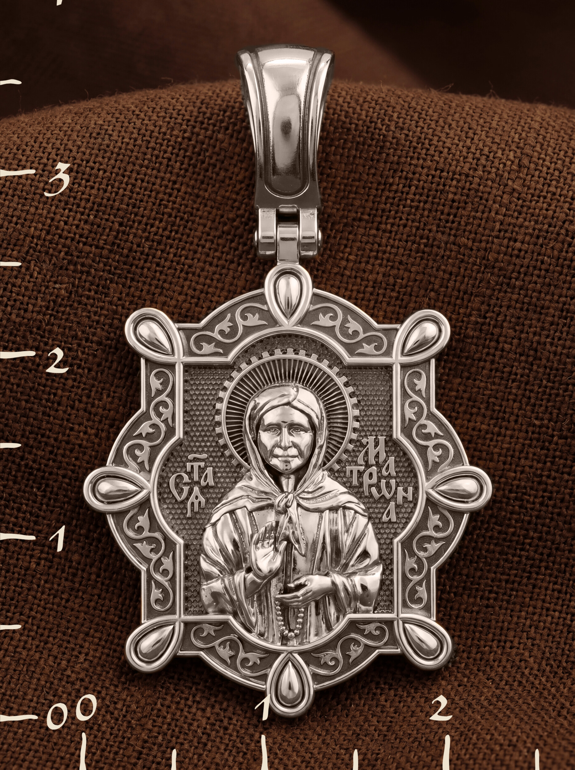 На лицевой стороне образка изображена Святая Матрона Московская.