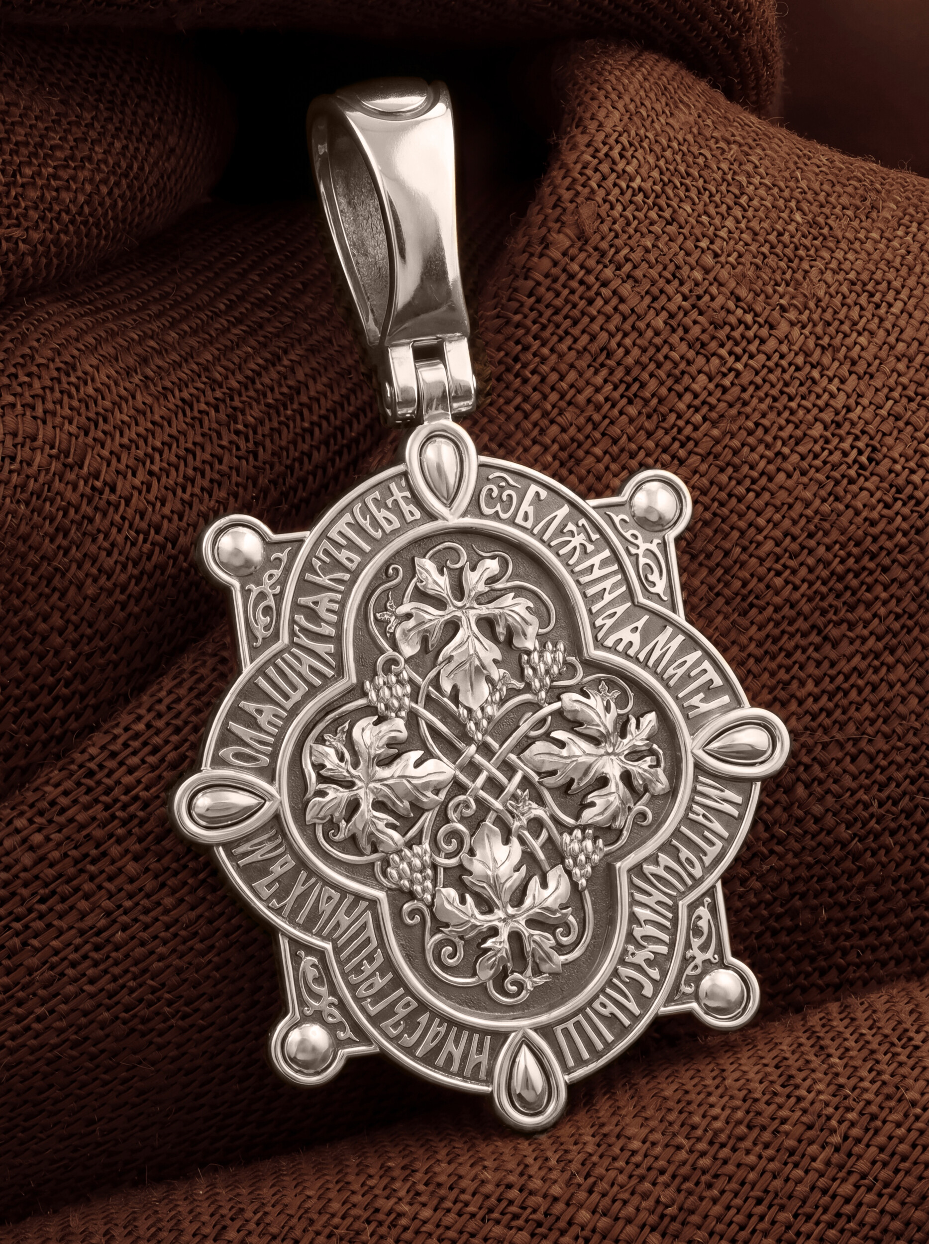 На оборотной стороне изображена виноградная лоза — символы церкви и евхаристии. «Я есмь лоза, — говорил Иисус Христос Своим ученикам, — а вы ветви; кто пребывает во Мне, и Я в нем, тот приносит много плода» (Ин. 15, 5), «Я есмь истинная виноградная лоза, а Отец Мой — виноградарь». Вокруг образка написана молитва: «О блаженная мати Матроно, услыши насгрешных, молящихся к Тебе».