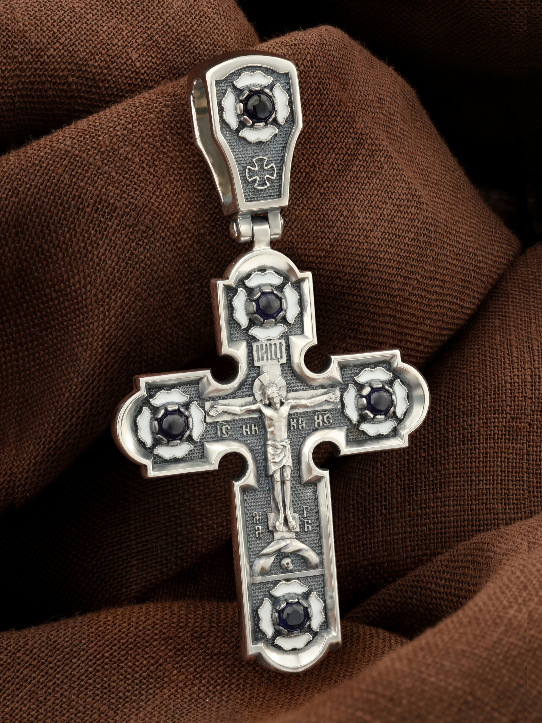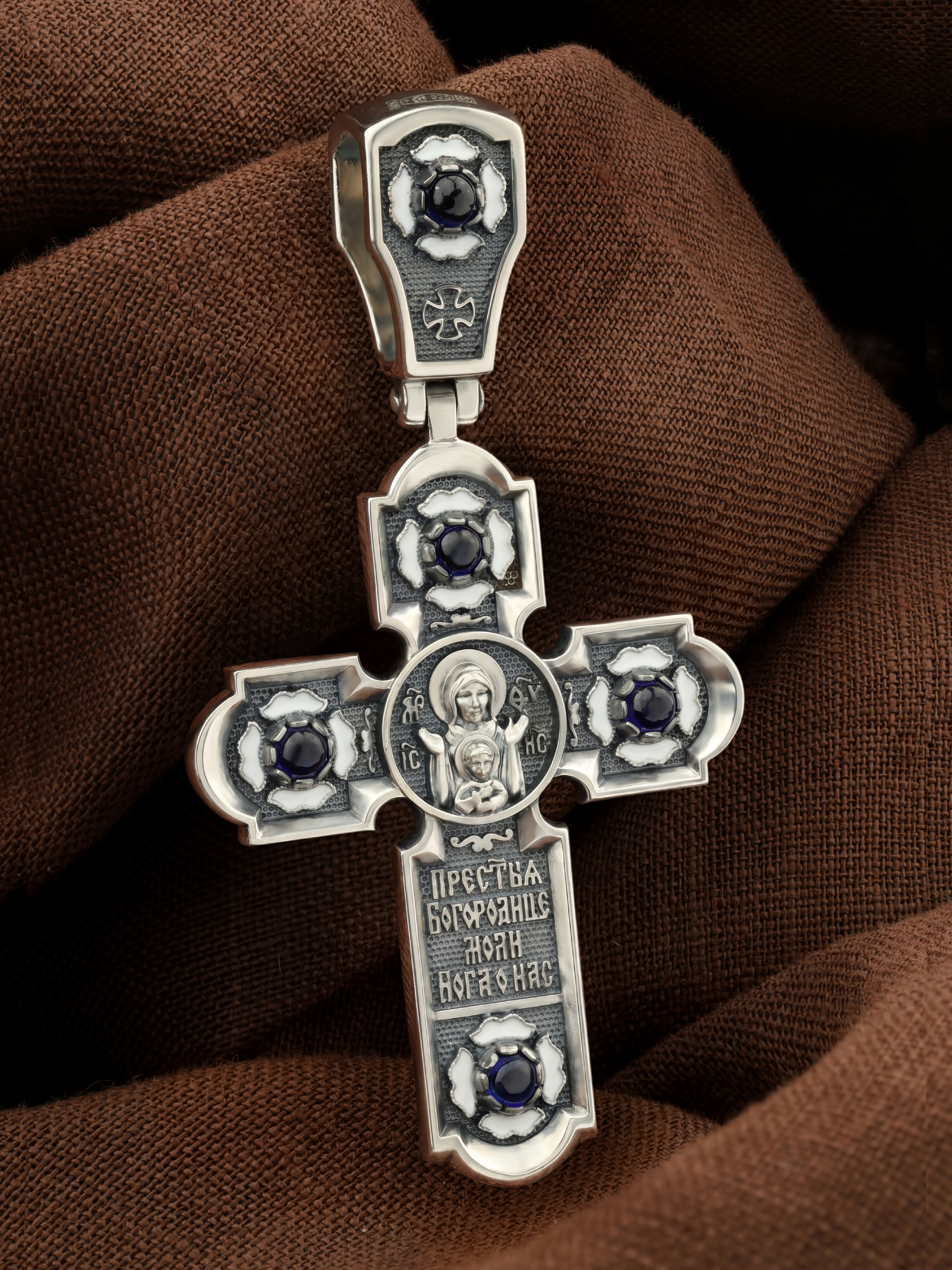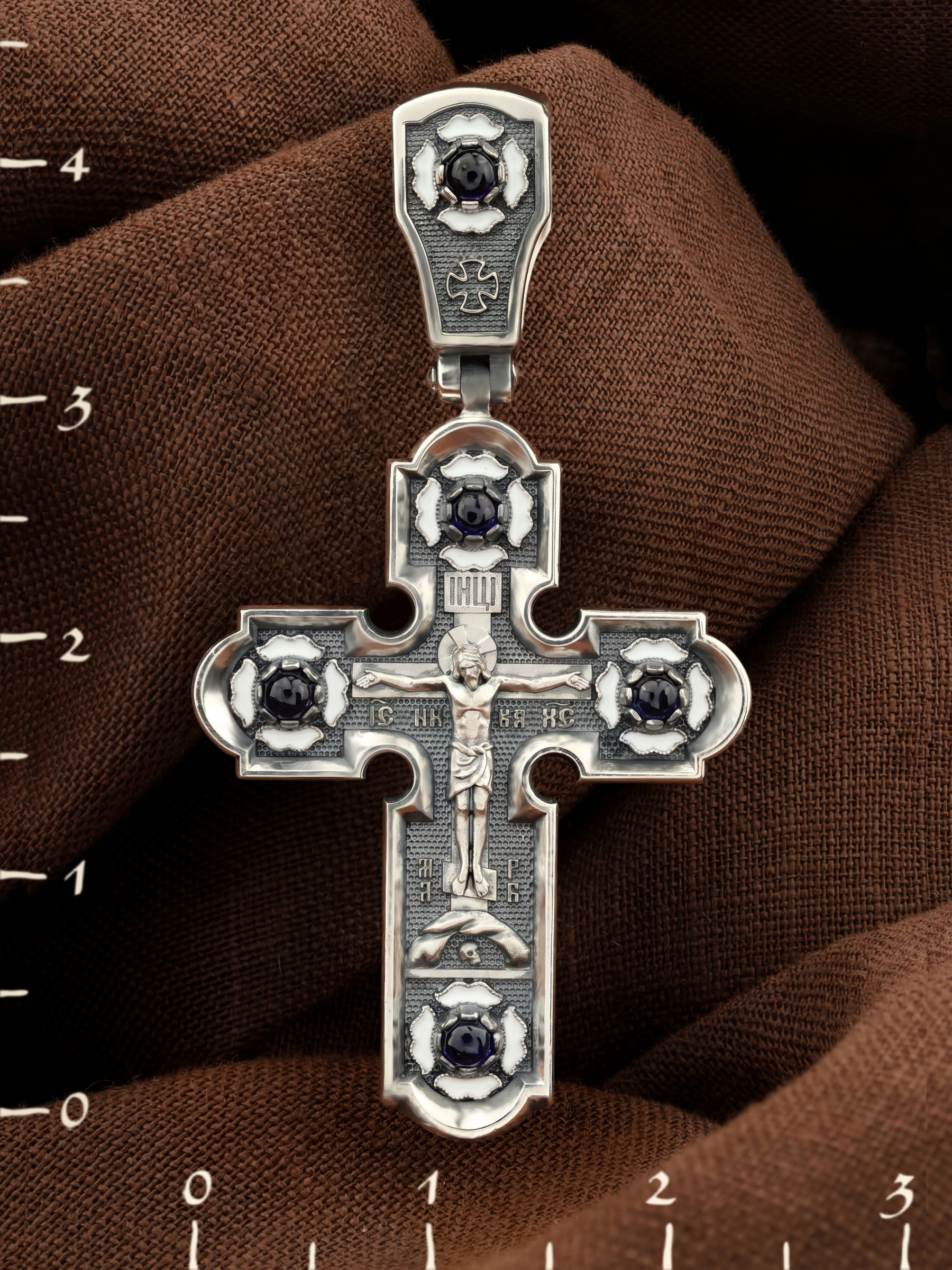 Крест из серебра 925 пробы c эмалью и сапфиром