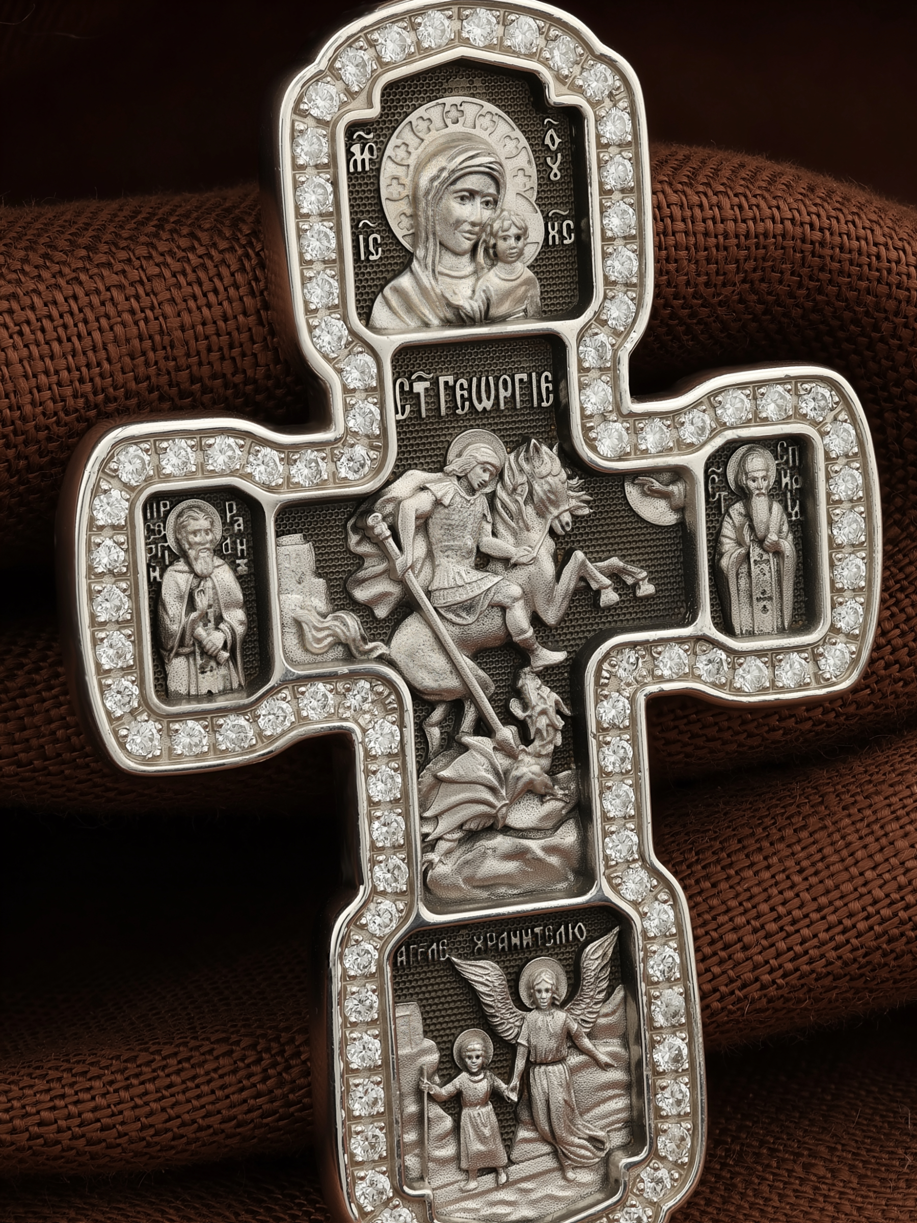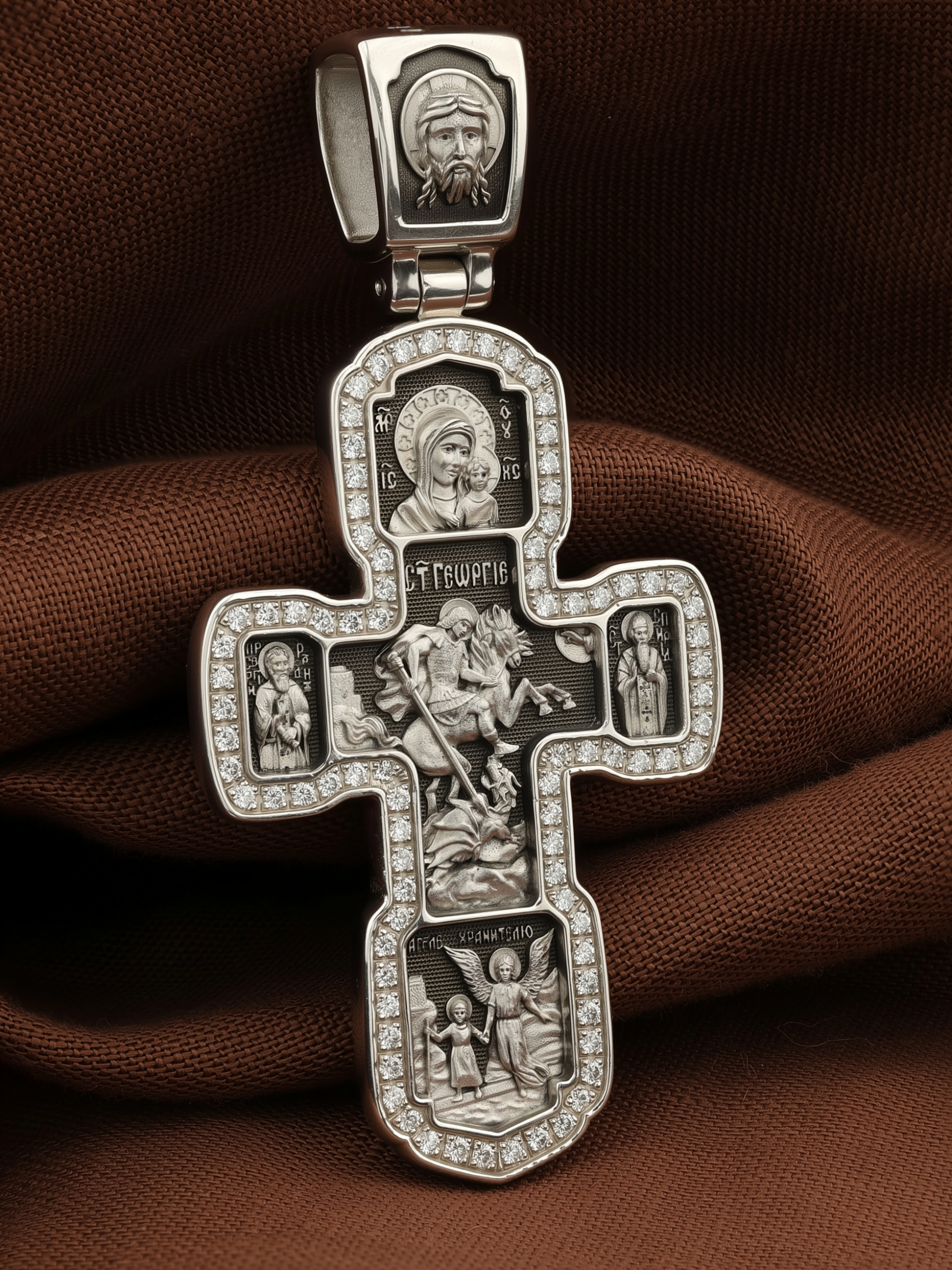 В центральной части оборота креста изображен Георгий Победоносец — покровителем и защитником воинов.