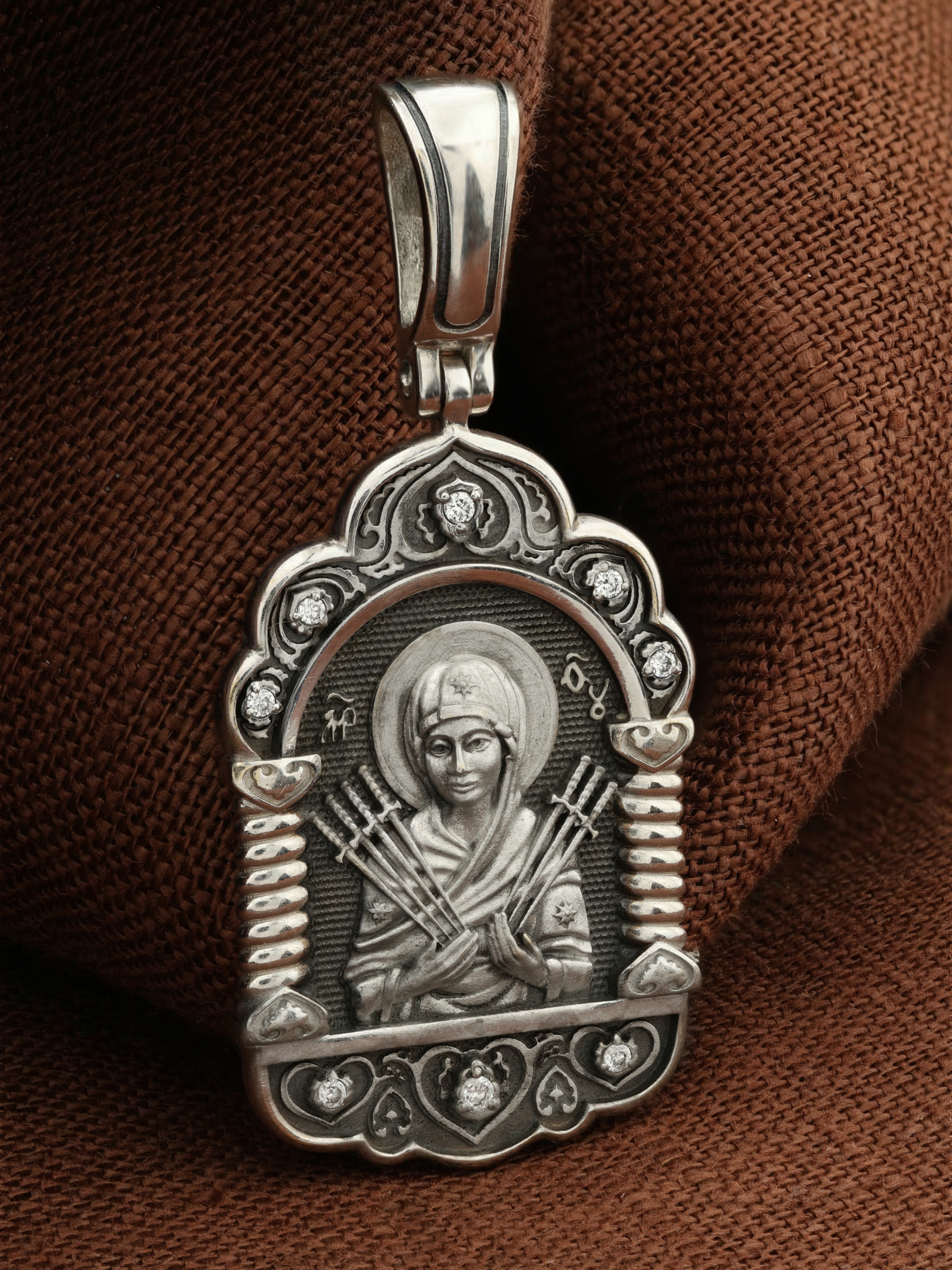 Пресвятая Богородица в Своей чудотворной иконе «Семистрельная» почитается как усмирительница враждебных чувств, защитница от злого умысла. Этой иконе молятся, чтобы остановить междоусобную брань, умилосердить сердца врагов, а также победить злые помыслы и недобрые чувства в собственном сердце. Все прибегающие к этой иконе с молитвою чувствуют, что при умягчении сердца облегчаются страдания не только душевные, но и телесные. Если же помолиться пред таким образом за своих врагов, то враждебные чувства уступают место милосердию, а разъедающая душу ненависть утихает.