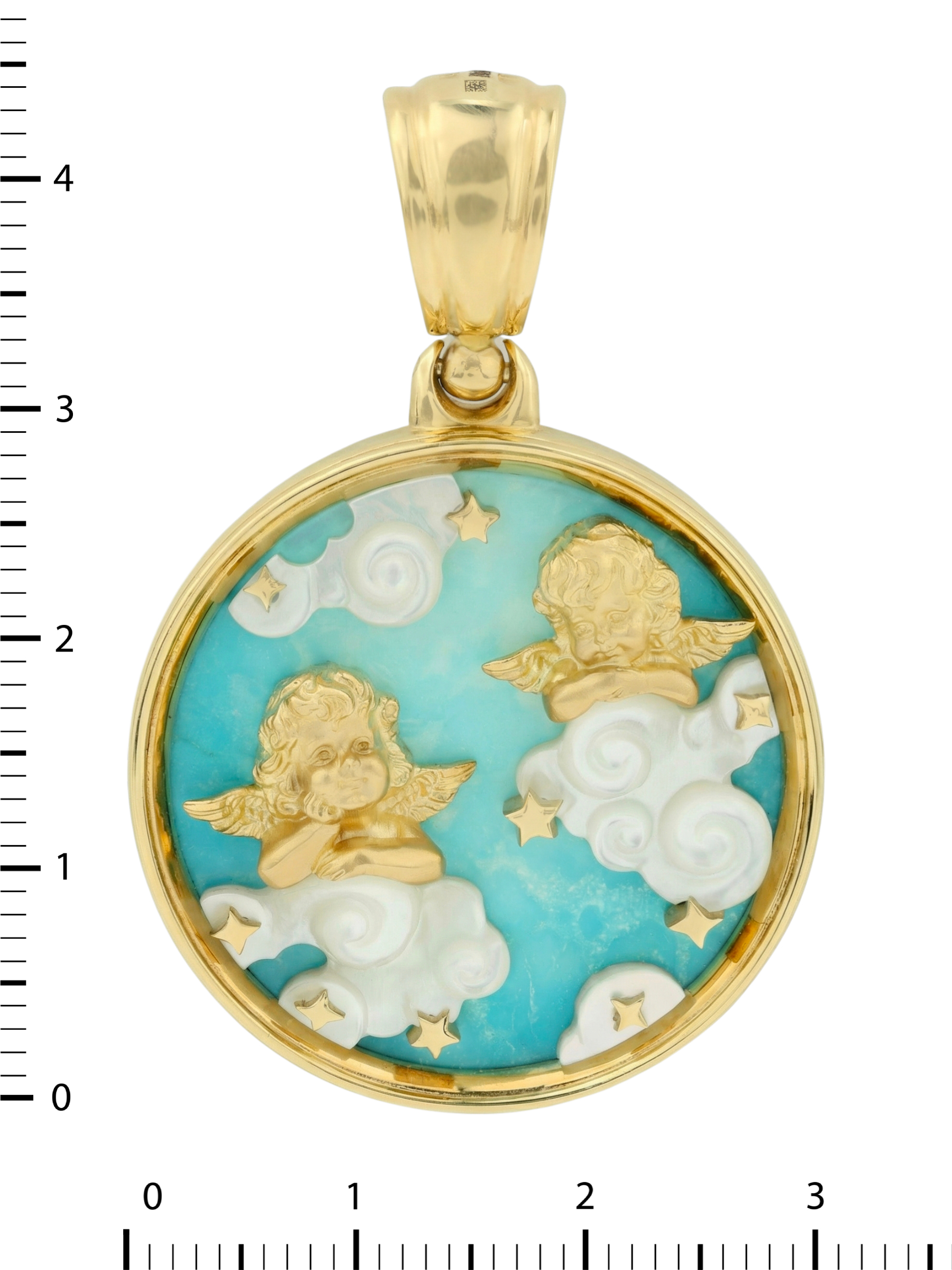 Особую выразительность подвеске придает сочетание благородного лимонного золота с натуральными вставками. Яркий бирюзовый фон символизирует чистое небо, а перламутр, из которого выполнены фигурные облака, создает мягкое, переливающееся свечение. В центре композиции расположены миниатюрные звезды, добавляющие изделию сказочного шарма. Благодаря универсальному дизайну, эта подвеска станет прекрасным дополнением образа как для женщин, так и для мужчин.