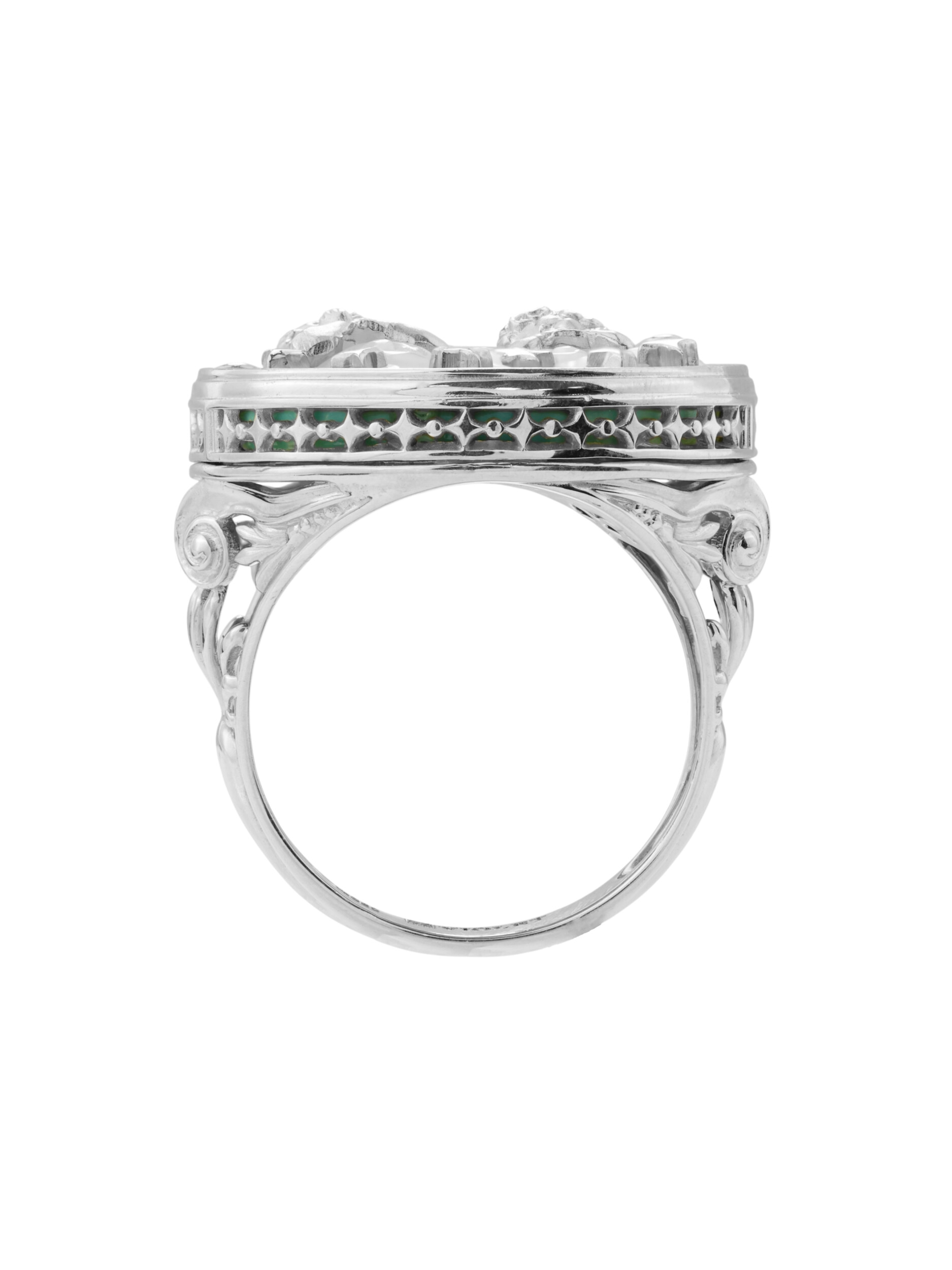 Это роскошное кольцо универсально: оно создано как для женщин, так и для мужчин, ценящих эксклюзивные украшения с глубоким смыслом. Использование белого золота подчеркивает благородство и холодный блеск камней круглой формы. Модель представлена в широкой размерной сетке от 15 до 23, что позволяет подобрать идеальный вариант для любого пальца. Изделие может быть частью гармоничного комплекта, дополняя ваш образ завершенным ювелирным ансамблем.