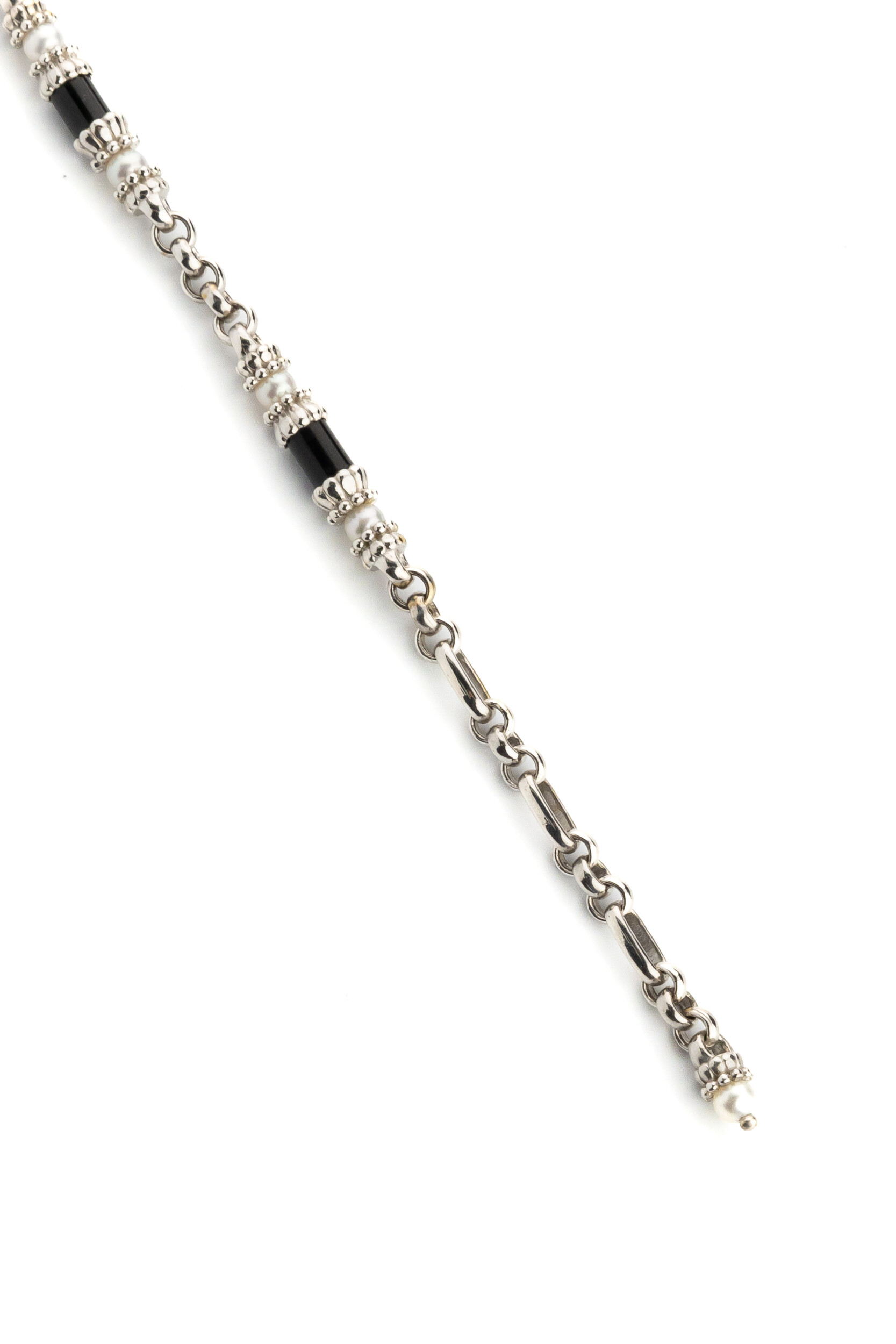 Браслет из белого золота c жемчугом и ониксом