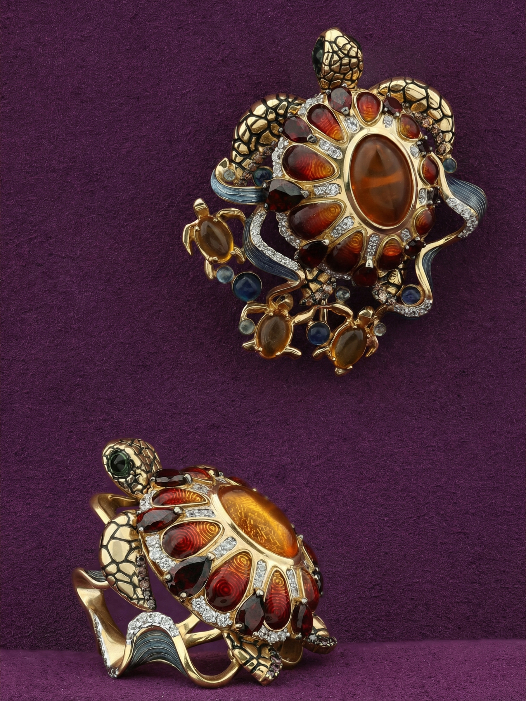 Представляем вашему вниманию уникальную брошь из коллекции De luxe Premium — Черепахи, выполненную в виде грациозных черепах. Это ювелирное произведение искусства создано из лимонного золота 585 пробы, чей благородный оттенок подчеркивает сложность и детализацию дизайна. Изделие станет акцентным дополнением образа как для женщин, так и для мужчин, предпочитающих эксклюзивные украшения.