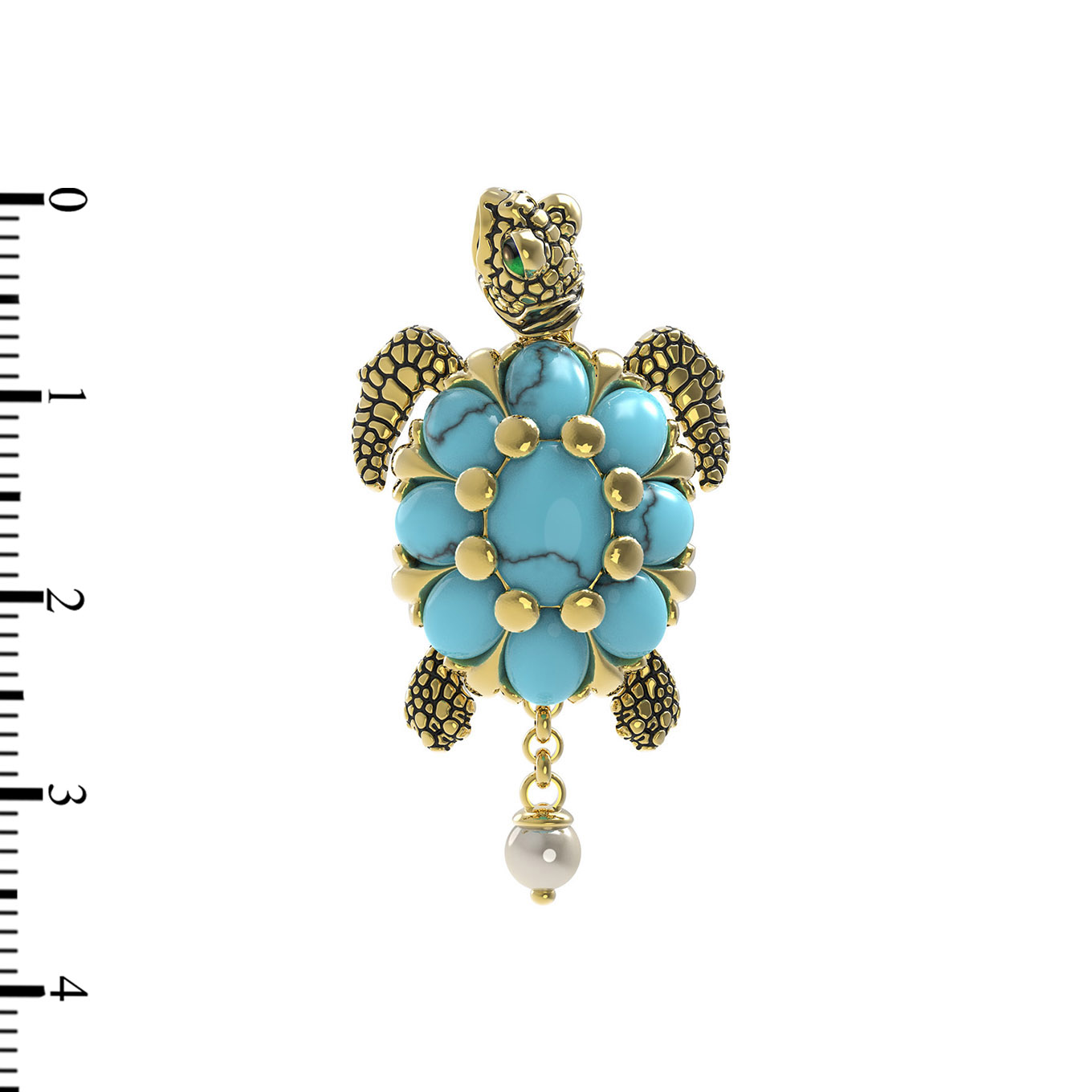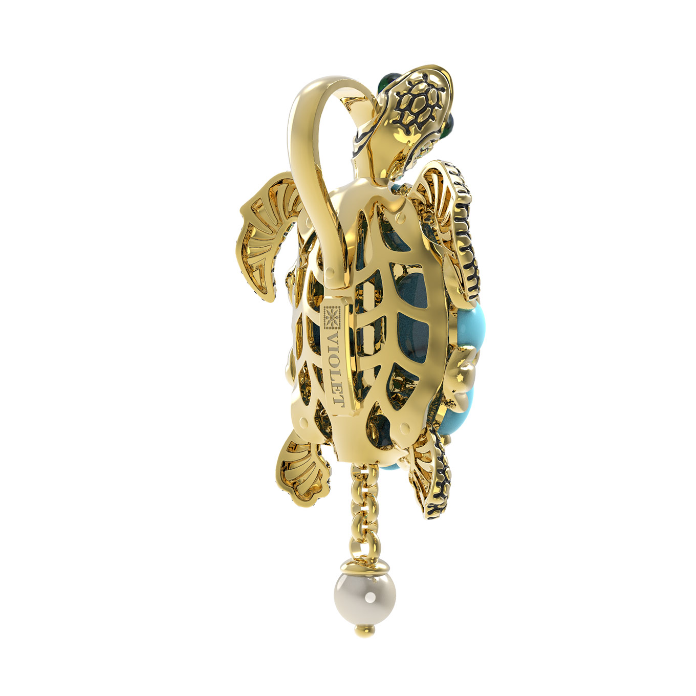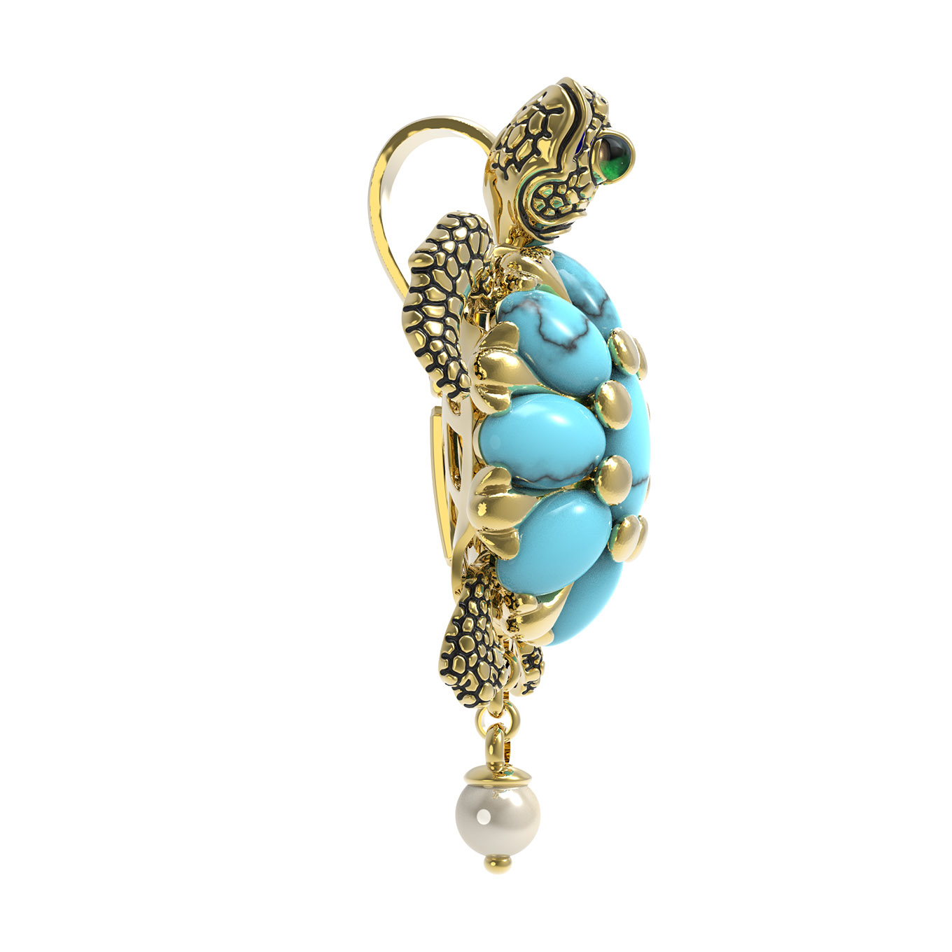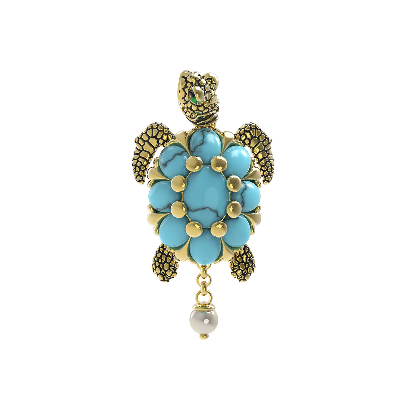 Подвеска из лимонного золота c эмалью, жемчугом и бирюзой