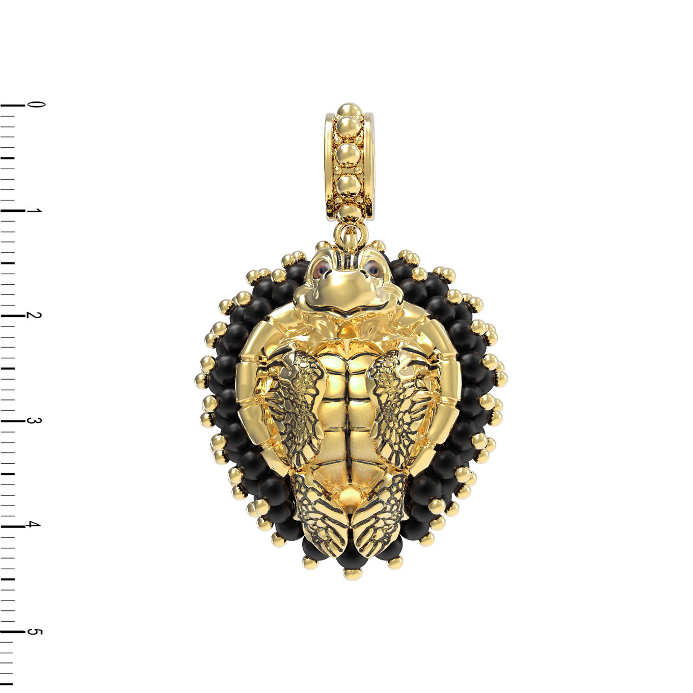 Откройте для себя воплощение ювелирного мастерства с уникальной подвеской из лимонного золота 585 пробы. Это изделие, представленное в рамках коллекции De luxe Premium — Черепахи, вдохновлено образом мудрой черепахи, чей дизайн сочетает в себе благородство драгоценного металла и эксклюзивную эстетику. Оригинальный внешний вид подвески привлекает внимание глубоким контрастом: основа из сияющего лимонного золота искусно дополнена 61 вставкой из черного оникса, имеющих форму изящных бусин, а также яркими акцентами из эмали.