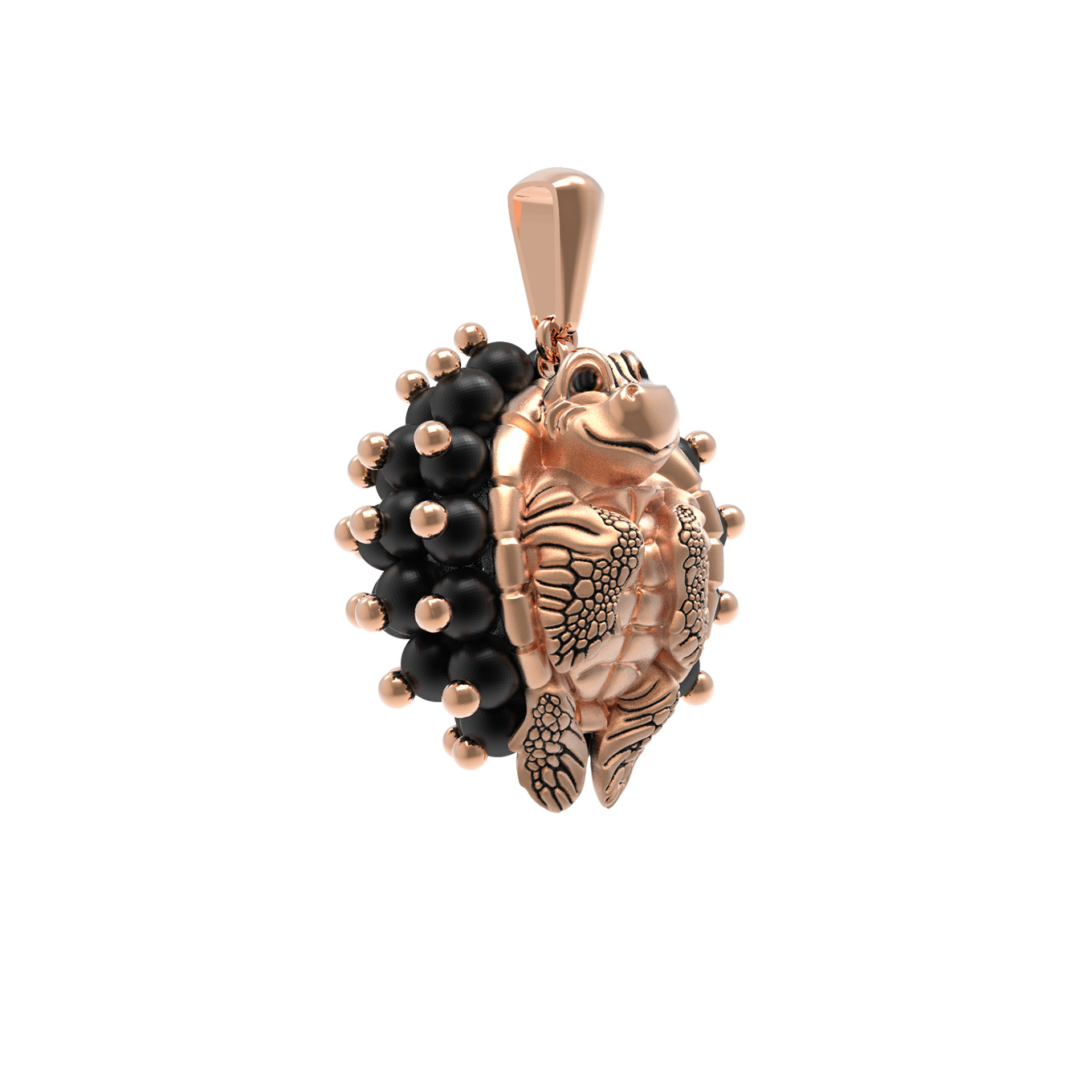Ювелирное изделие из коллекции De luxe Premium — Черепахи разработано как универсальный аксессуар. Лаконичная, но при этом сложная геометрия формы позволяет носить эту подвеску как женщинам, так и мужчинам. Благодаря своей продуманной эстетике, это украшение гармонично впишется в повседневный или вечерний гардероб, а также может стать частью эксклюзивного комплекта, дополняя другие изделия из серии. Оникс в сочетании с золотом выглядит статусно и благородно, подчеркивая безупречный вкус владельца.