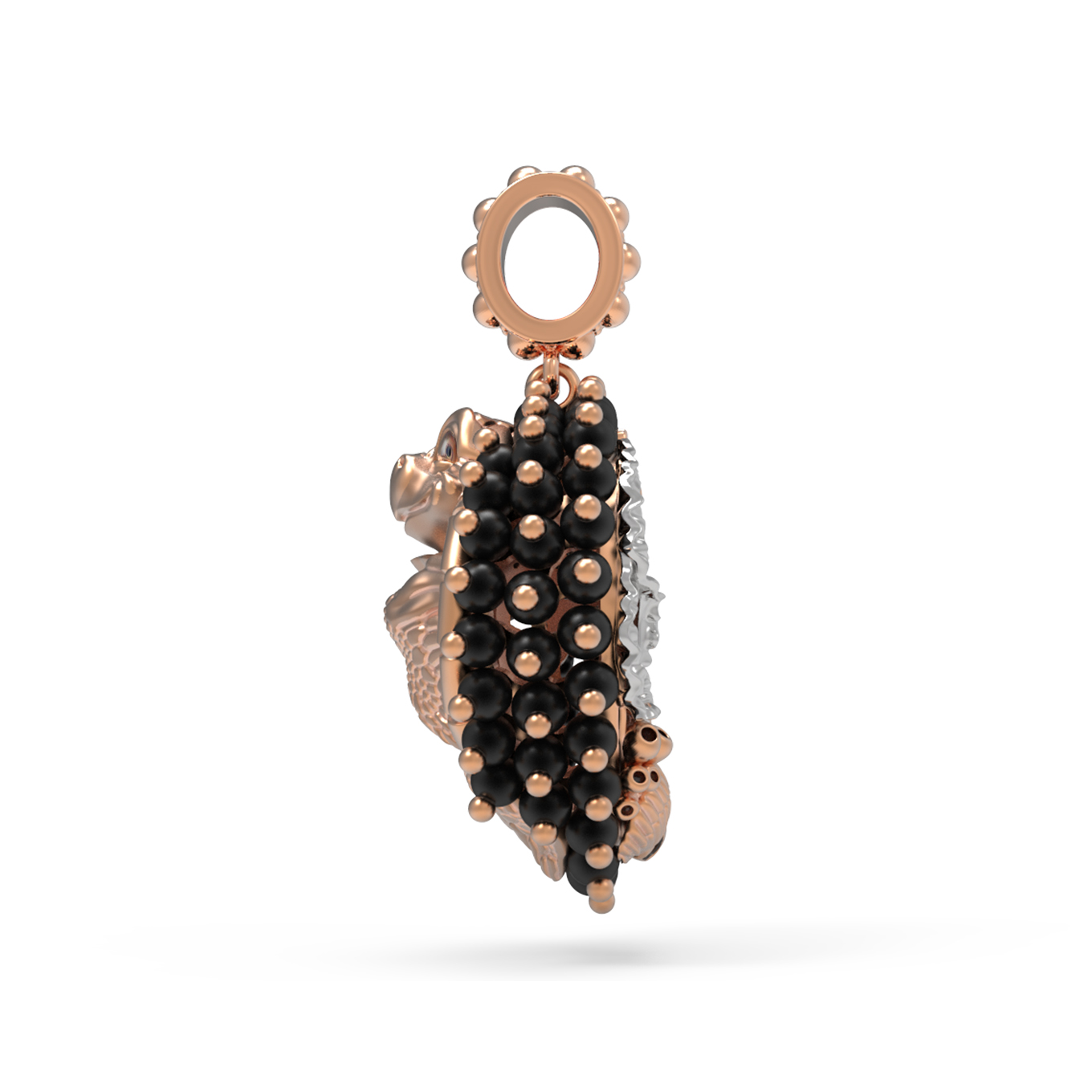 Особое внимание привлекает детальная проработка формы вставок: 61 бусина, выполненная из чёрного оникса, создает эффектный контраст с золотой основой. Разноцветные акценты эмали подчеркивают уникальность дизайна и придают украшению глубину. Это изделие универсально и подходит как для женщин, так и для мужчин, предпочитающих премиальные ювелирные решения.