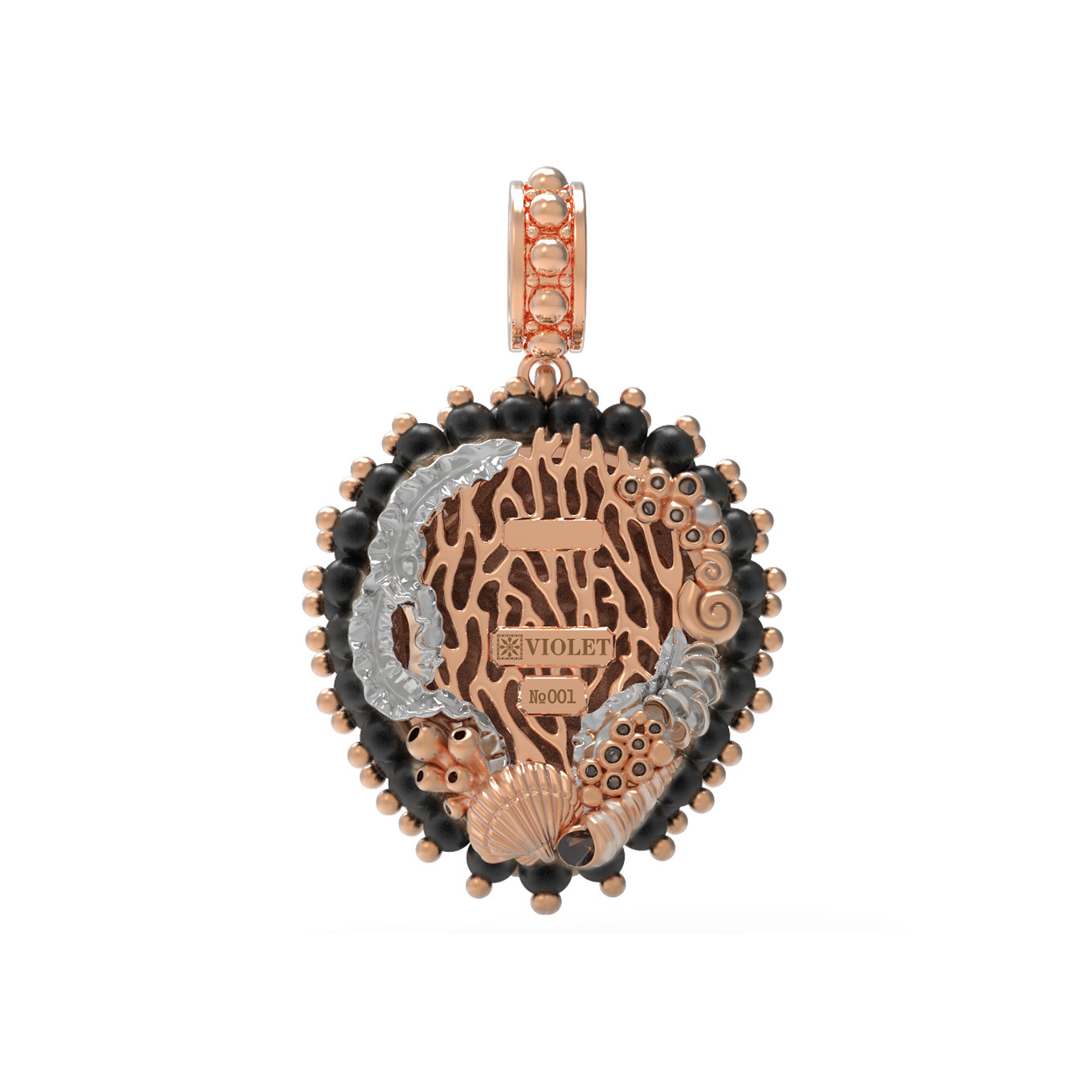 Подвеска из красного золота с эмалью и ониксом является частью концептуальной линии, что позволяет составить гармоничные комплекты с другими украшениями. Данное изделие подчеркнет индивидуальность владельца и станет ценным дополнением к персональной коллекции драгоценностей.