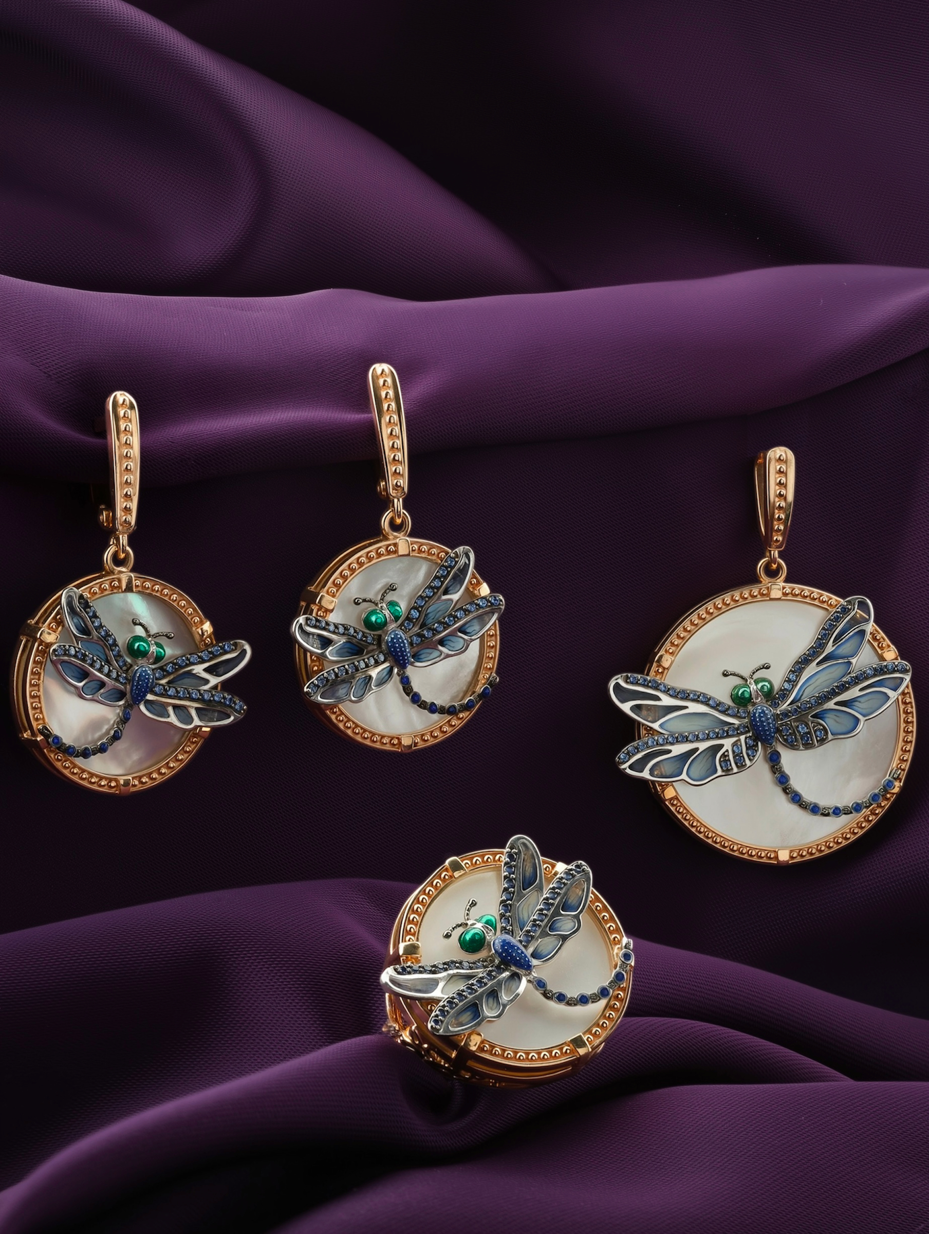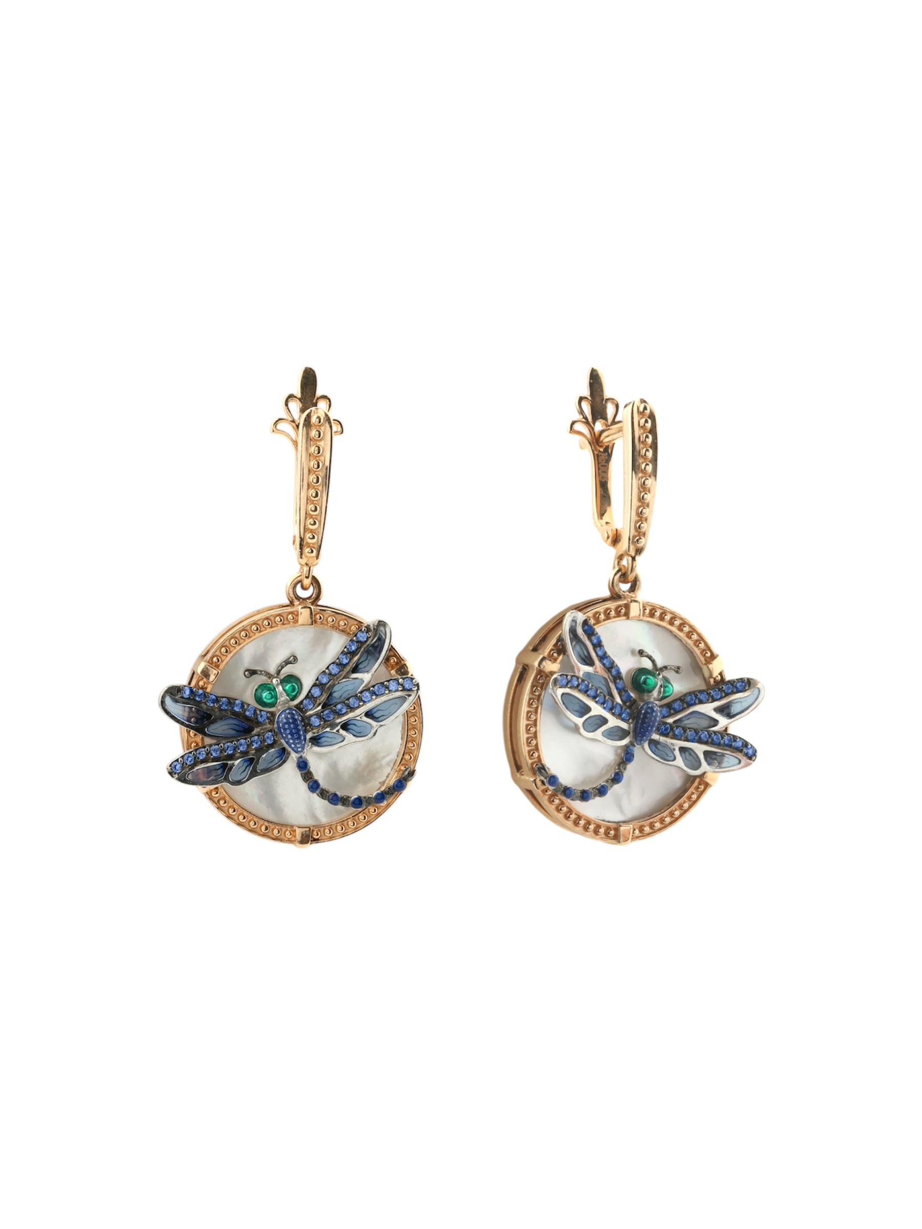 Серьги из золота c сапфиром, эмалью и перламутром