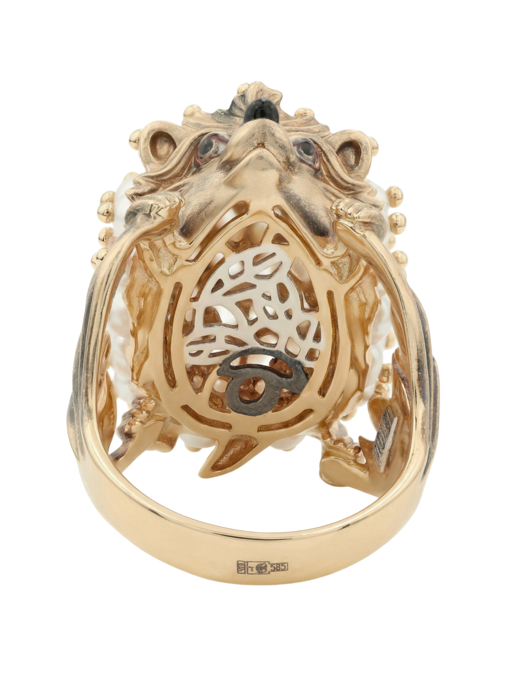 Кольцо с дизайном Ежи универсально и подходит как для женщин, так и для мужчин, предпочитающих необычные и статусные аксессуары. Мы предлагаем широкий размерный ряд, включающий варианты от 15 до 23 размера, что позволяет подобрать идеальную посадку на любой палец. Это изделие самодостаточно, однако при желании вы можете дополнить его другими украшениями из этой же серии, так как модель предусматривает возможность создания гармоничного комплекта. Ювелирное изделие из красного золота с эмалью и жемчугом — это выбор тех, кто ценит художественную смелость и безупречное исполнение.