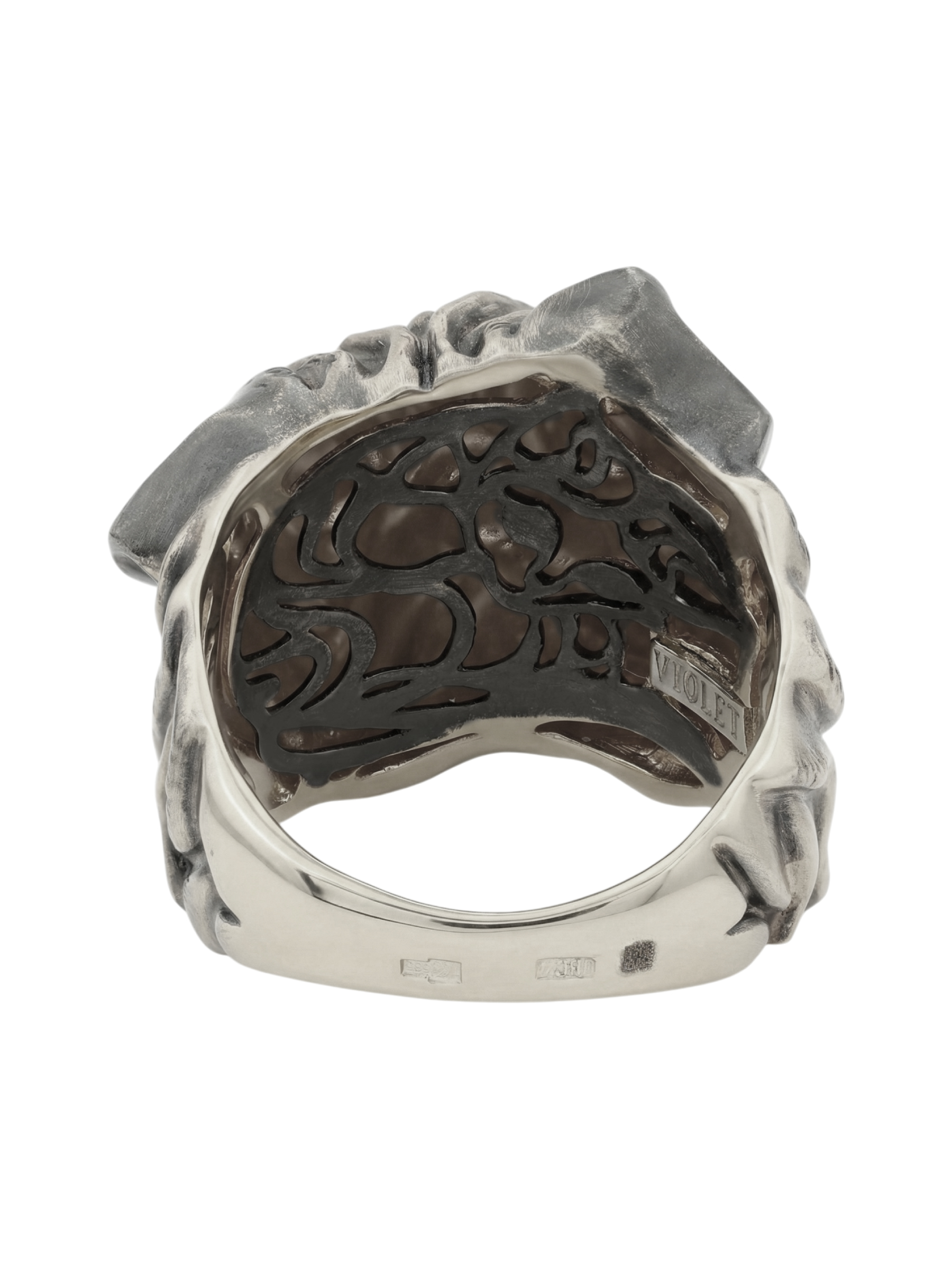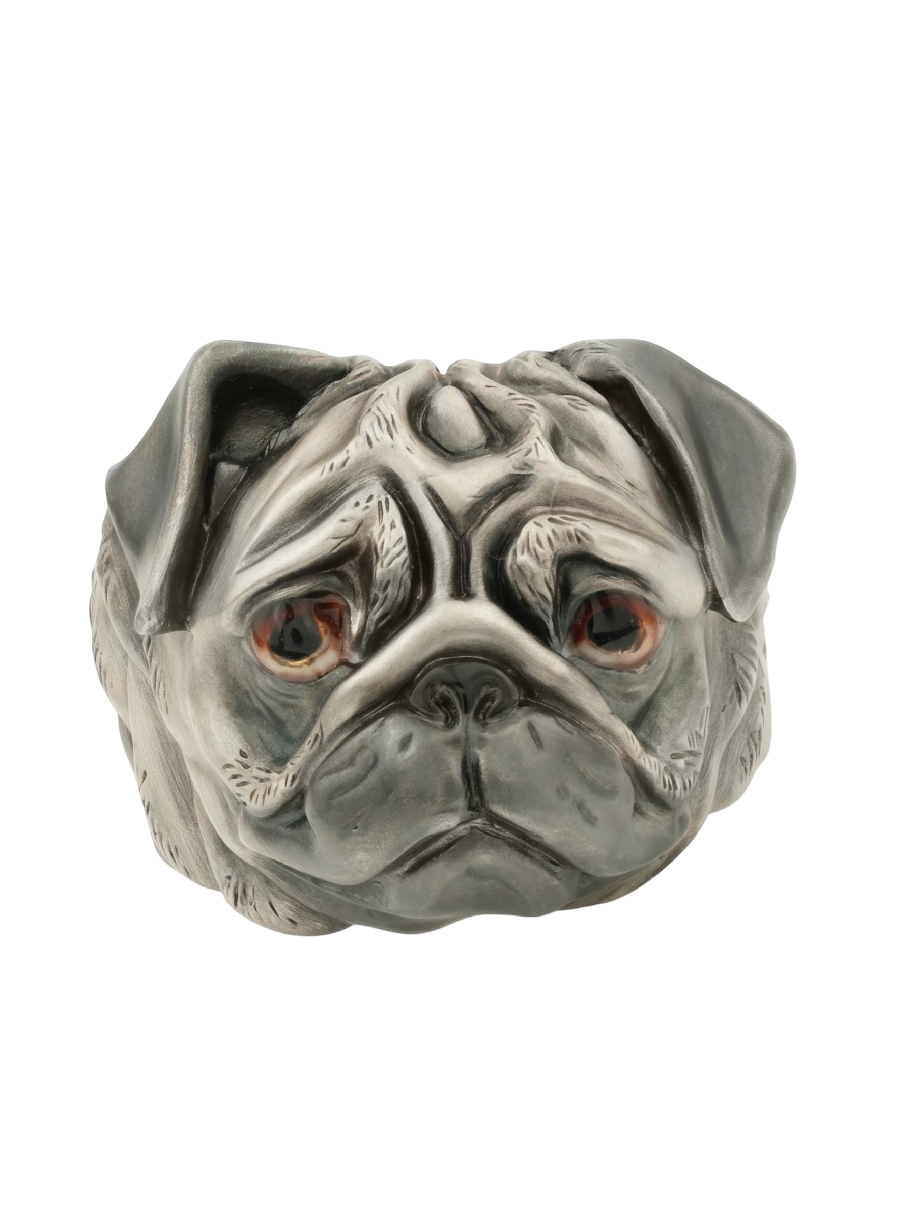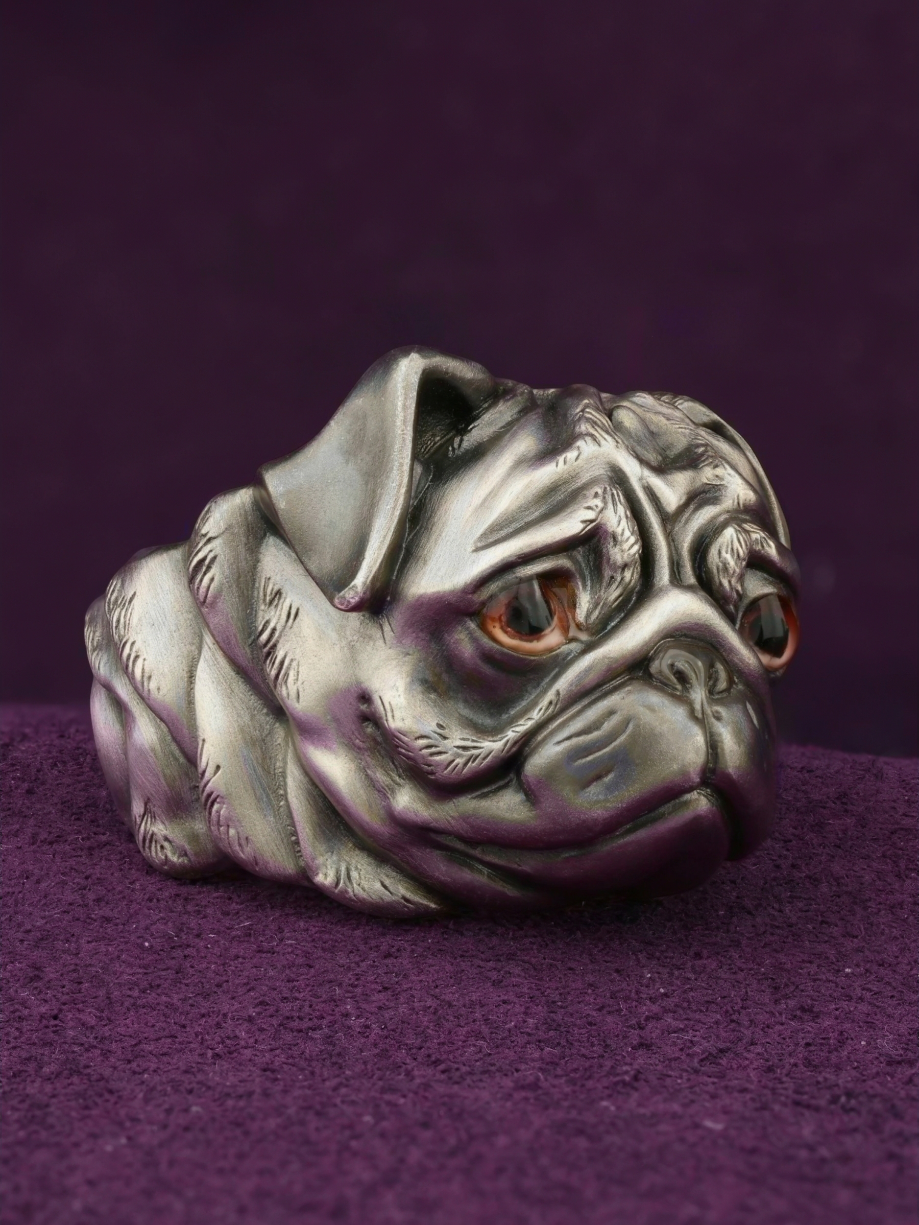Оригинальное кольцо из белого золота 585 пробы станет ярким акцентом вашего образа и настоящей находкой для ценителей необычных ювелирных украшений. Изделие выполнено в эффектном анималистичном дизайне, детально передающем милую мордочку мопса. Художественное исполнение подчеркивает контраст металла и выразительные детали, создавая живой и узнаваемый облик любимой породы собак.