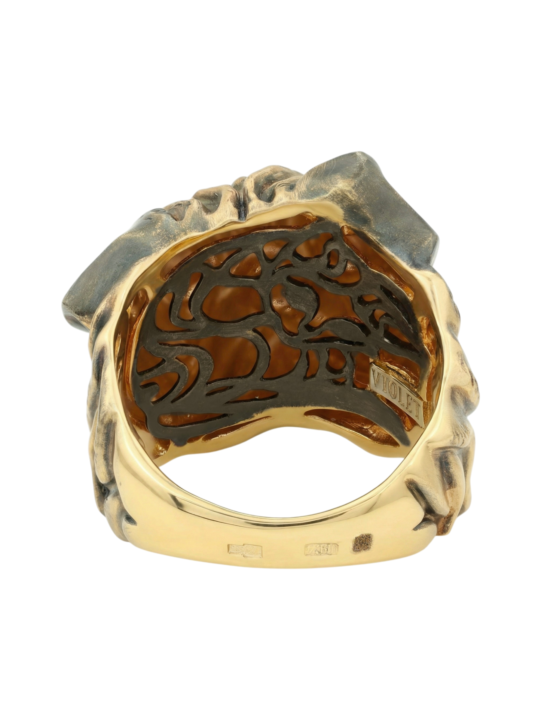 Особую художественную ценность изделию придает вставка из черной эмали, создающая глубокий визуальный контраст и подчеркивающая реалистичность форм. Это унисекс-кольцо подходит как для мужчин, так и для женщин, предпочитающих нестандартные и стильные украшения. Благодаря своему нетривиальному облику, данное кольцо может быть частью тематического комплекта, дополняя ваш индивидуальный стиль.