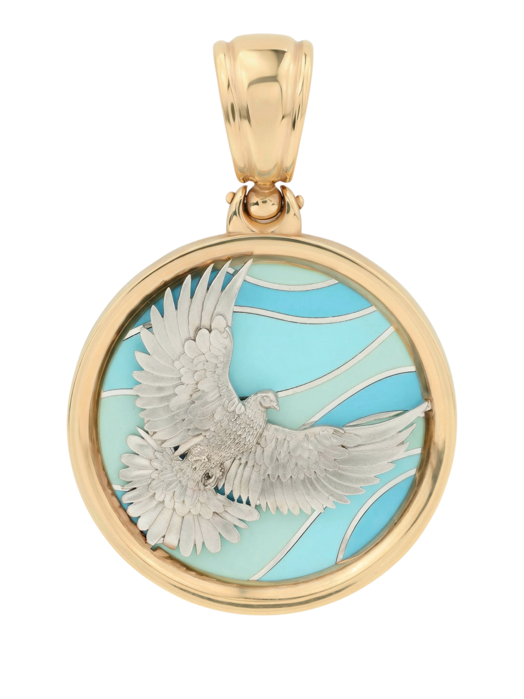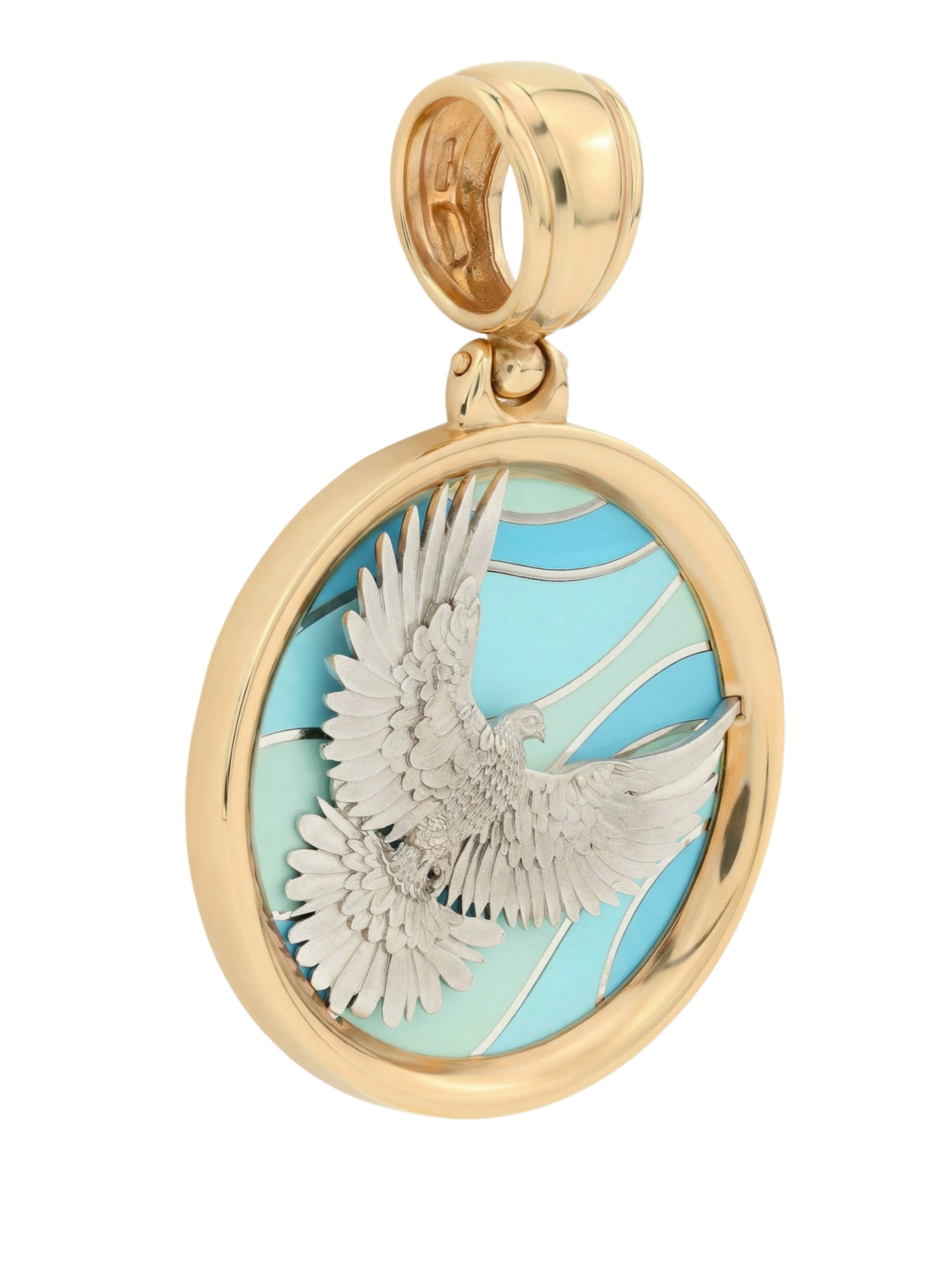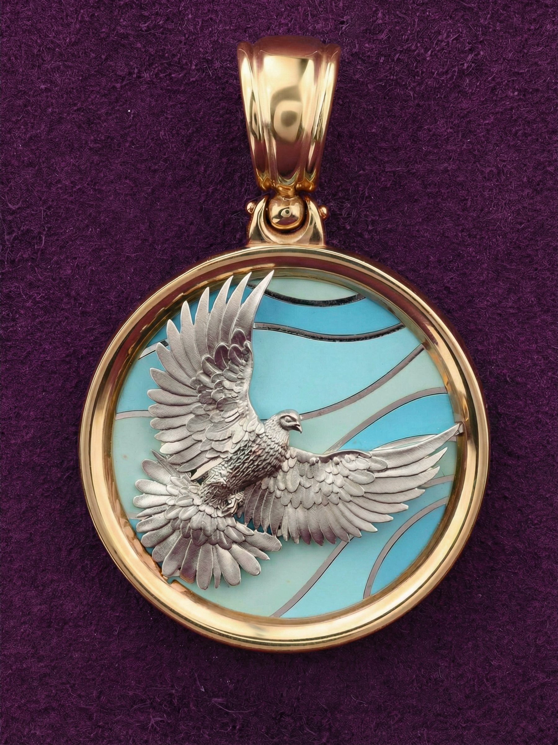 Элегантная подвеска из золота c эмалью станет воплощением утонченного стиля и глубокого смысла. Это изделие, представленное в коллекции De luxe Premium — Голубь мира, выполнено в классическом дизайне с изображением птицы. Символ мира и свободы, запечатленный в металле, привлекает внимание своей детализацией и гармоничным сочетанием материалов.