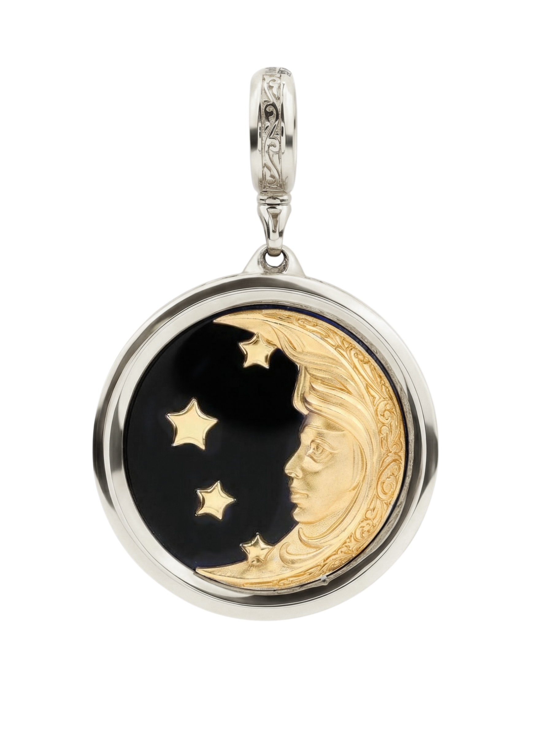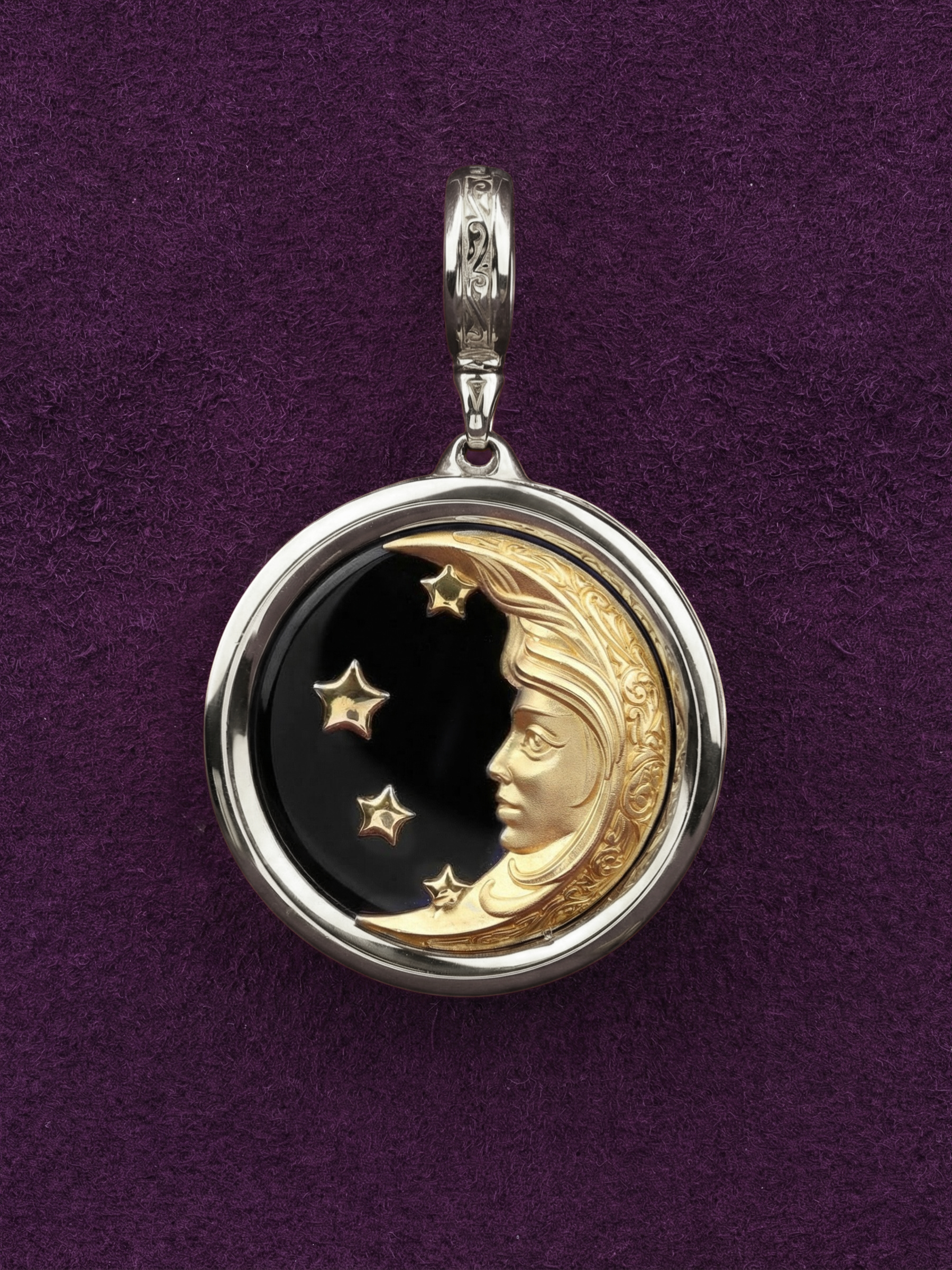 Элегантная подвеска из белого золота 585 пробы станет утонченным дополнением вашего образа, воплощая в себе мистическую эстетику и мастерство ювелирного искусства. Изделие, представленное в коллекции De luxe Premium — День и ночь, выполнено в оригинальном дизайне «Солнце/луна», который подчеркивает глубокую символику перехода дня в ночь. Центром композиции является круглая вставка, сочетающая в себе магию оникса черного цвета и нежное сияние перламутра, создавая эффектный контраст.