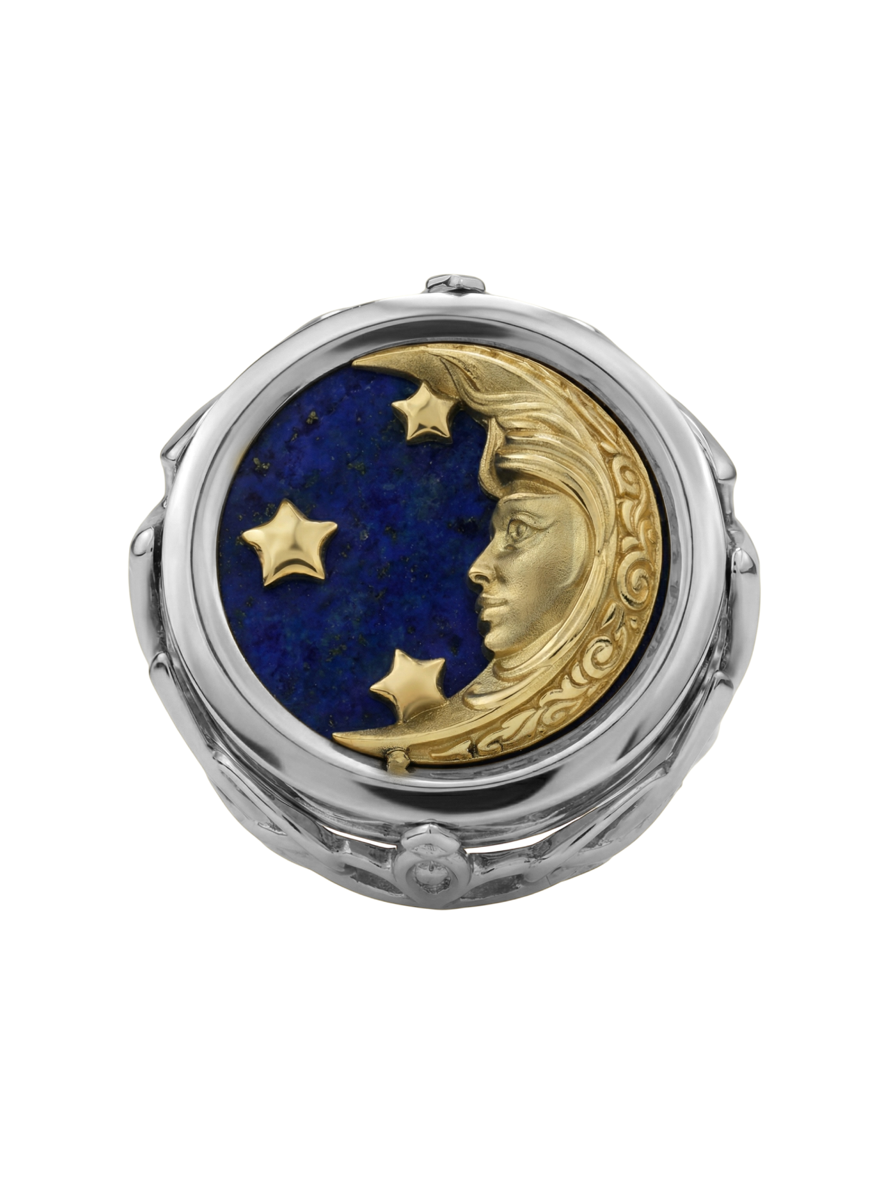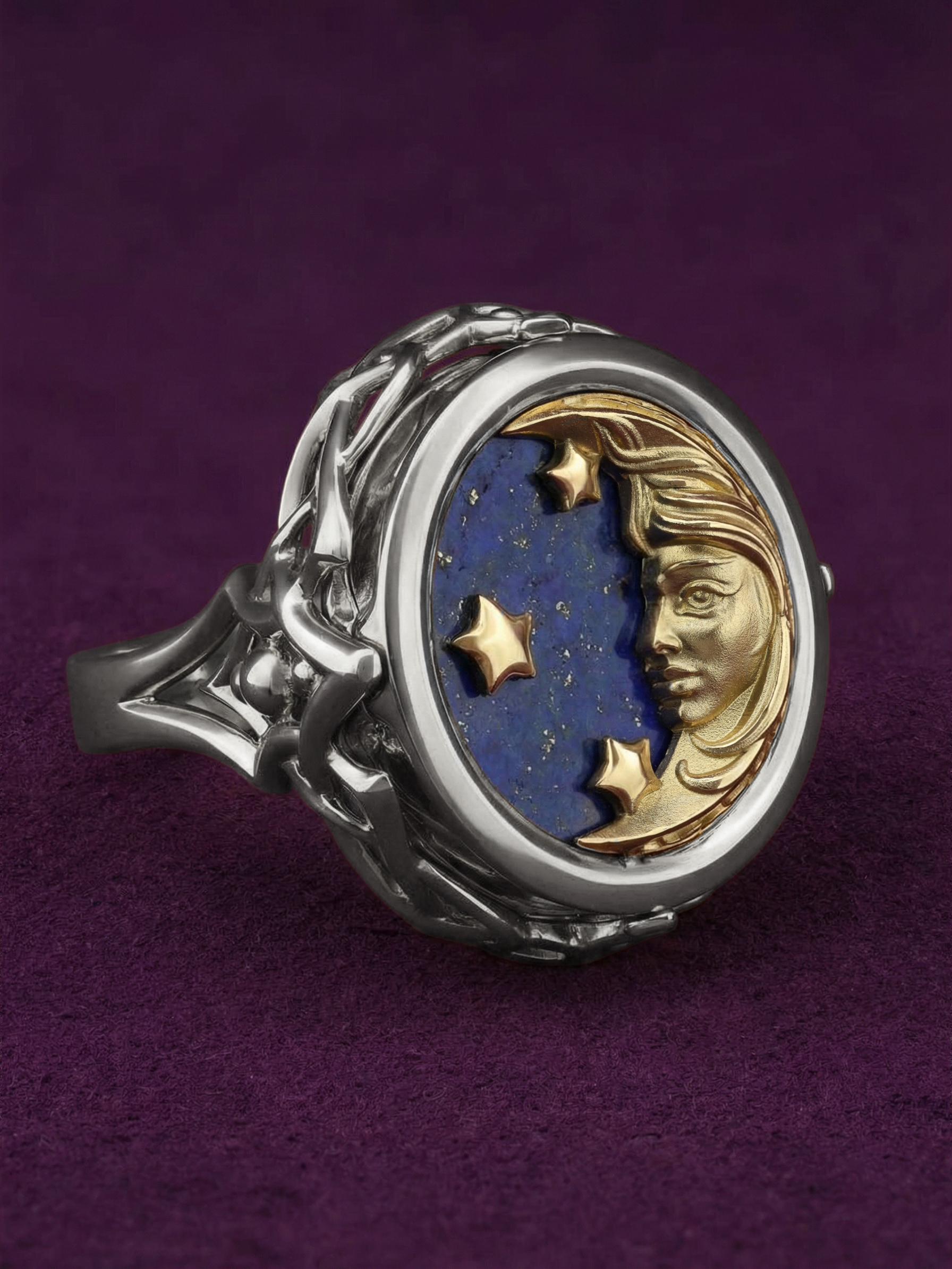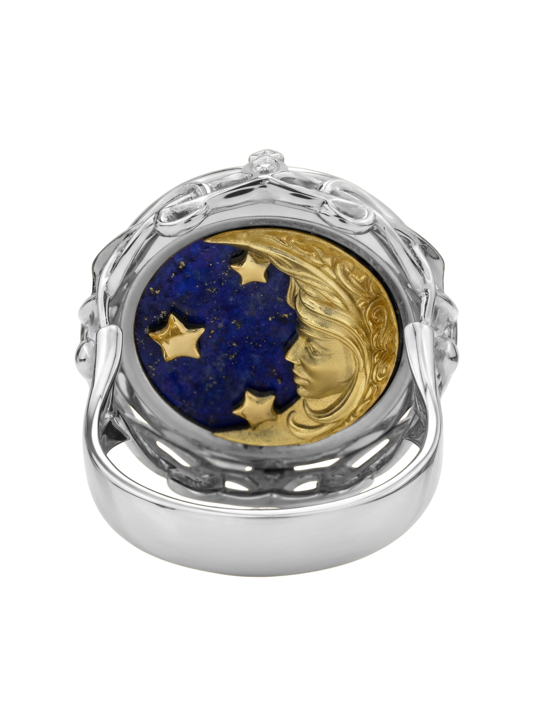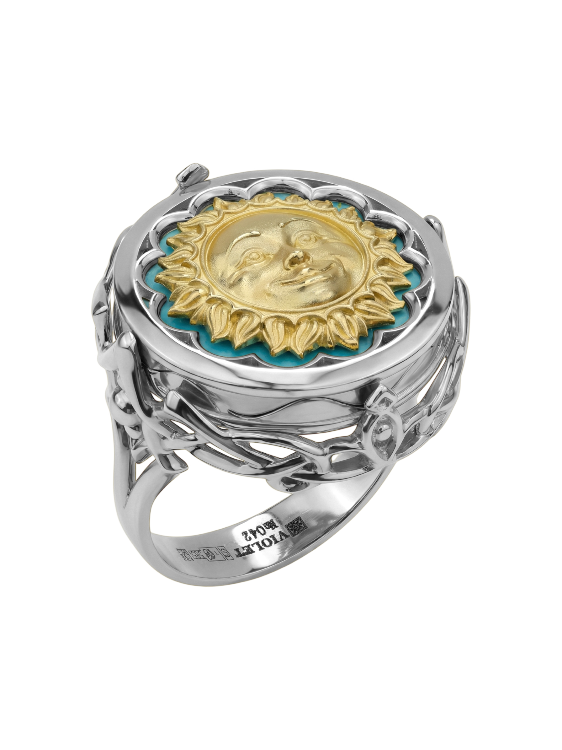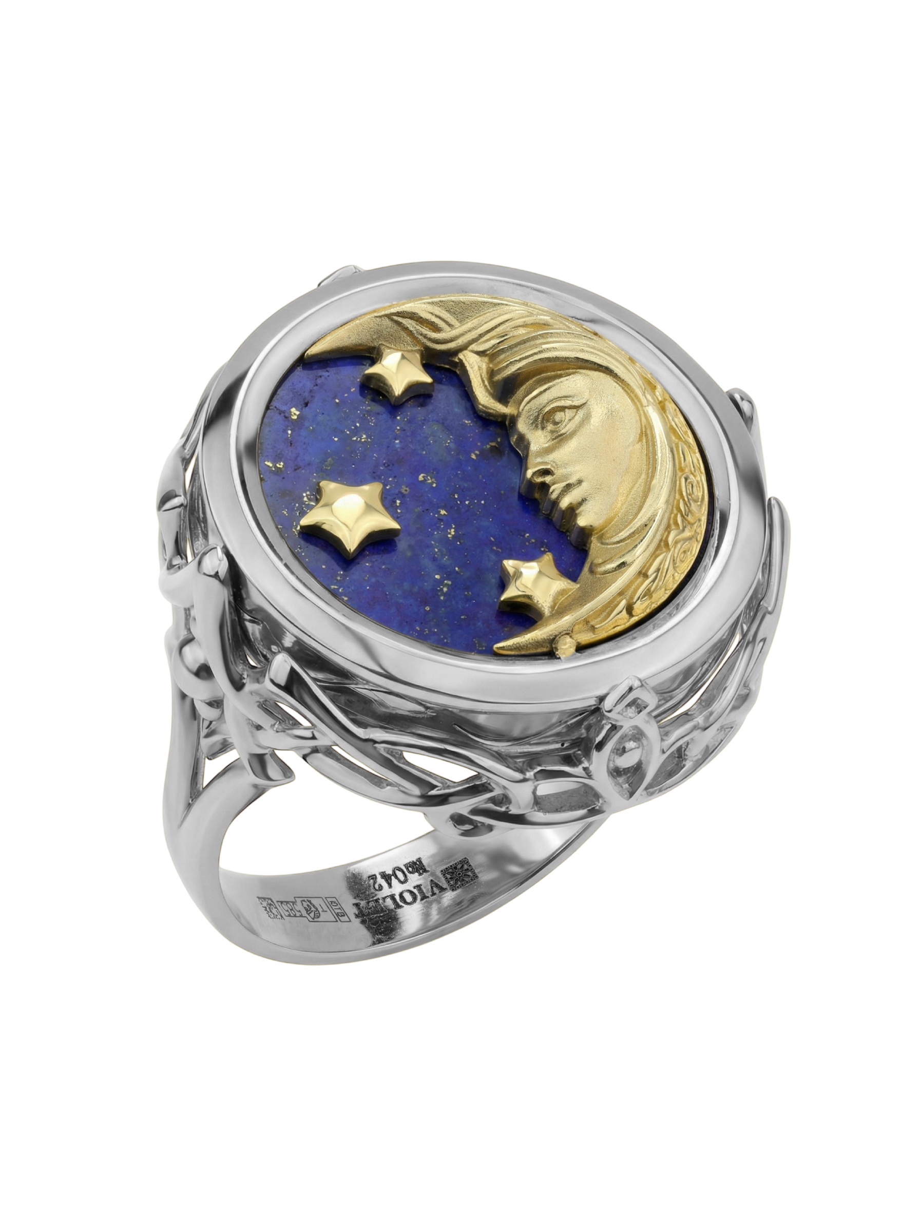 Это изделие обладает уникальным характером и подойдет как женщинам, так и мужчинам. Тонкая детализация и контрастные цвета камней придают кольцу особый шарм, делая его самодостаточным акцентом в образе. Ювелирная работа подчеркивает магию сочетания небесных мотивов с прохладным блеском металла. Данное кольцо представлено в широкой размерной сетке от 15 до 23, что позволяет легко подобрать идеальный вариант для любого пальца. Если вы предпочитаете гармоничные ансамбли, изделие может быть частью комплекта. Добавьте в свою коллекцию аксессуар, объединяющий мастерство исполнения и глубокий символизм.