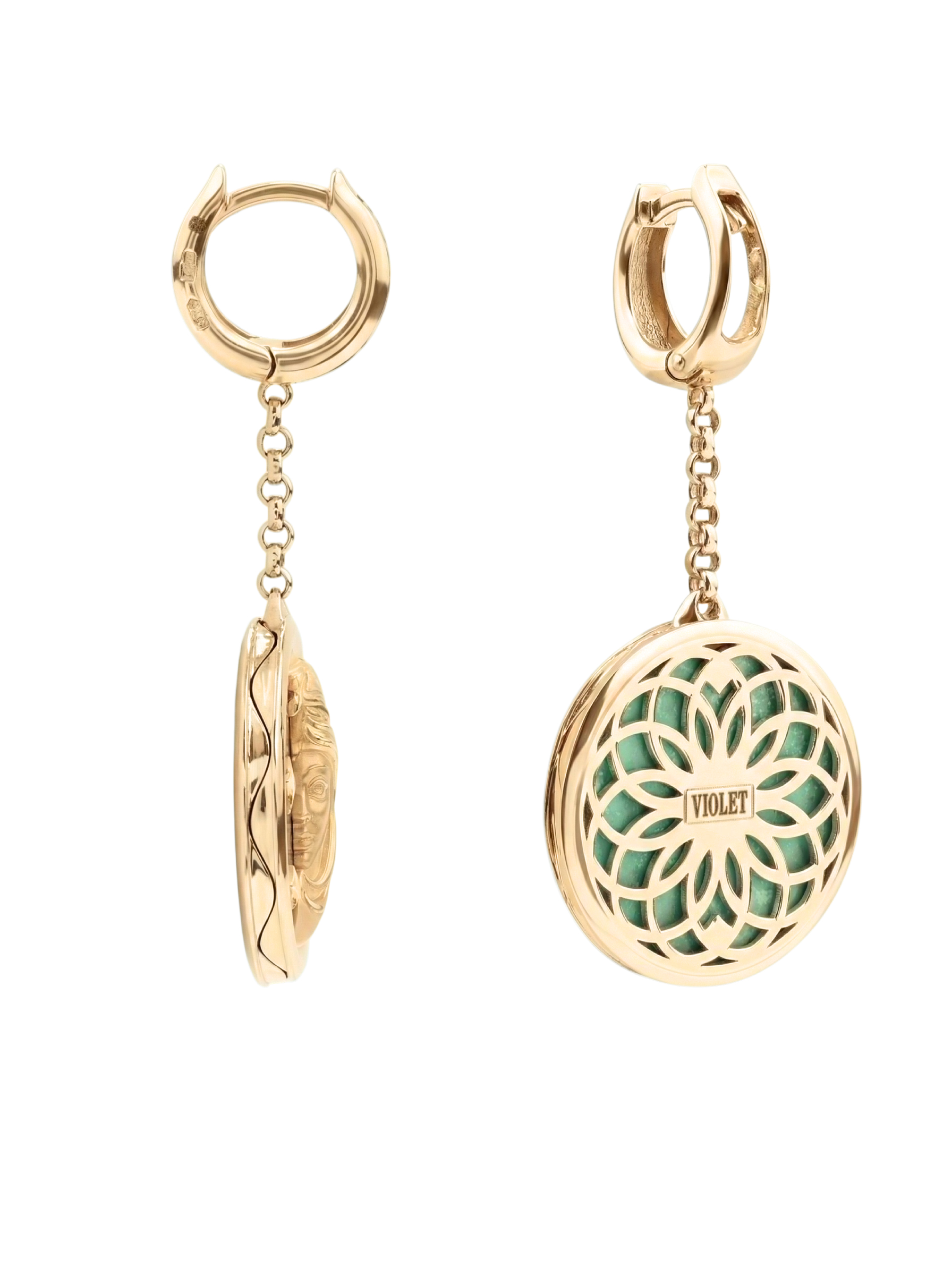 Эти уникальные серьги из красного золота 585 пробы станут воплощением стиля и утонченного вкуса. Изделие входит в коллекцию De luxe Premium — День и ночь, дизайн которой вдохновлен вечной гармонией солнца и луны. Каждая серьга в паре выполнена с особым вниманием к деталям: одна сторона представляет собой сияющее солнце на фоне нежной бирюзы, а другая — таинственный полумесяц на глубоком лазурите.