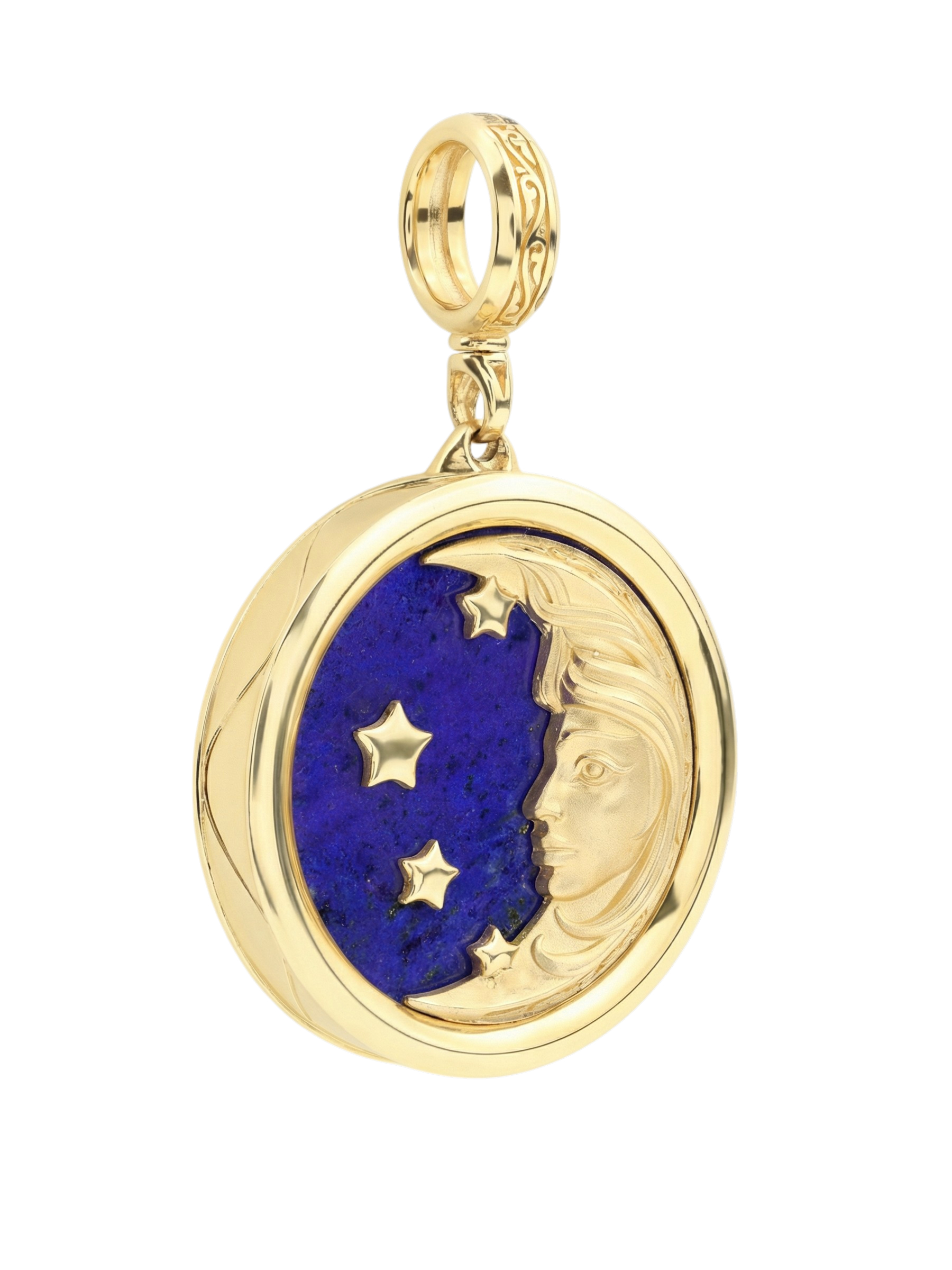 Элегантная подвеска из лимонного золота 585 пробы из коллекции De luxe Premium — День и ночь — это ювелирное украшение, воплощающее концепцию дня и ночи. Дизайн изделия объединяет в себе небесную символику: изящное изображение месяца с человеческим профилем и яркие звезды, выполненные в золоте, создают притягательный образ, который одинаково гармонично дополнит стиль как женщин, так и мужчин.