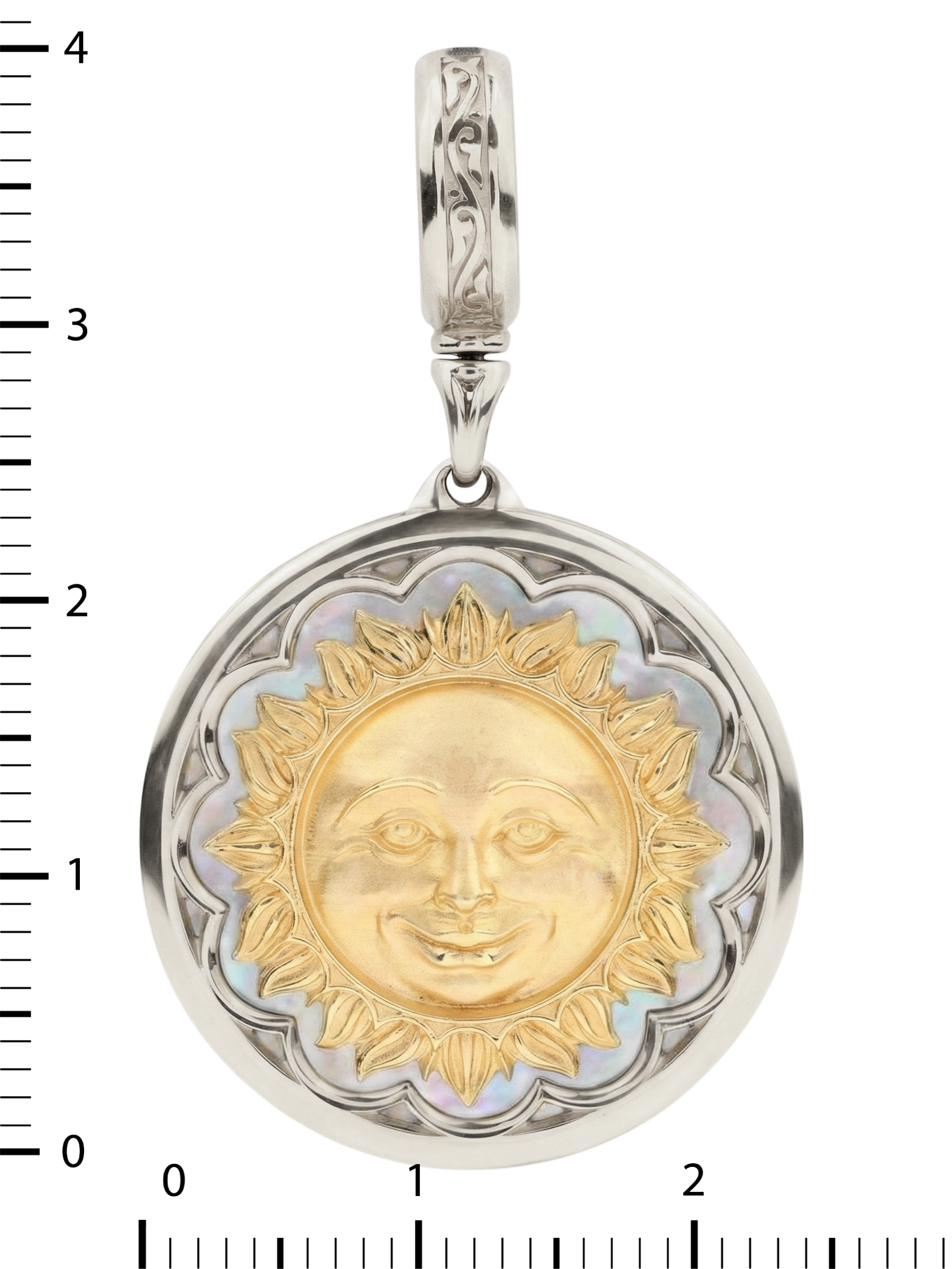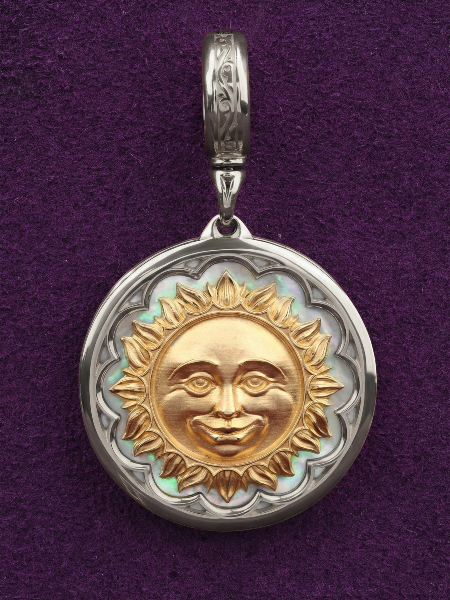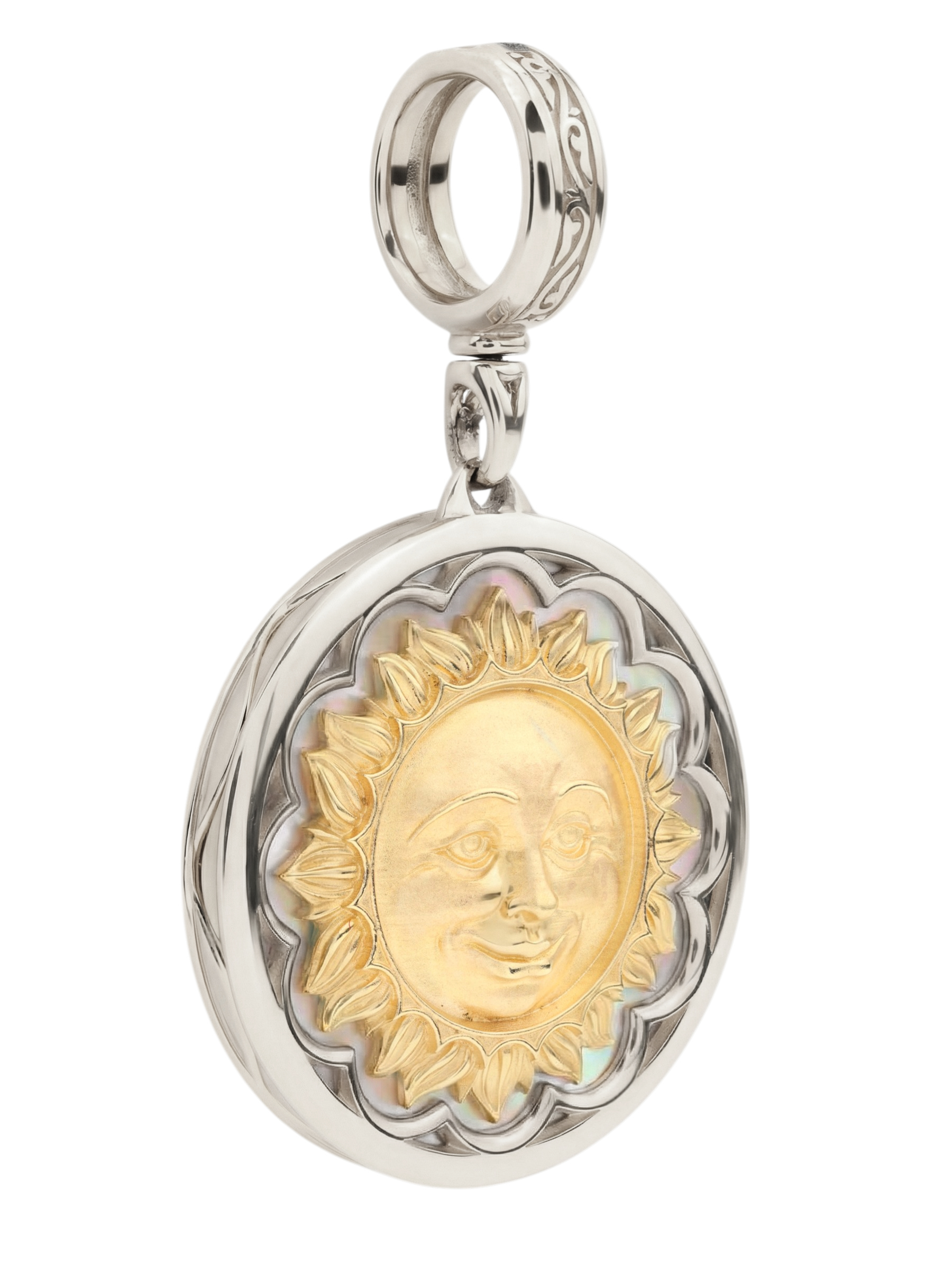 Центральным элементом композиции является вставка из перламутра круглой формы. Натуральный перламутр переливается мягкими оттенками, создавая неповторимый визуальный эффект, который притягивает взгляд и придает украшению особую глубину. Дизайн с небесными светилами делает эту подвеску универсальным аксессуаром: она одинаково эффектно смотрится как на женщинах, так и на мужчинах, подчеркивая индивидуальность своего владельца.