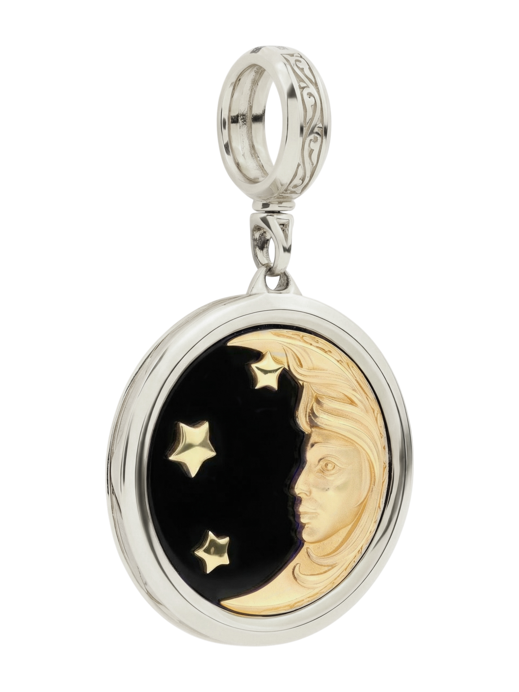 Это украшение станет утонченным акцентом в любом образе. Благодаря универсальному стилю, подвеска прекрасно подойдет как для женщин, так и для мужчин, предпочитающих премиальные аксессуары со смыслом. Использование белого золота подчеркивает чистоту линий, а единственная черная вставка придает изделию строгость и загадочность. Данная модель может стать полноценным дополнением к комплектам украшений, подчеркивая статус и безупречный вкус своего обладателя. Выбирая эту подвеску, вы приобретаете аксессуар, в котором мастерство исполнения сочетается с глубоким символизмом ночного светила.