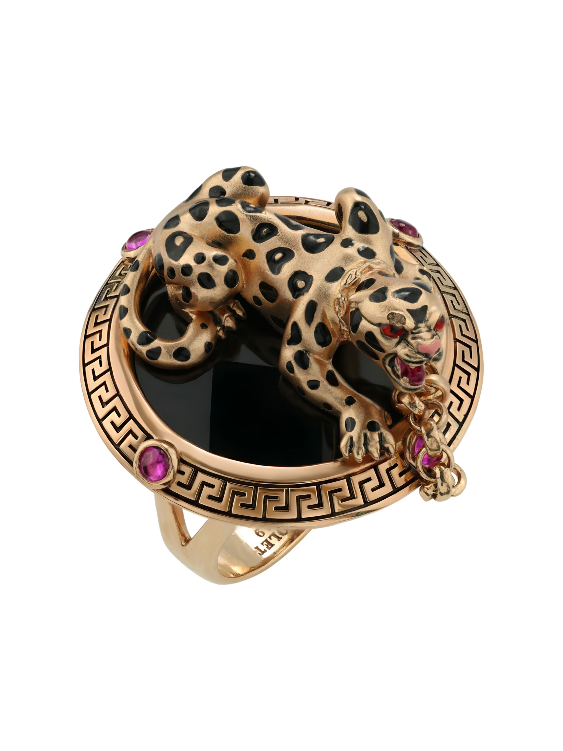 Эксклюзивное кольцо из коллекции De luxe Premium — Леопарды станет безупречным акцентом вашего образа, подчеркивая статус и безупречный вкус. Ювелирное изделие выполнено из красного золота 585 пробы, что обеспечивает благородный оттенок и долговечность украшения. В центре композиции расположена фигура леопарда, чей агрессивный и грациозный облик воплощен с поразительной детализацией. Дизайн дополнен вставками из черного оникса, глубокий цвет которого идеально гармонирует с блеском красного золота.