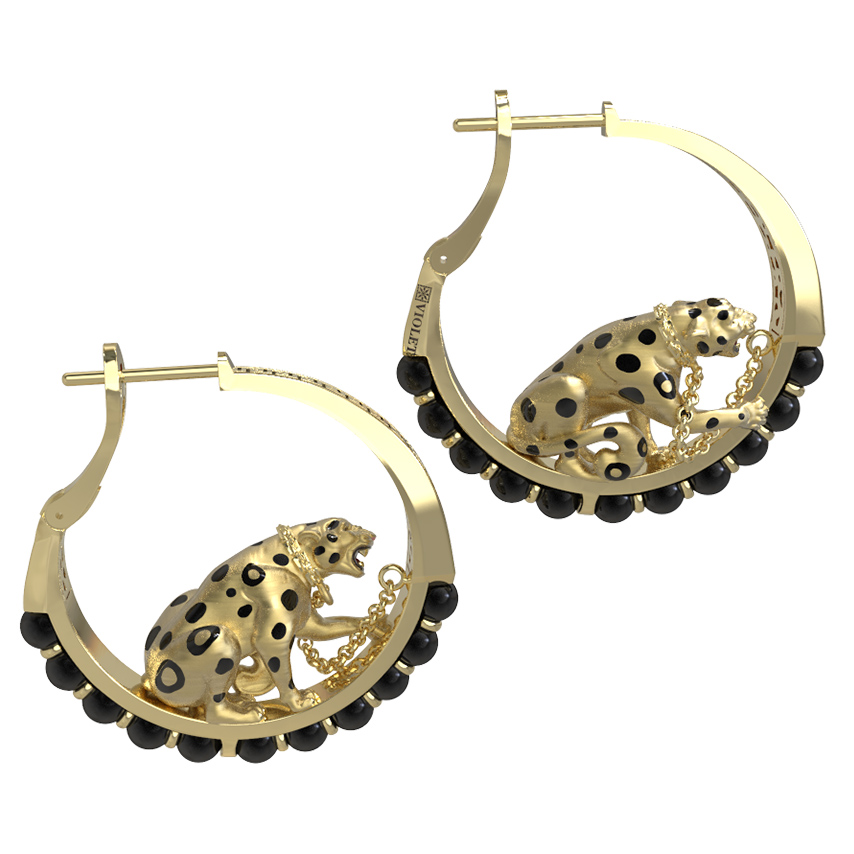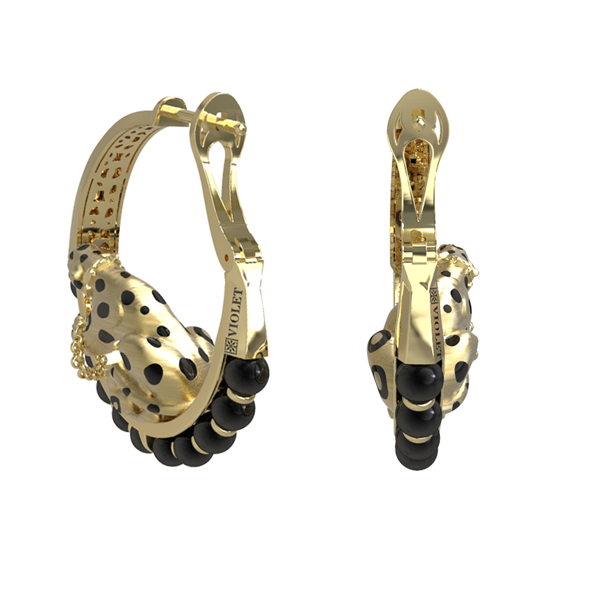 Роскошные серьги из лимонного золота 585 пробы из коллекции De luxe Premium — Леопарды станут воплощением вашего безупречного вкуса. Дизайн изделия объединяет в себе дерзость и утонченную классику: центральным акцентом украшения стали грациозные леопарды, выполненные с ювелирной точностью. Использование глубокой черной эмали подчеркивает выразительные детали хищников, создавая контрастный и узнаваемый образ.