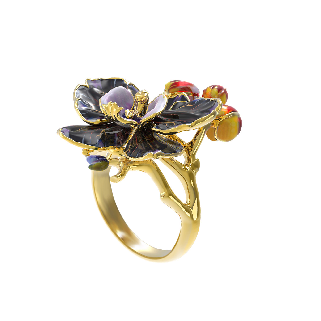 Данное ювелирное украшение является воплощением элегантности, подчеркивающим индивидуальность и безупречный вкус владельца. Кольцо с эмалью в дизайне Цветы — это инвестиция в стиль, которая будет актуальна долгие годы, неизменно привлекая восхищенные взгляды своей оригинальностью и мастерским исполнением в лимонном золоте.