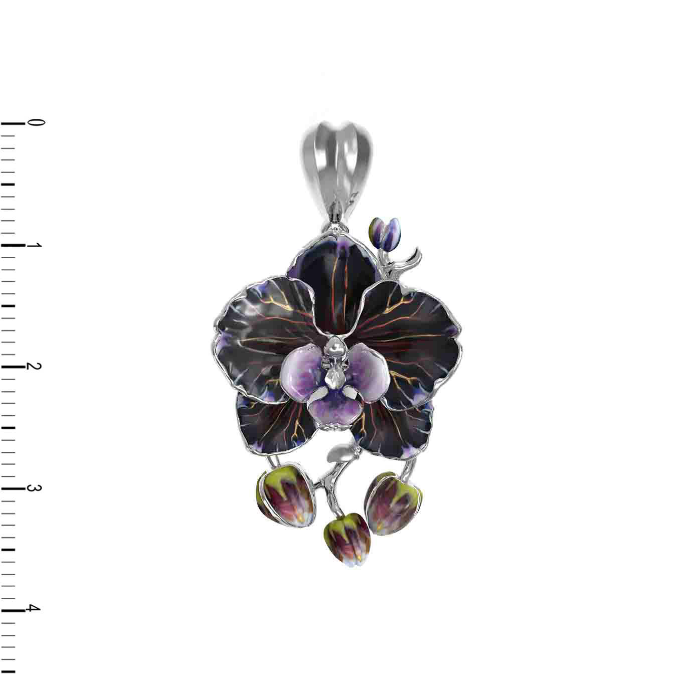 Изящная подвеска из белого золота 585 пробы станет утонченным дополнением вашего образа, воплощая в себе гармонию природной эстетики и ювелирного мастерства. Это изделие, представленное в рамках коллекции De luxe Premium — Орхидеи, выполнено в форме экзотического цветка орхидеи, чей притягательный дизайн подчеркнут детальной проработкой каждого лепестка. Использование художественной эмали позволило добиться глубокого, насыщенного цвета вставок, где переплетаются темные и светлые оттенки, создавая эффектный контраст с благородным холодным блеском белого золота.