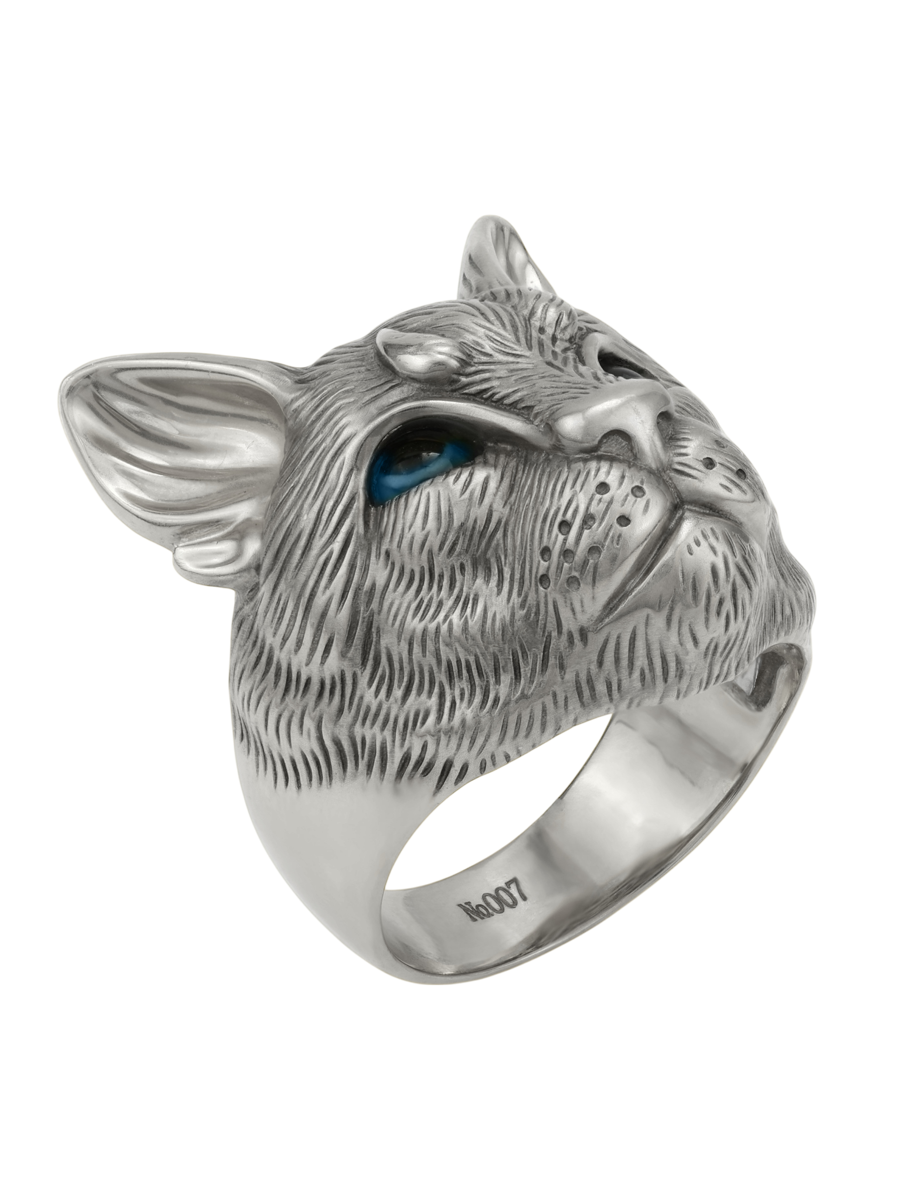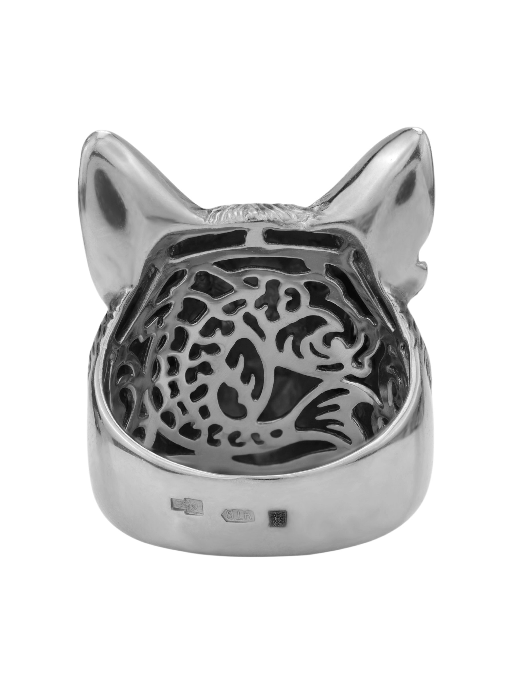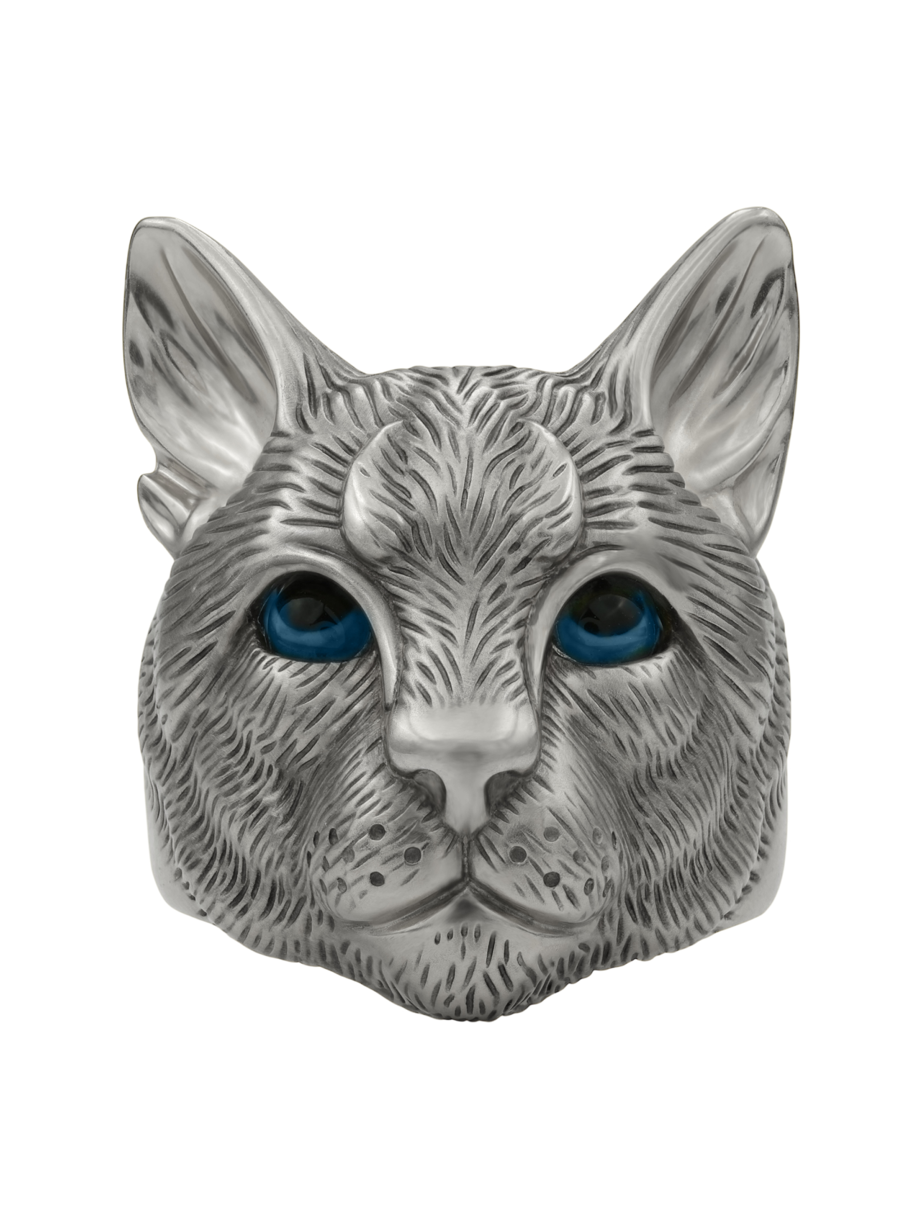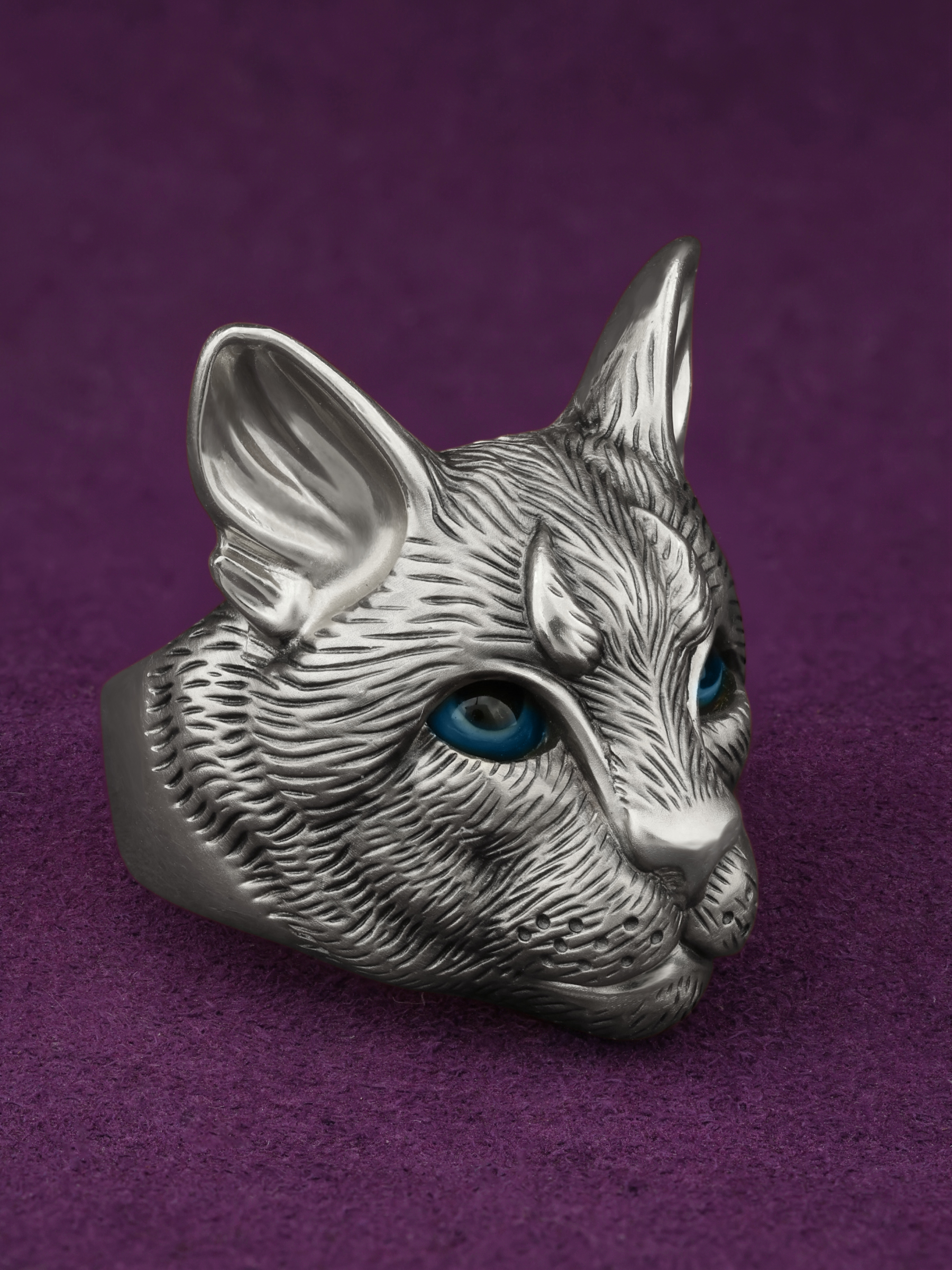 Особую выразительность кольцу придает вставка из эмали, благодаря которой глаза кота получили глубокий и насыщенный цвет. Разноцветная эмаль в данном исполнении делает взгляд хищника живым и пронзительным, добавляя украшению уникальный акцент. Этот аксессуар станет идеальным дополнением к повседневному или неформальному гардеробу, подчеркивая индивидуальность своего владельца.