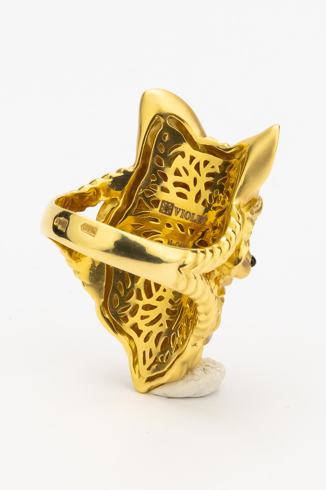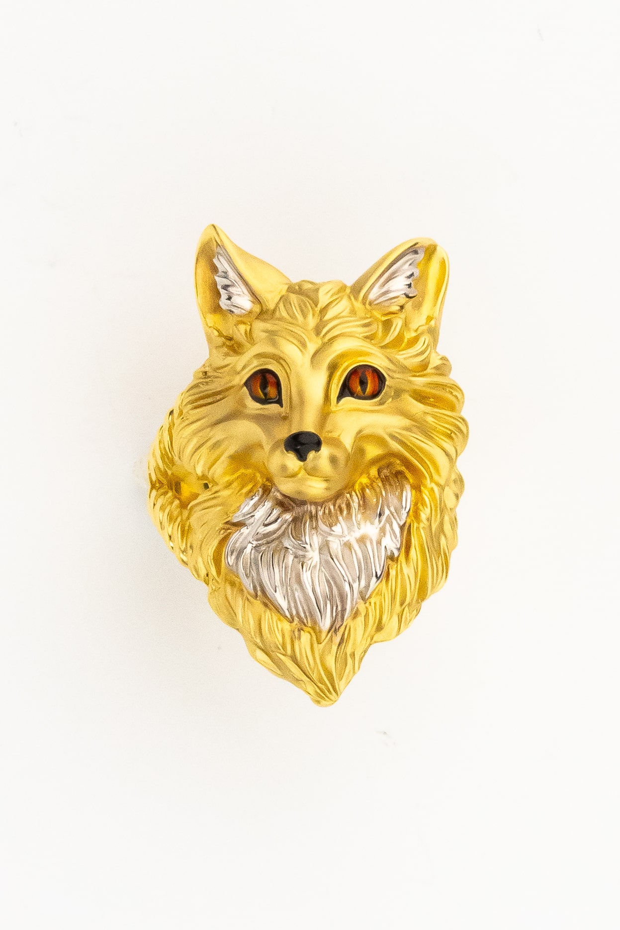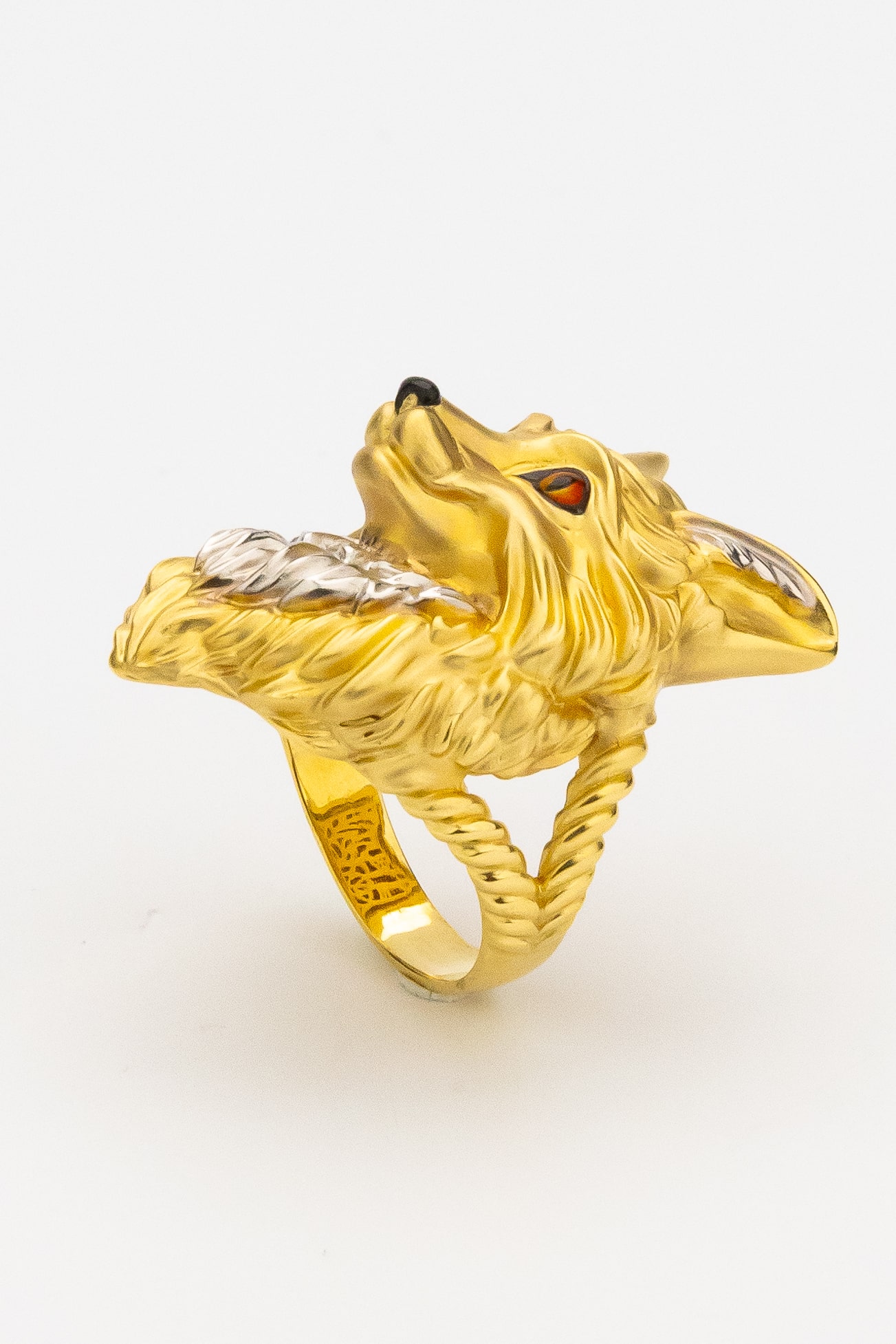 Кольцо из лимонного золота 585 пробы из коллекции De luxe Premium — Лиса станет выразительным акцентом вашего образа. Это необычное украшение выполнено в оригинальном дизайне: центральным элементом изделия является мастерски проработанная голова лисы, которая притягивает внимание своей детализацией и реалистичностью. Благородный оттенок лимонного золота гармонично дополнен ювелирной эмалью, создающей акценты в оформлении мордочки животного. Разноцветная эмаль подчеркивает объем и природную красоту образа, превращая кольцо в настоящее произведение ювелирного искусства.