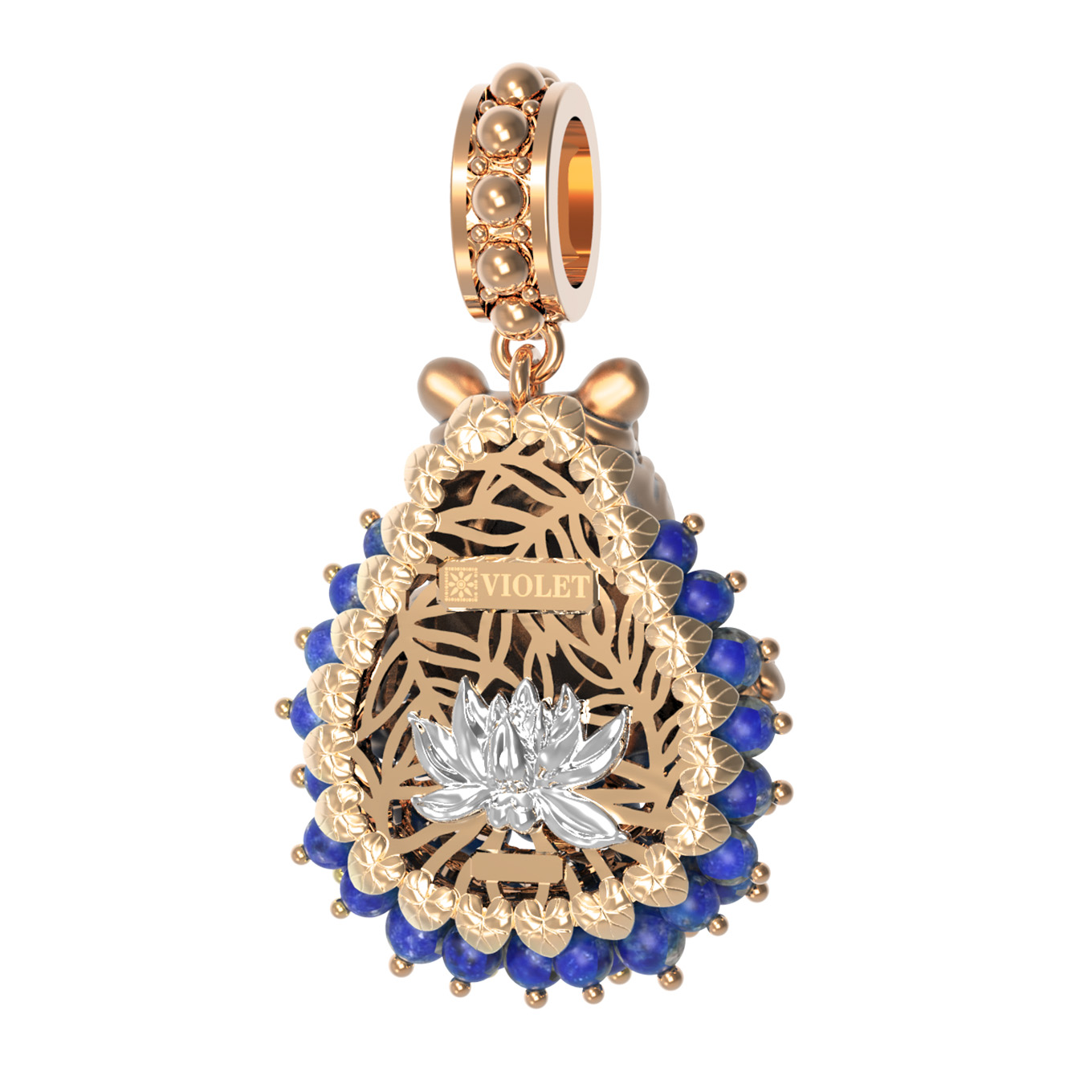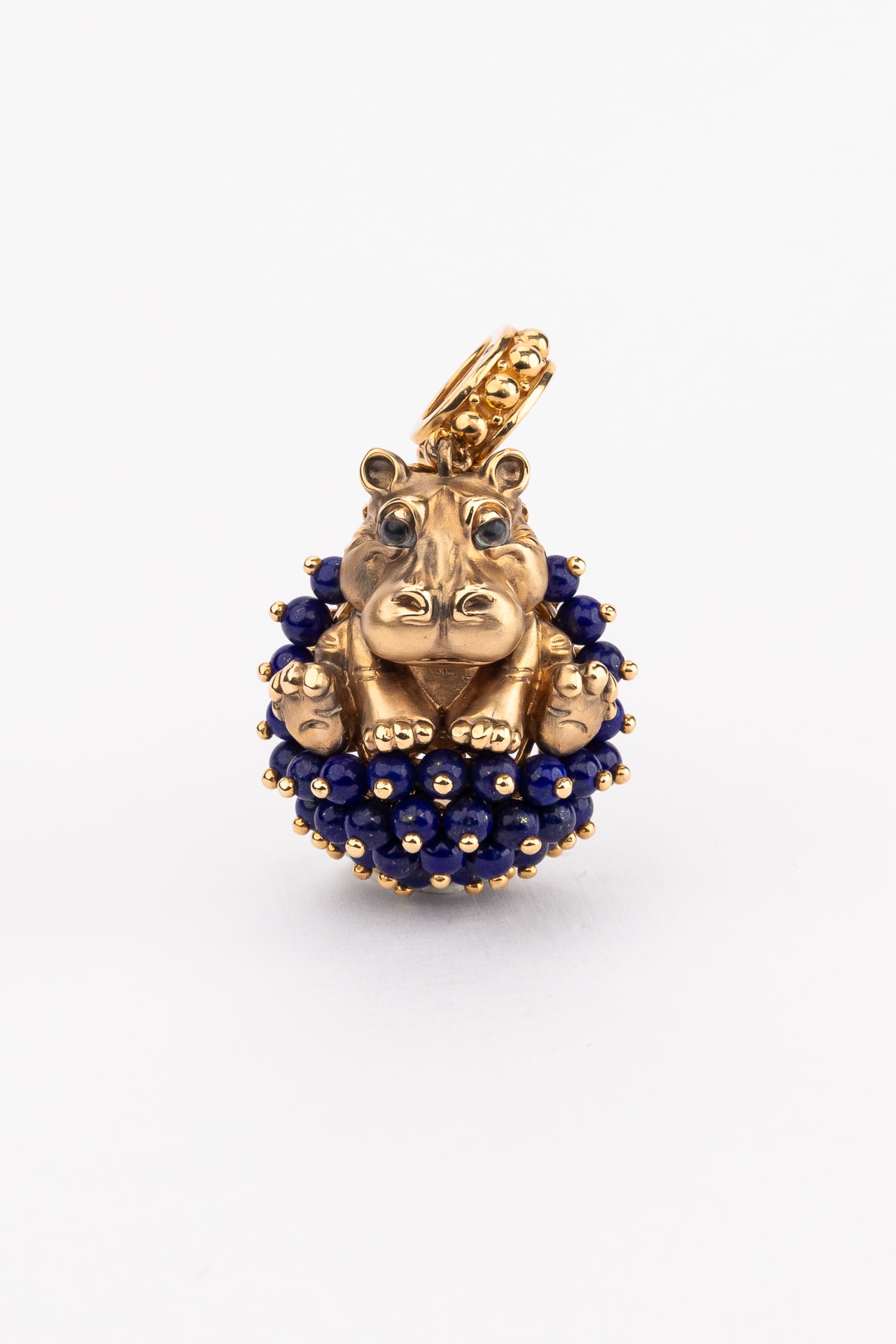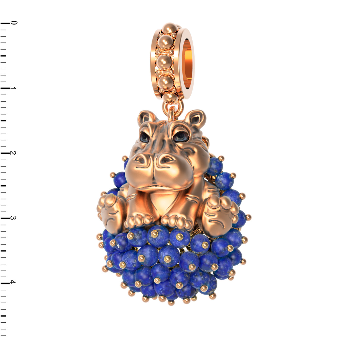 Оригинальная подвеска из коллекции De luxe Premium — Бегемотик станет ярким акцентом вашего образа. Это ювелирное украшение выполнено из благородного красного золота 585 пробы и отличается детально проработанным дизайном в виде милого бегемотика. Фигурка животного гармонично дополнена роскошным декором: основание украшено 42 вставками из натурального лазурита, имеющего глубокий синий цвет, а также яркими акцентами из эмали, создающими разноцветный эффект. Форма вставок в виде миниатюрных бусин придает изделию объемную фактуру и особую выразительность.
